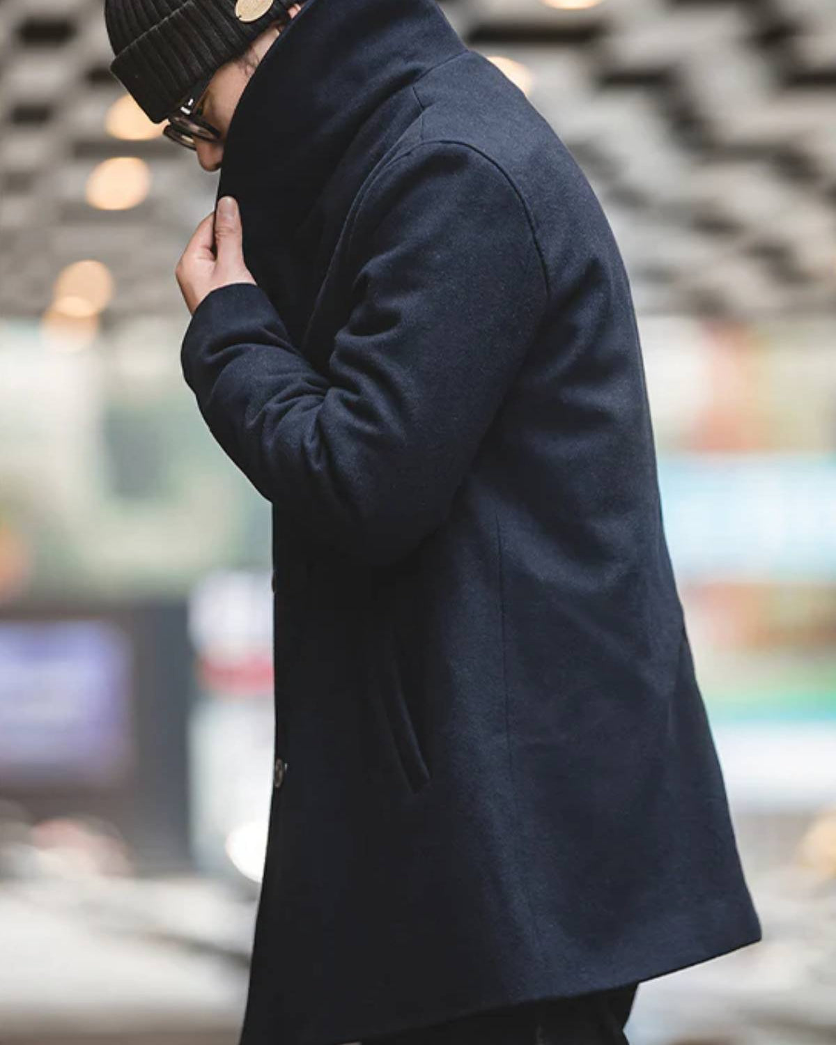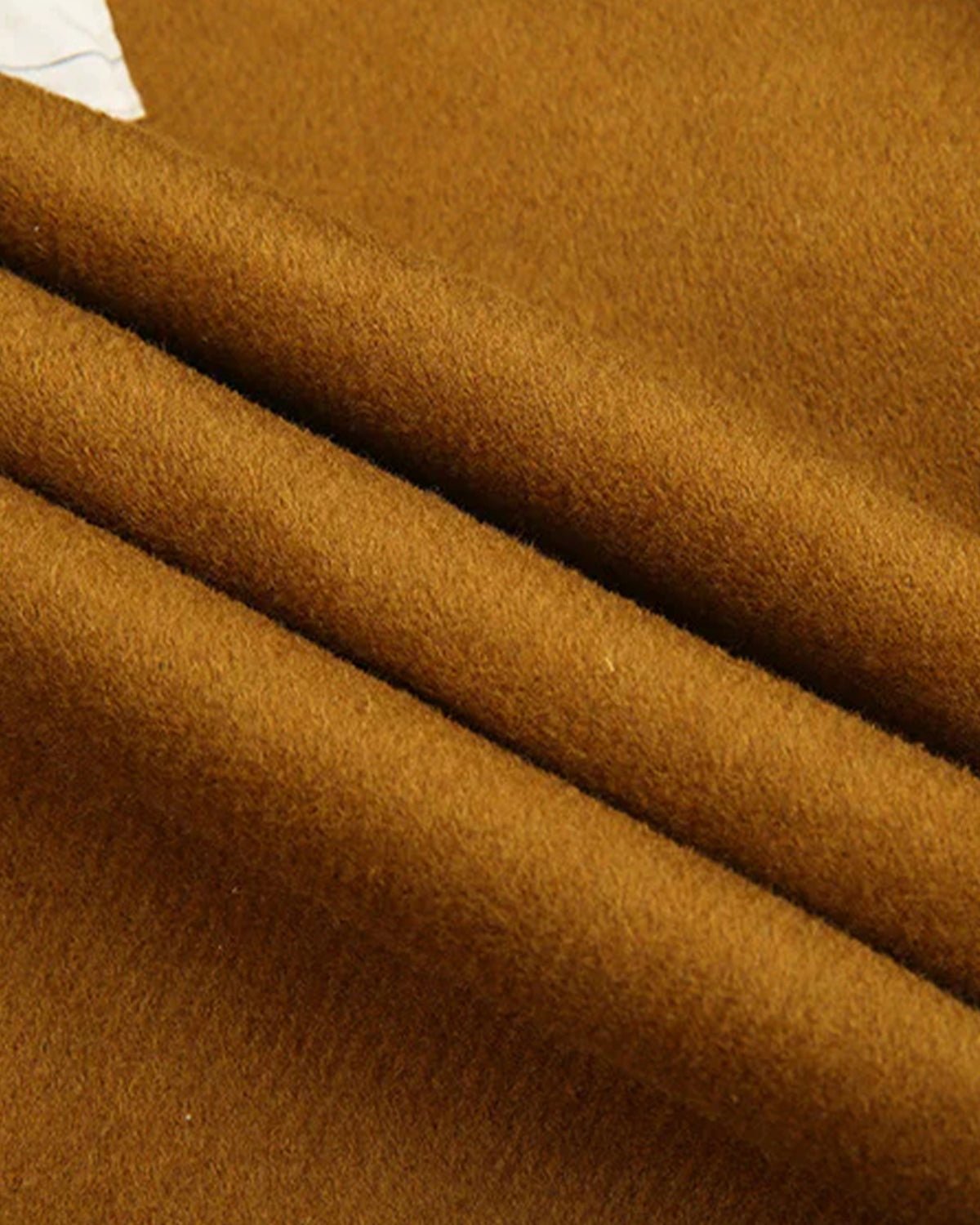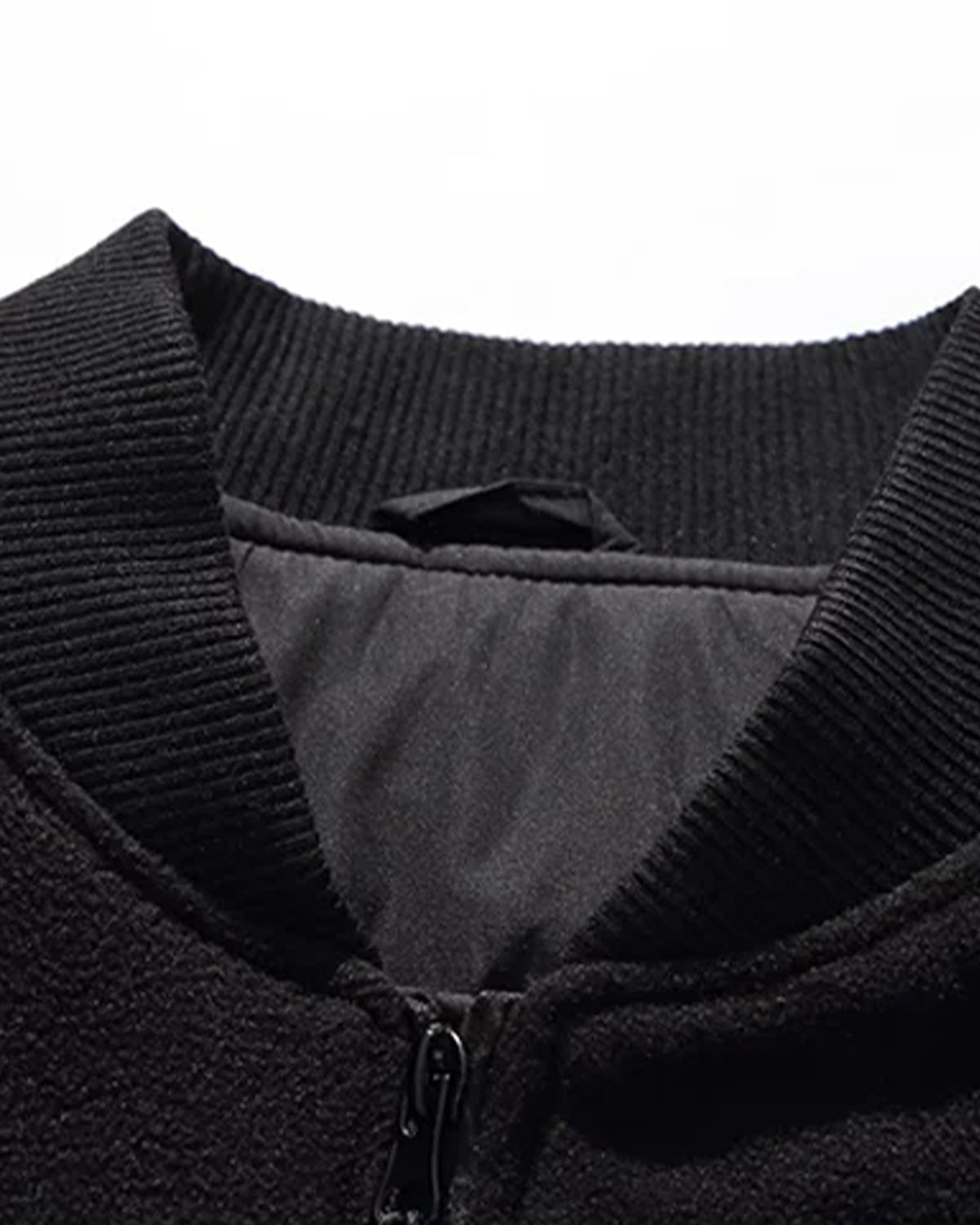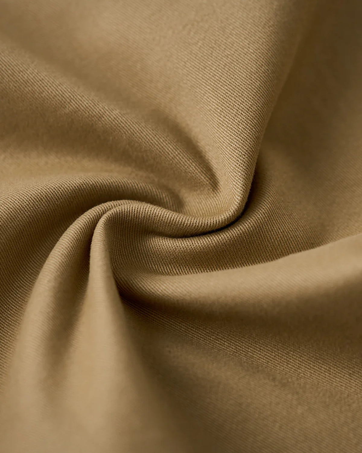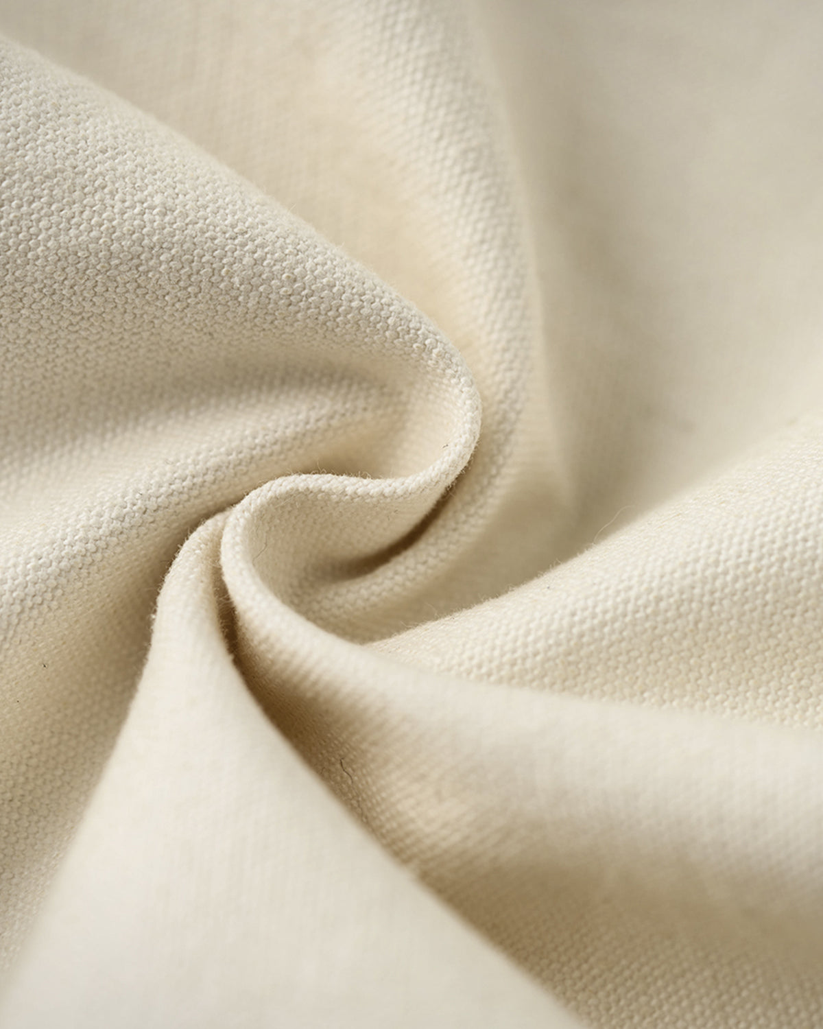 It has no collar, giving it a casual look. The large pockets and color-coordinated buttons are also nice touches.