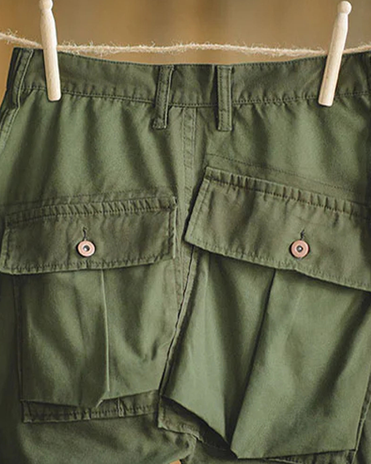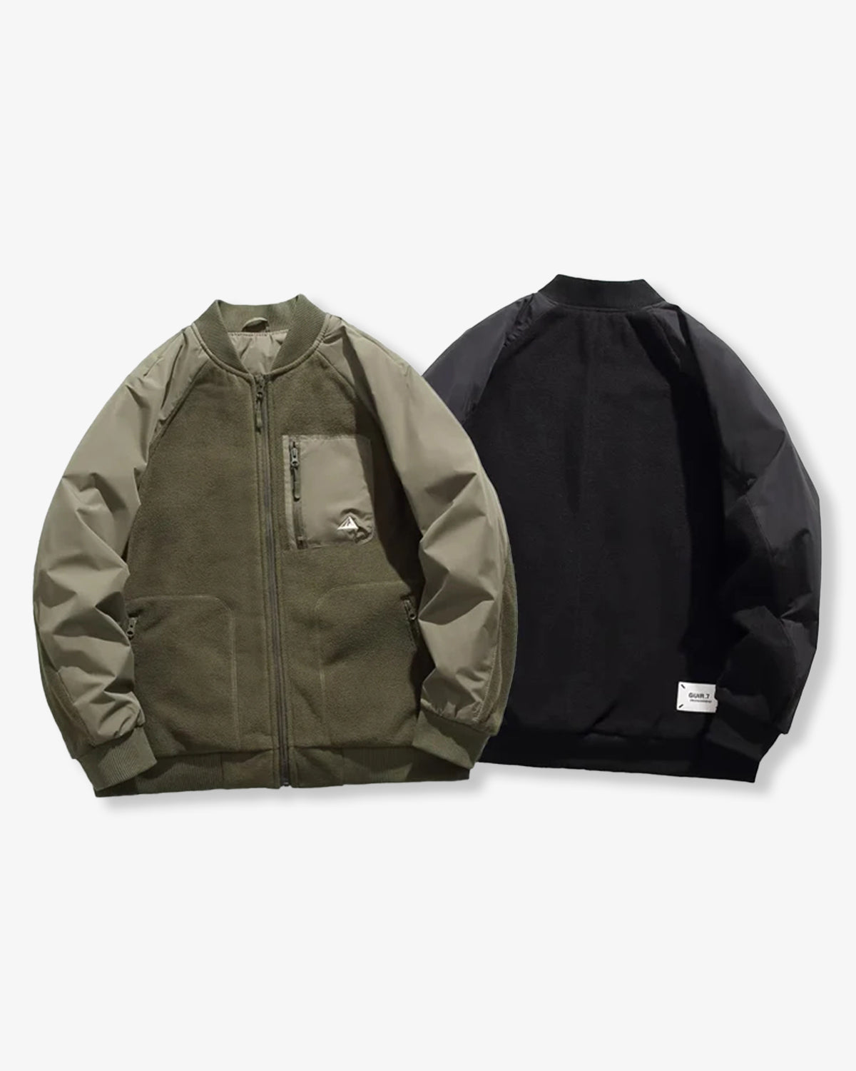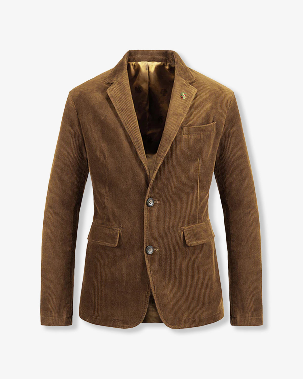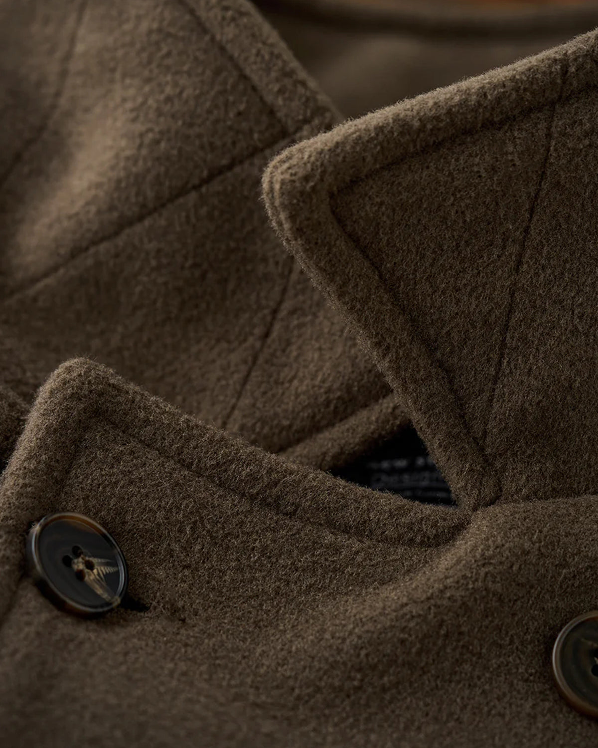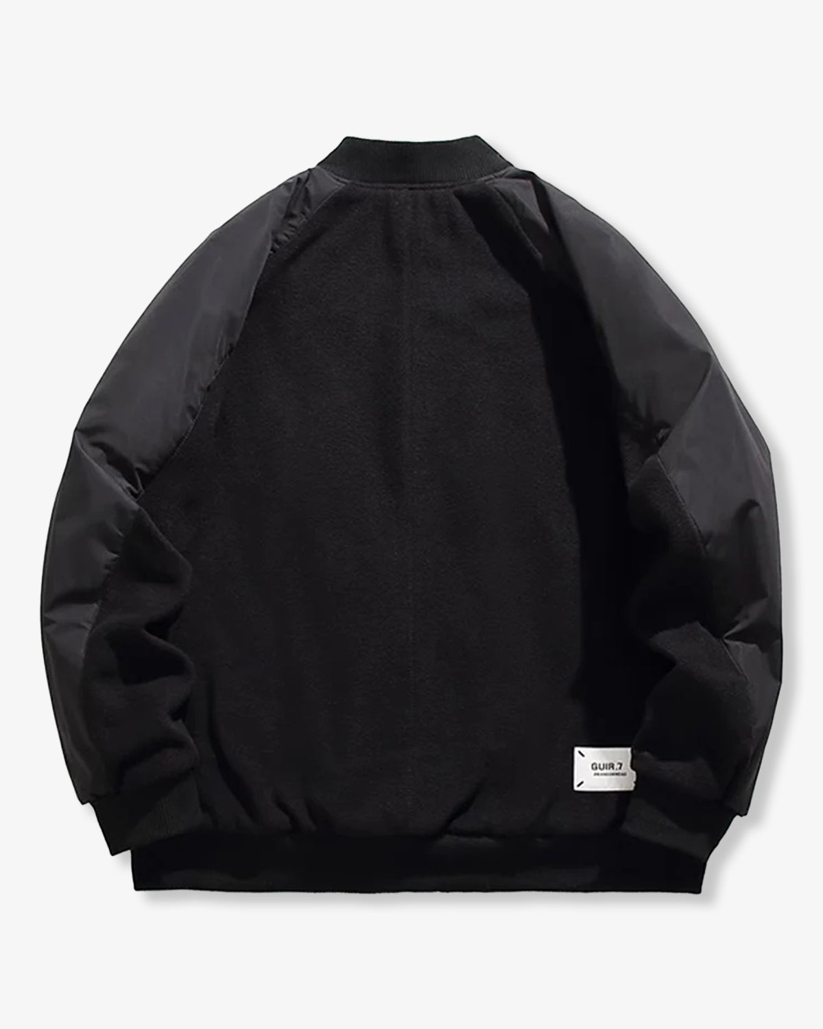 It has no collar, giving it a casual look. The large pockets and color-coordinated buttons are also nice touches.