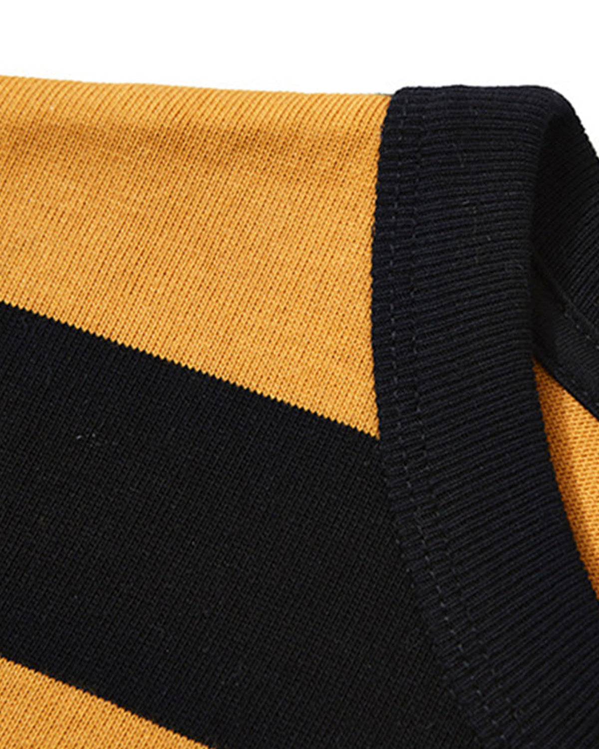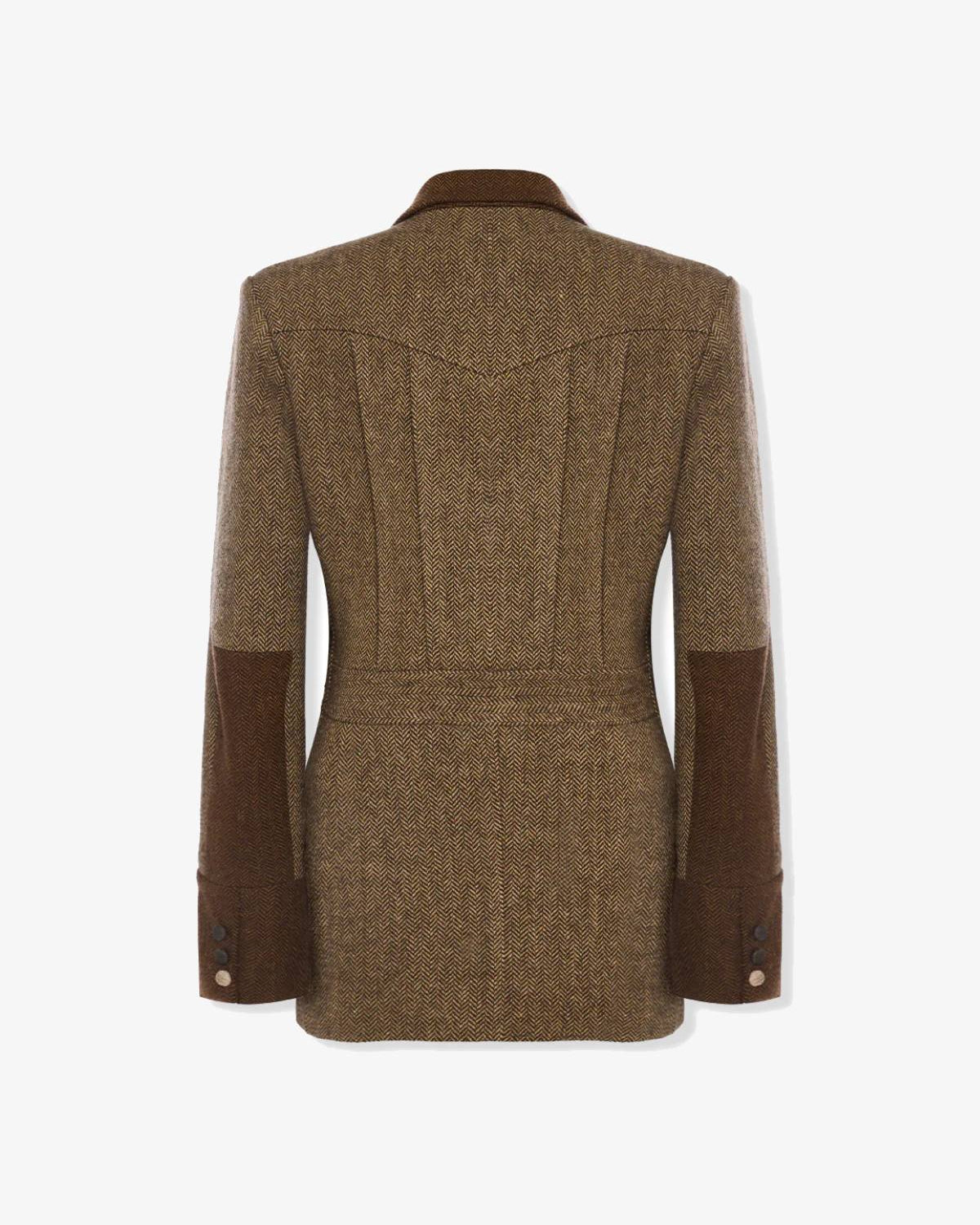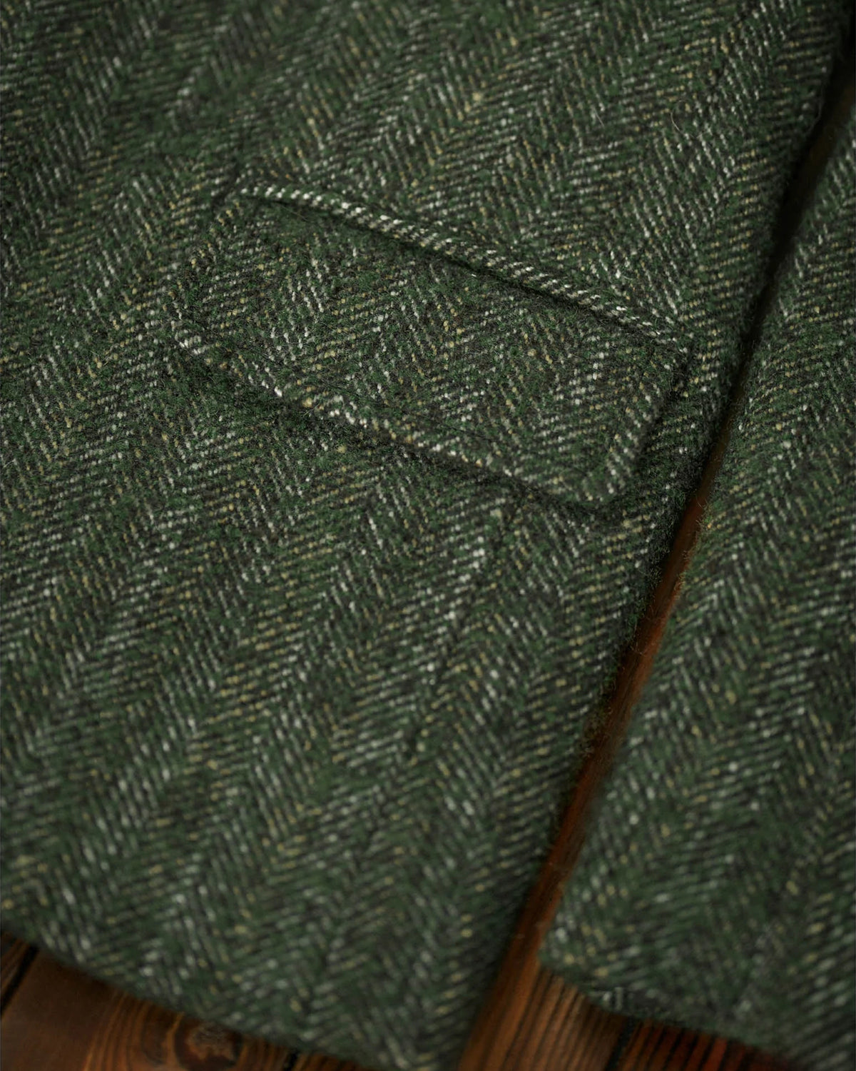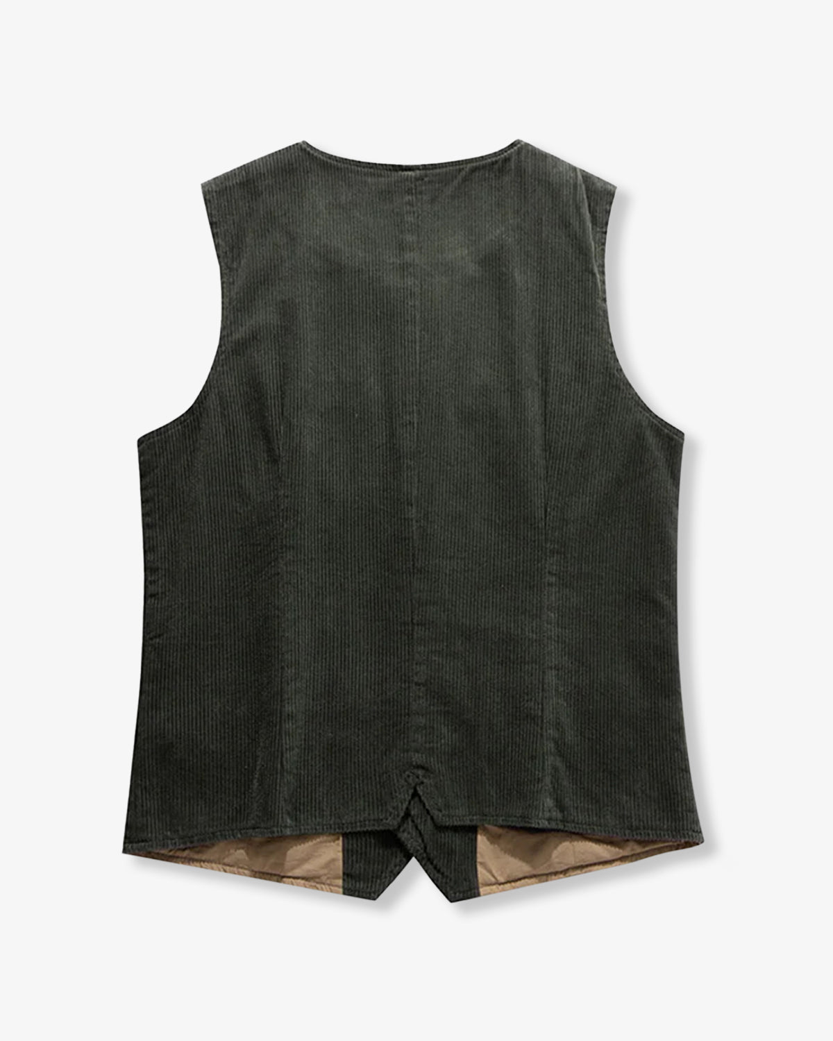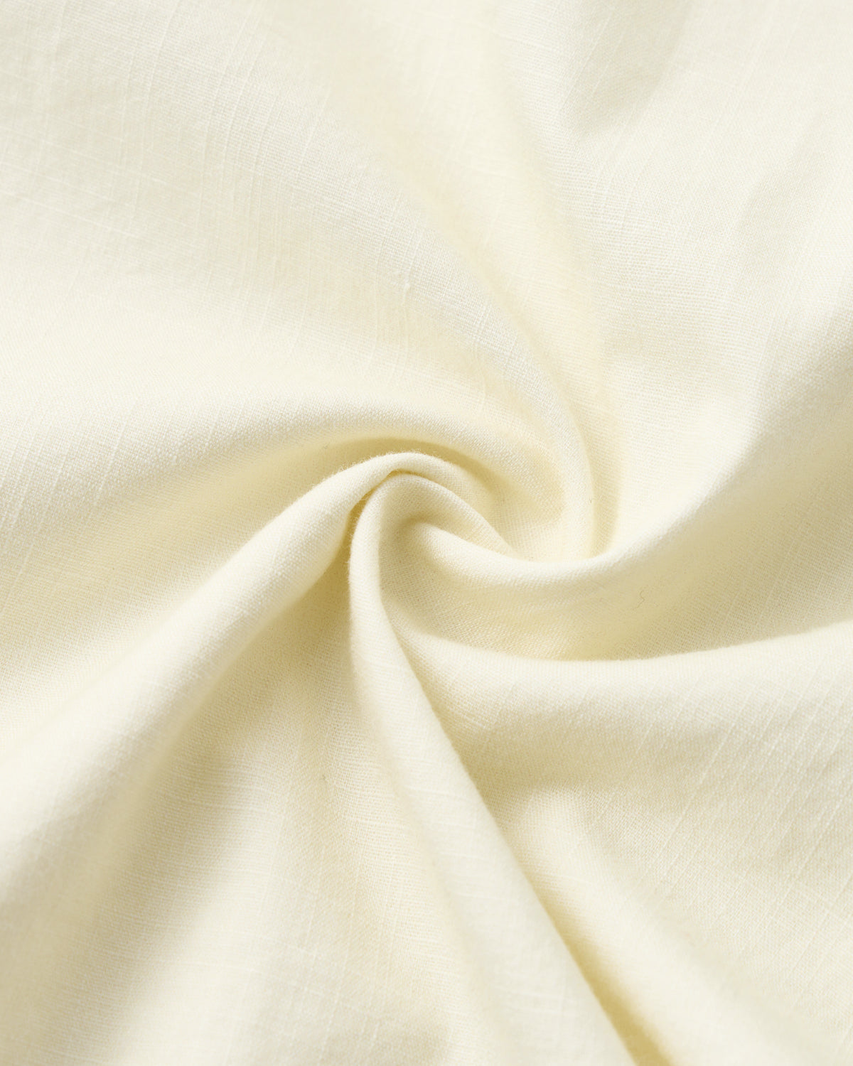 It has no collar, giving it a casual look. The large pockets and color-coordinated buttons are also nice touches.