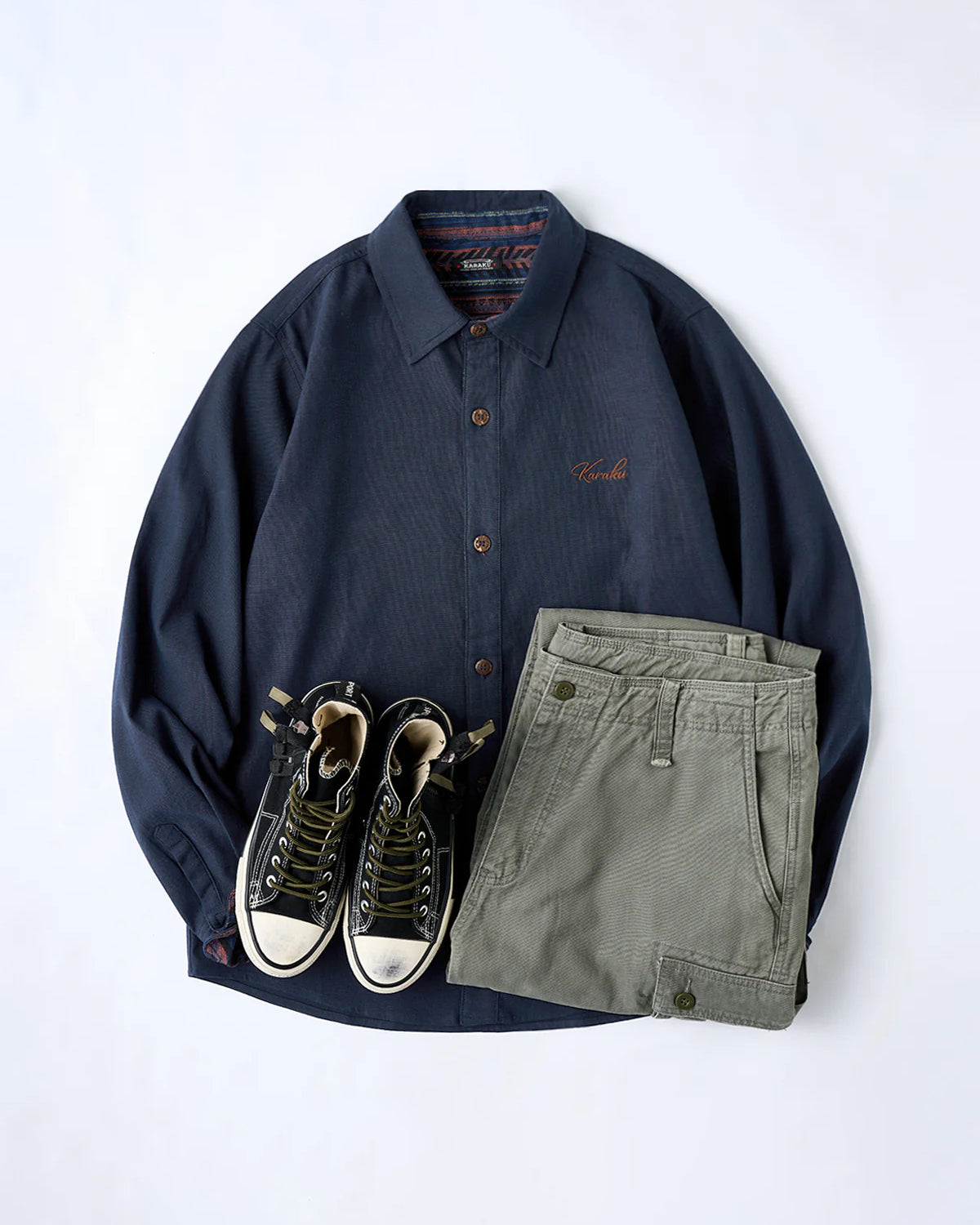 Curated essentials meet artistry: Wabash denim, CAT shirts, Japanese artist collaborations, and indigo-dyed creations. Craftsmanship meets modern design in limited-edition pieces.