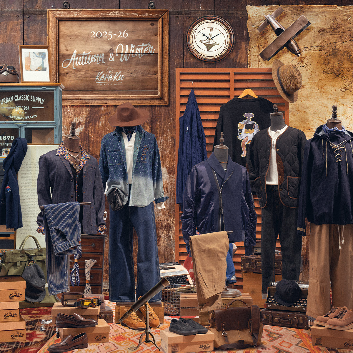 Curated essentials meet artistry: Wabash denim, CAT shirts, Japanese artist collaborations, and indigo-dyed creations. Craftsmanship meets modern design in limited-edition pieces.