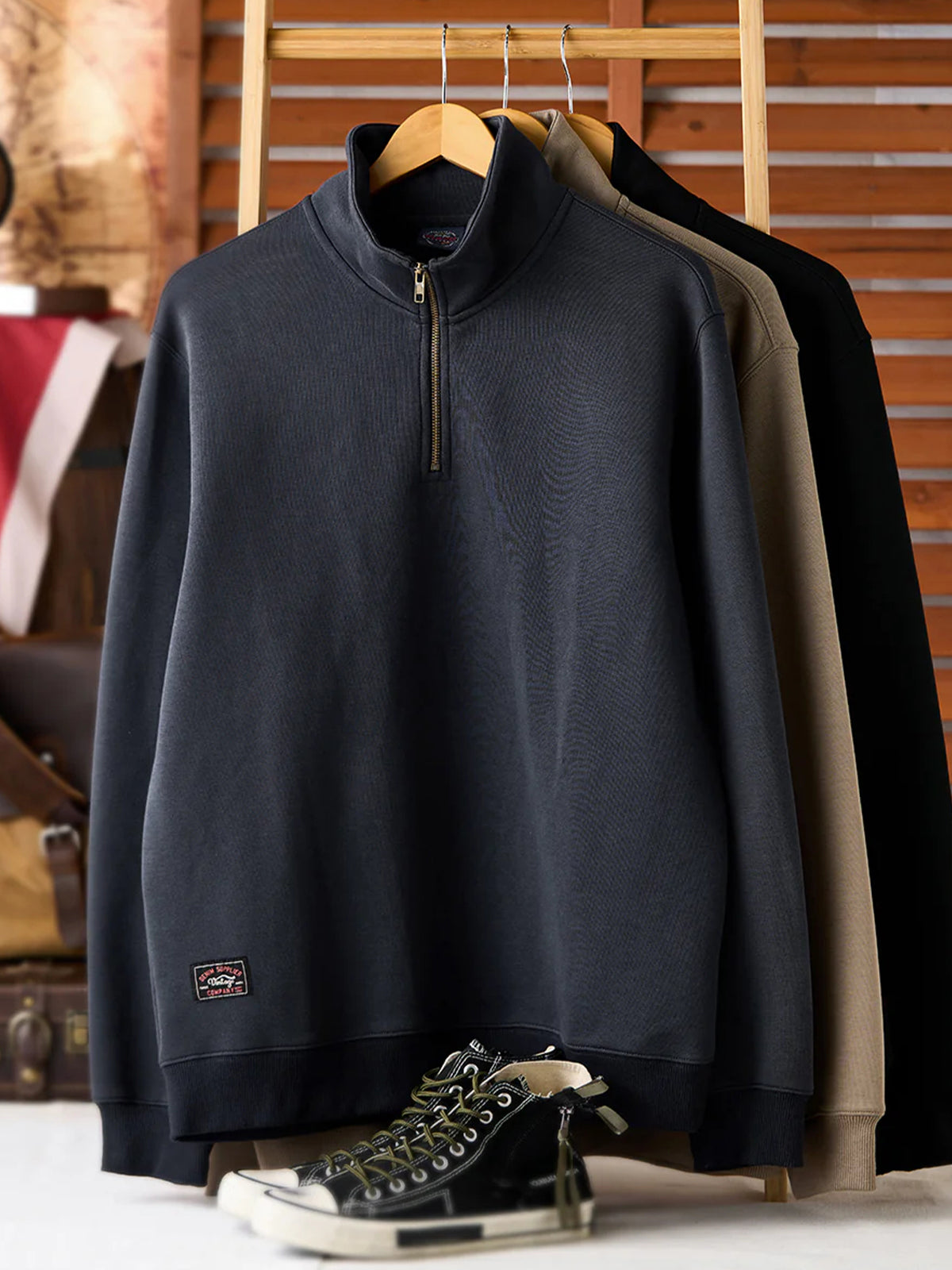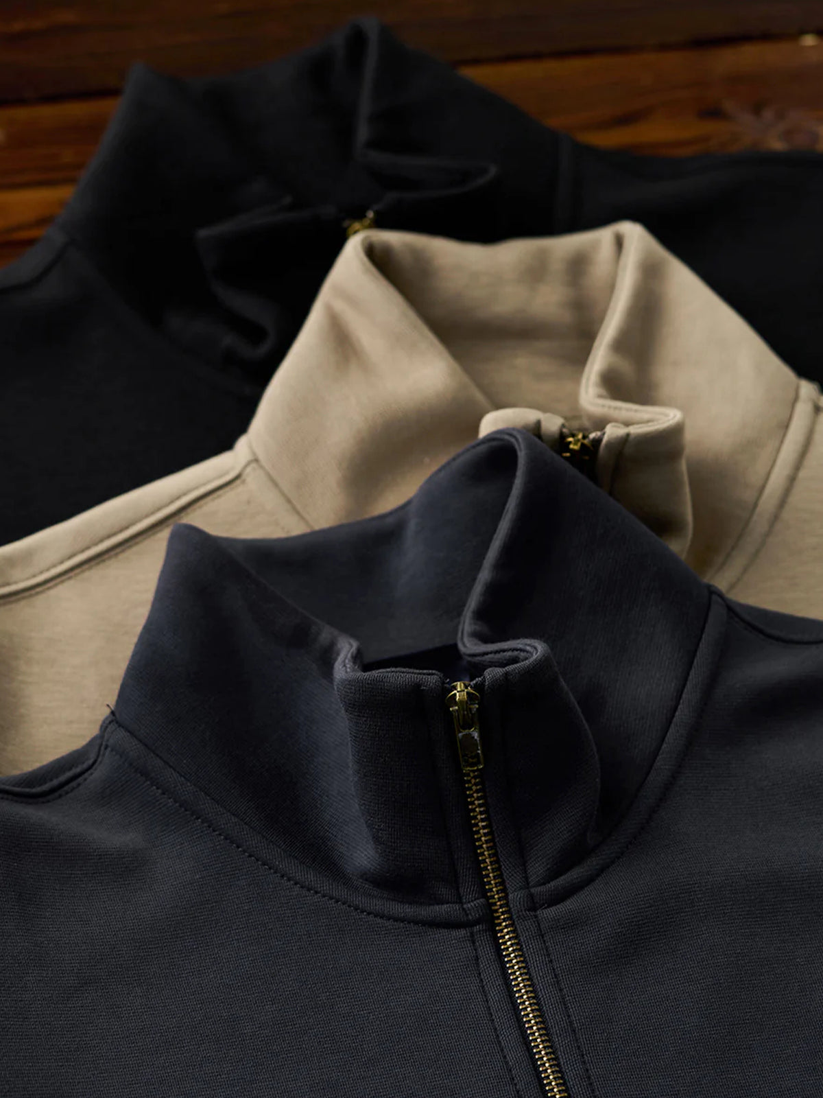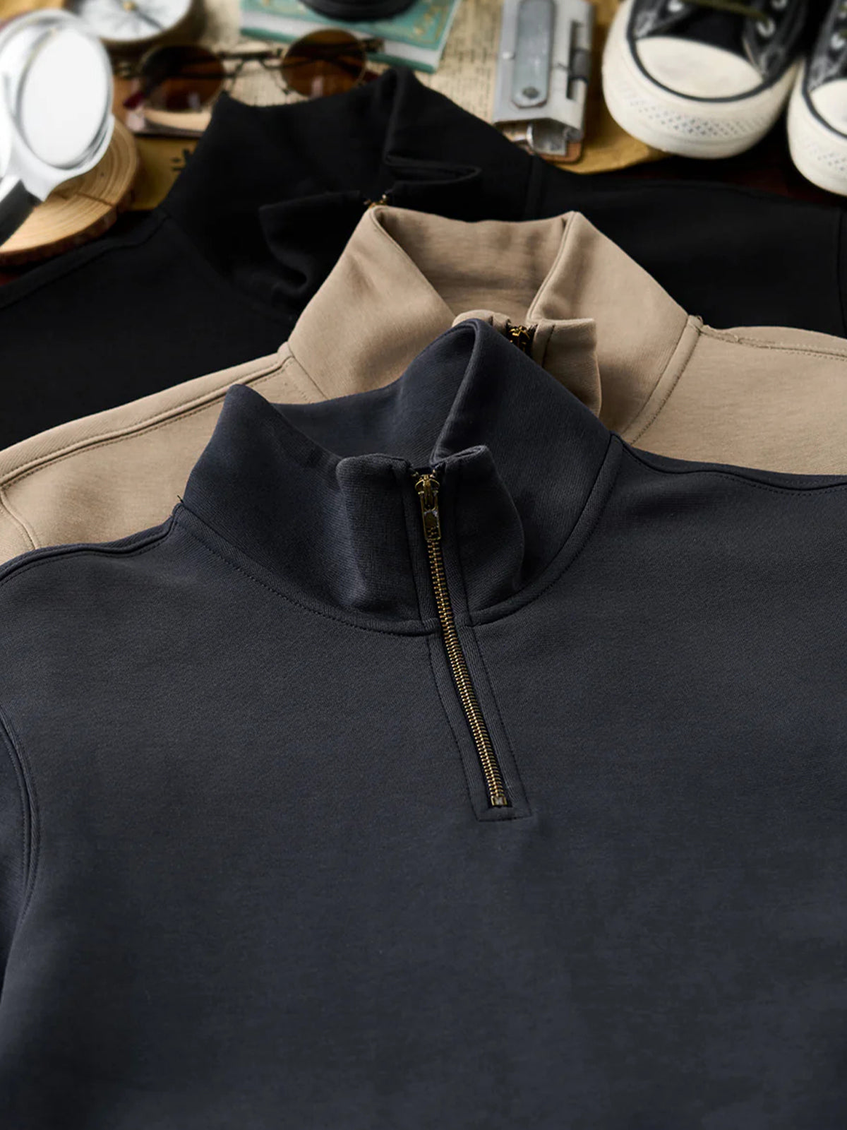 Air Layer Sweatshirt with Antique Bronze Half-Zip