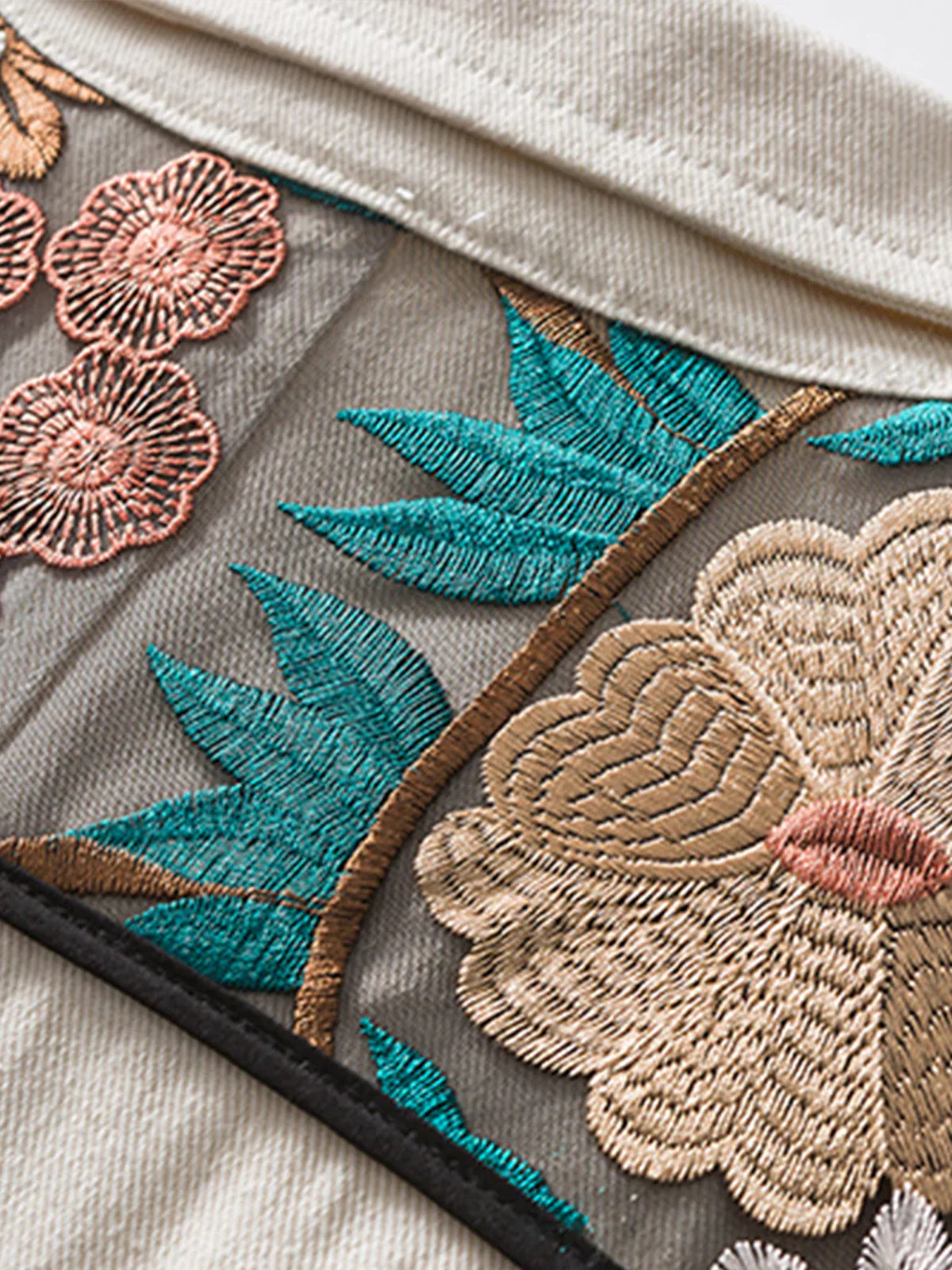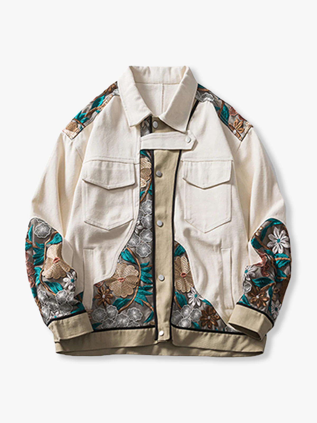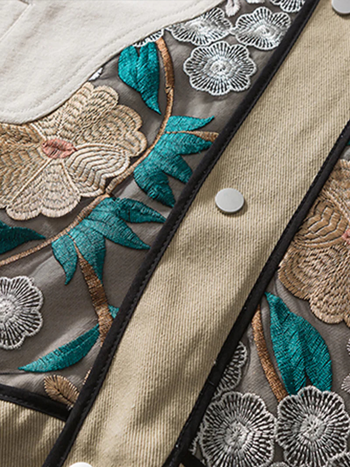 Botanical Lace Panel Cotton Canvas Work Jacket