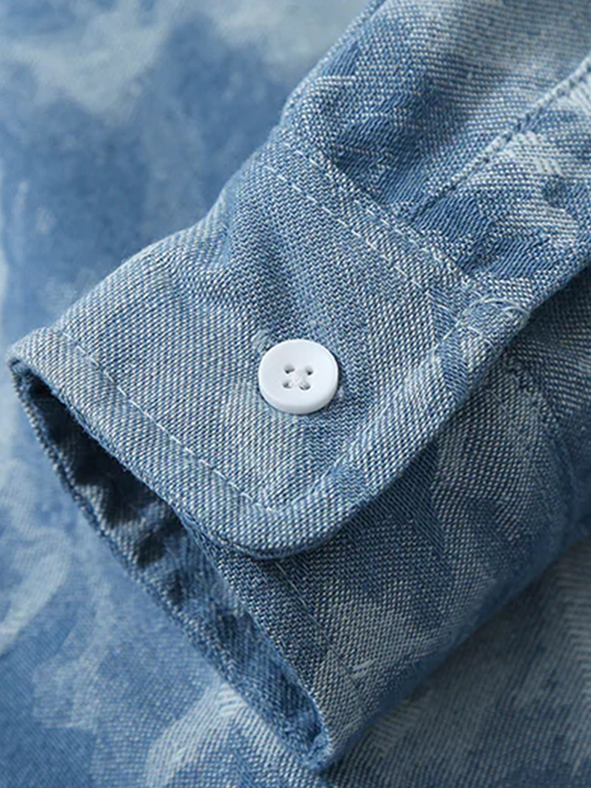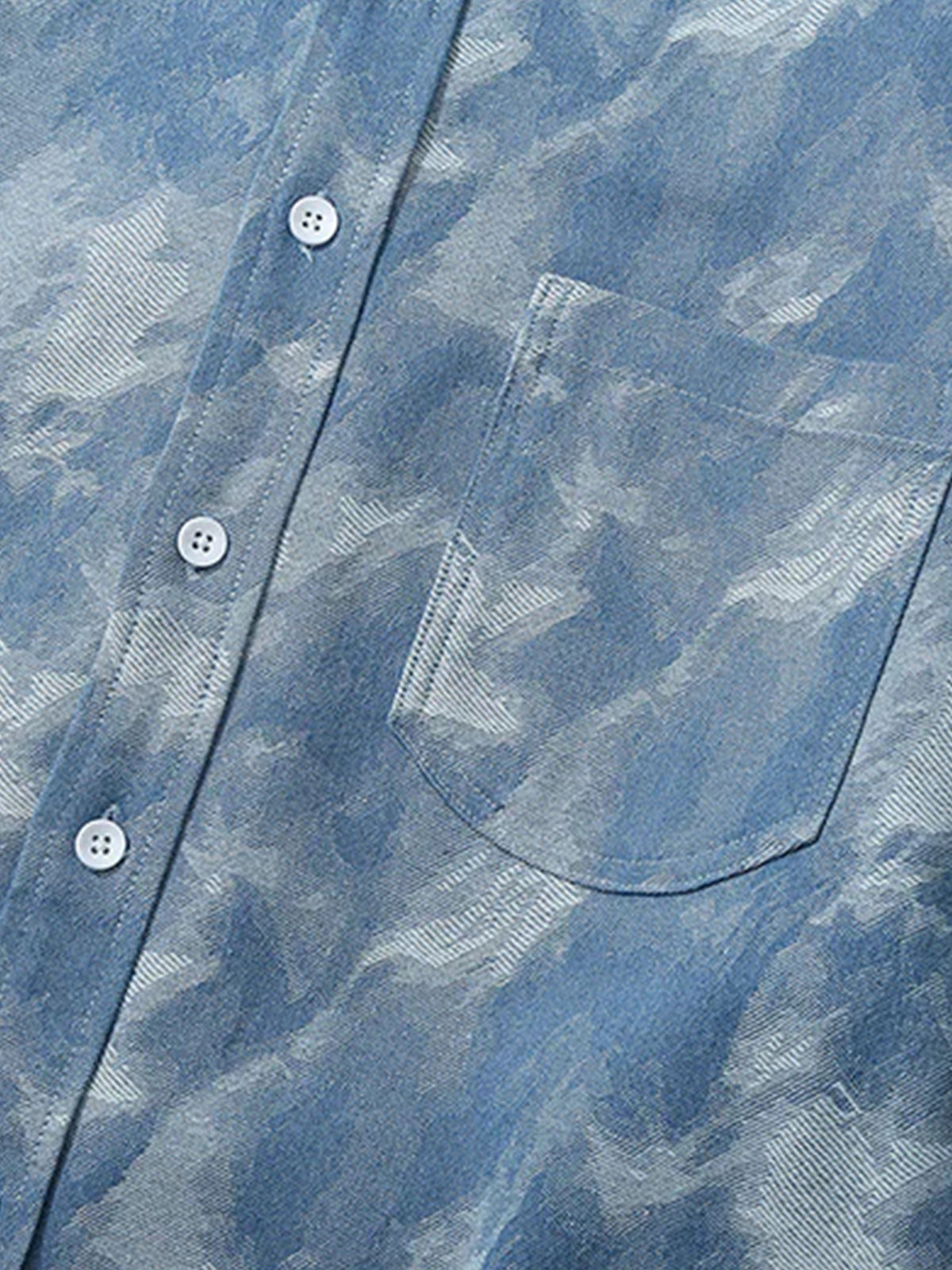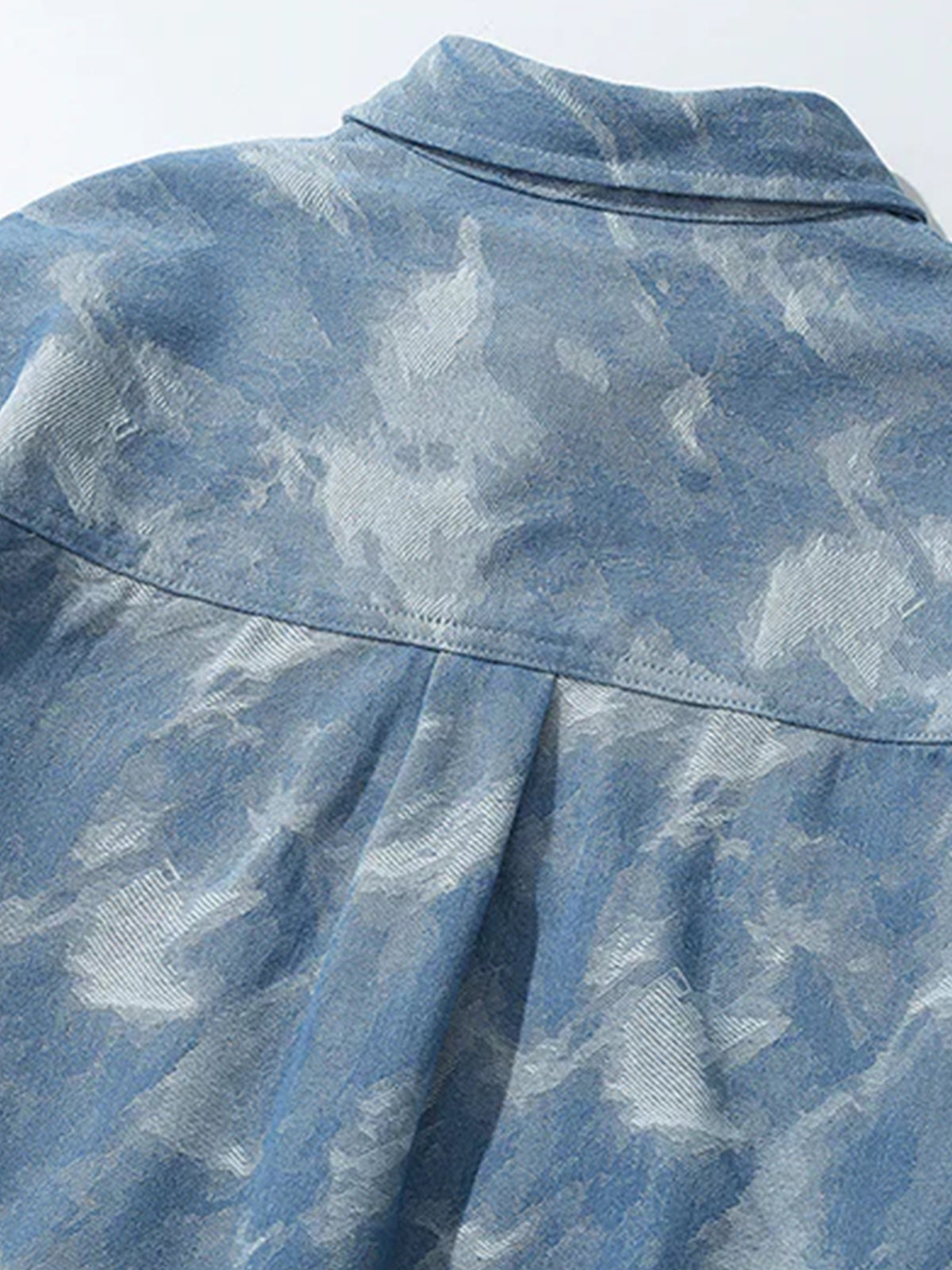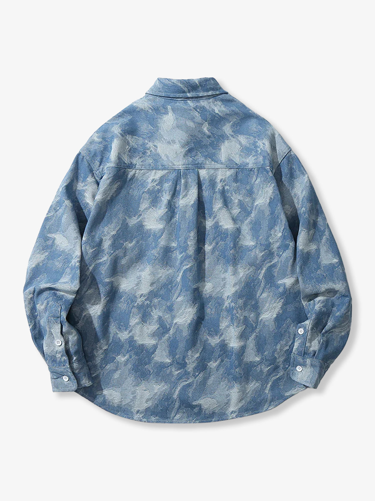 Oil-Painting-Style Gradient All-Over Raglan Denim Work Shirt