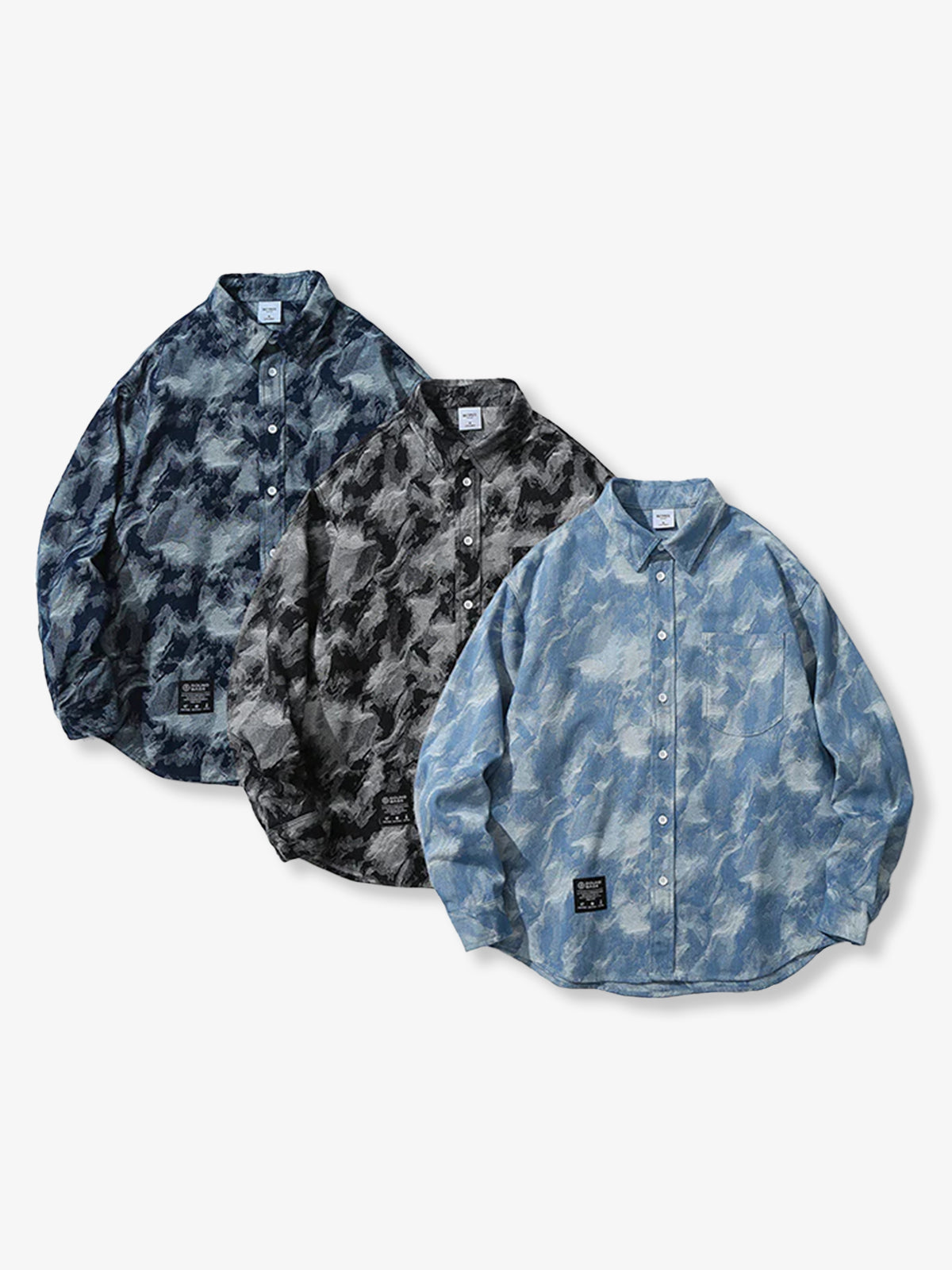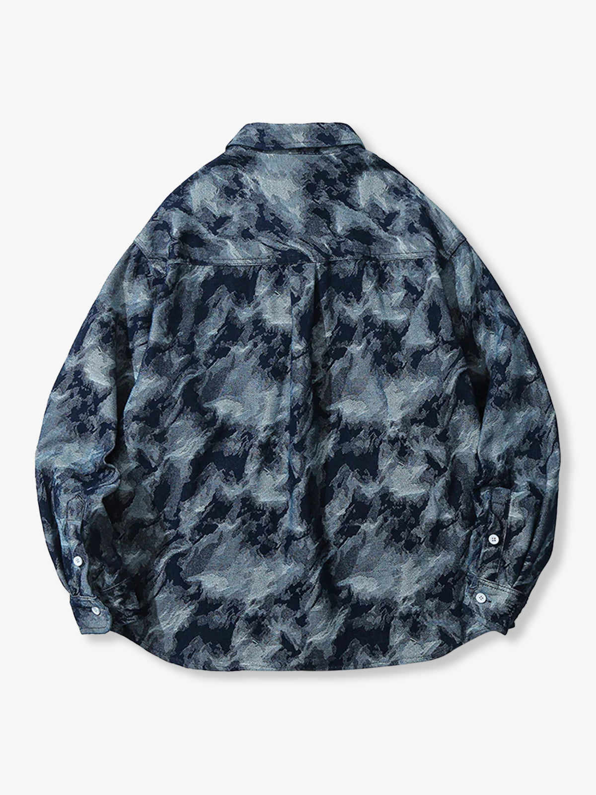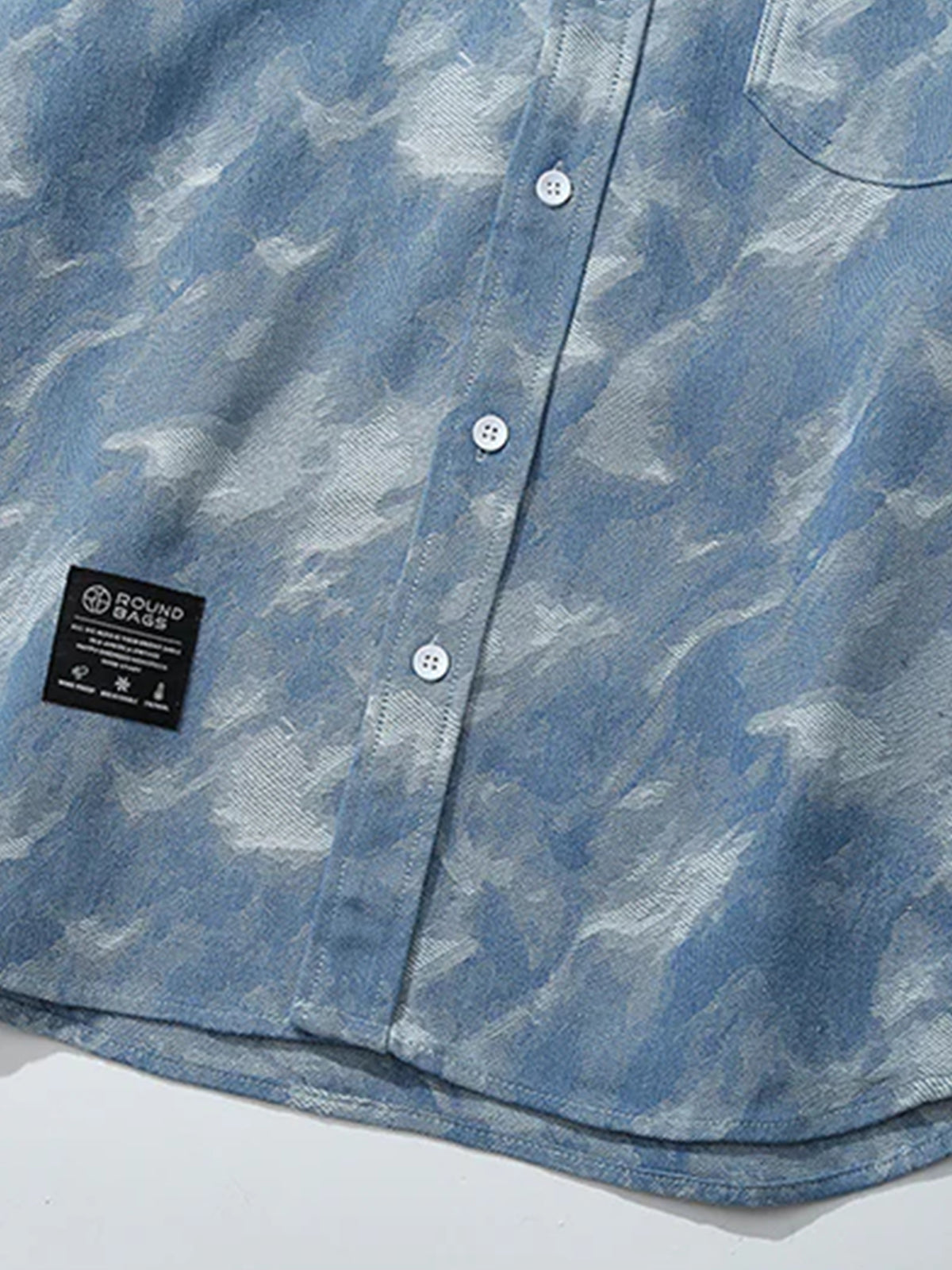 Oil-Painting-Style Gradient All-Over Raglan Denim Work Shirt