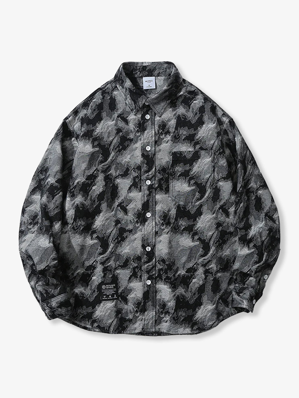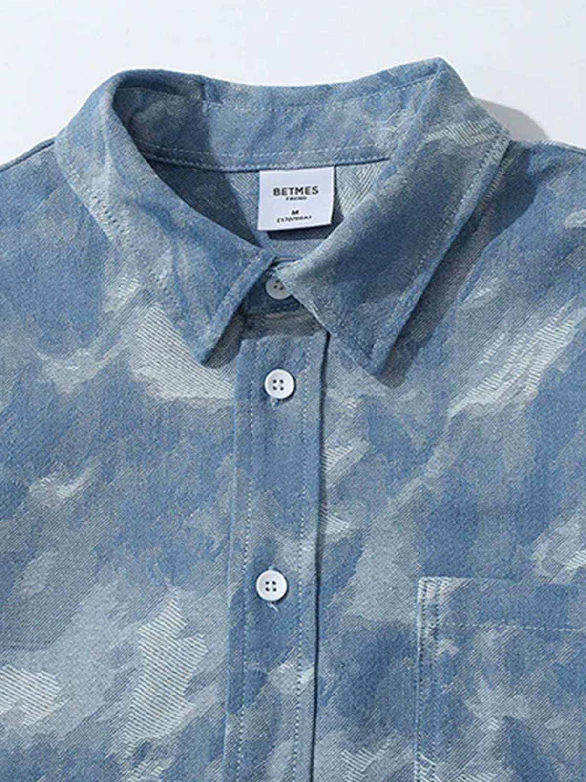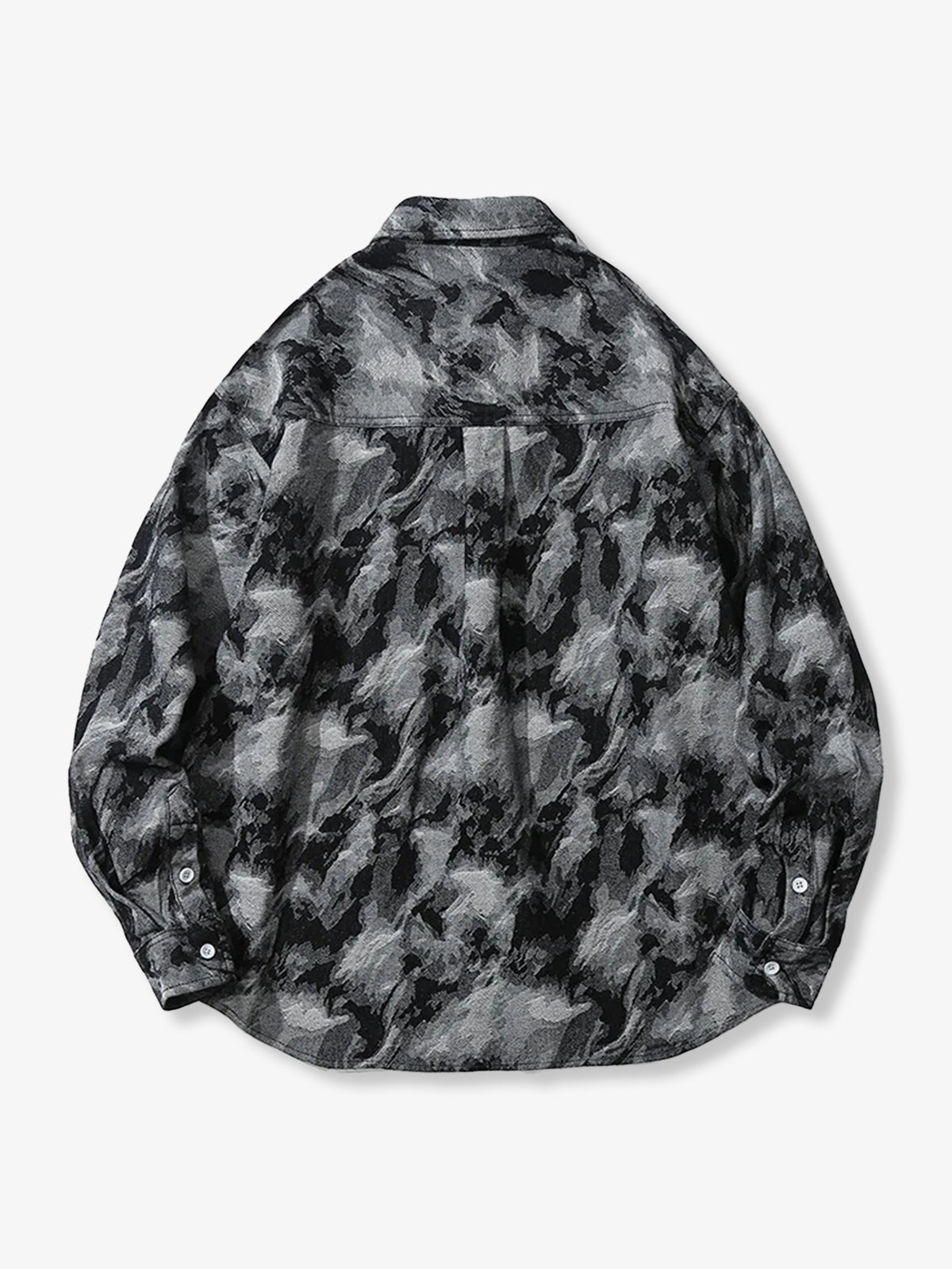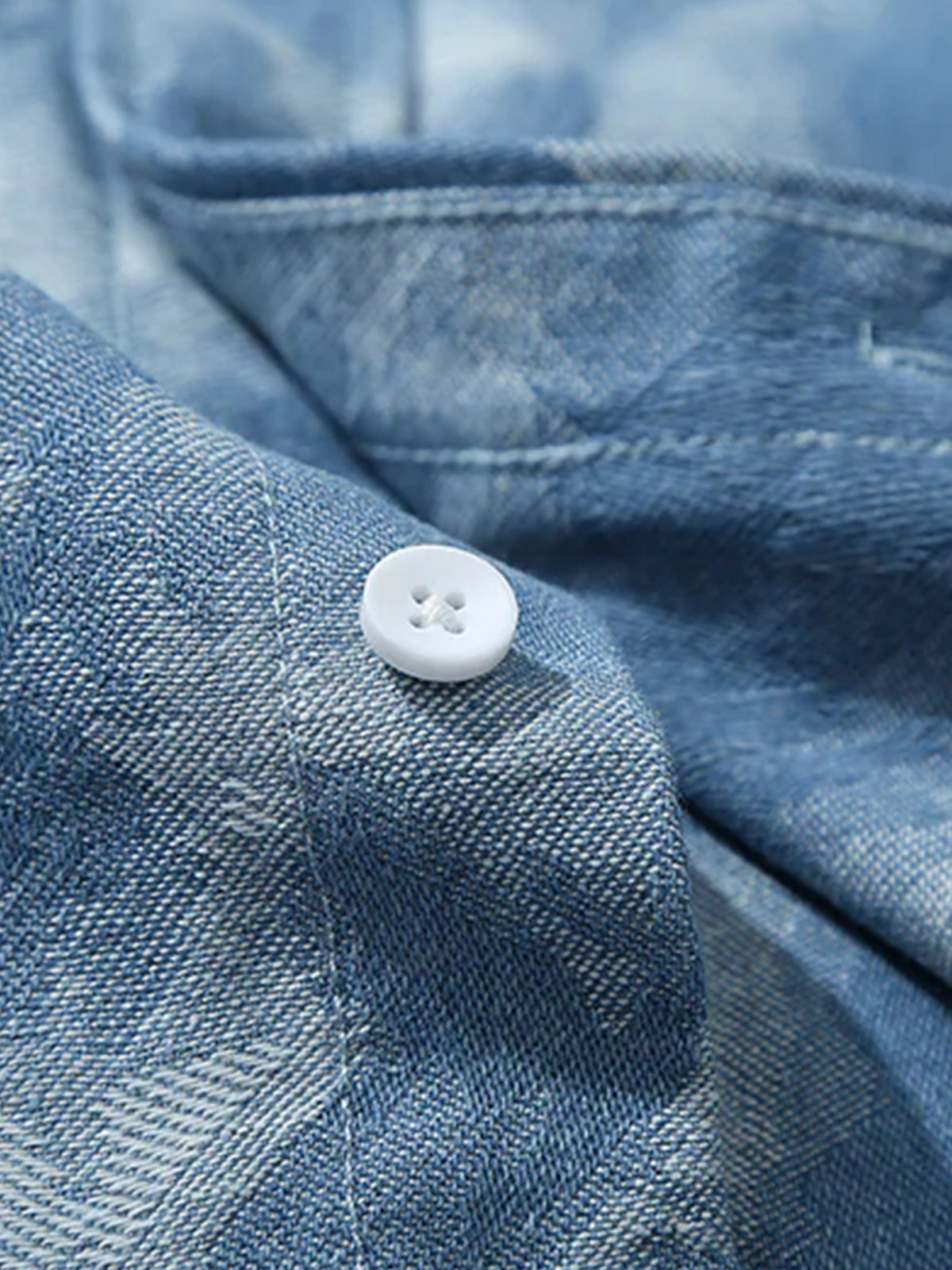 Oil-Painting-Style Gradient All-Over Raglan Denim Work Shirt
