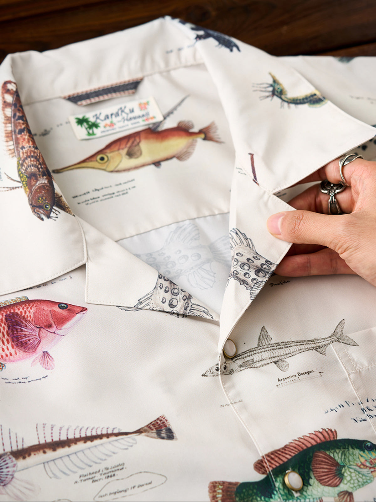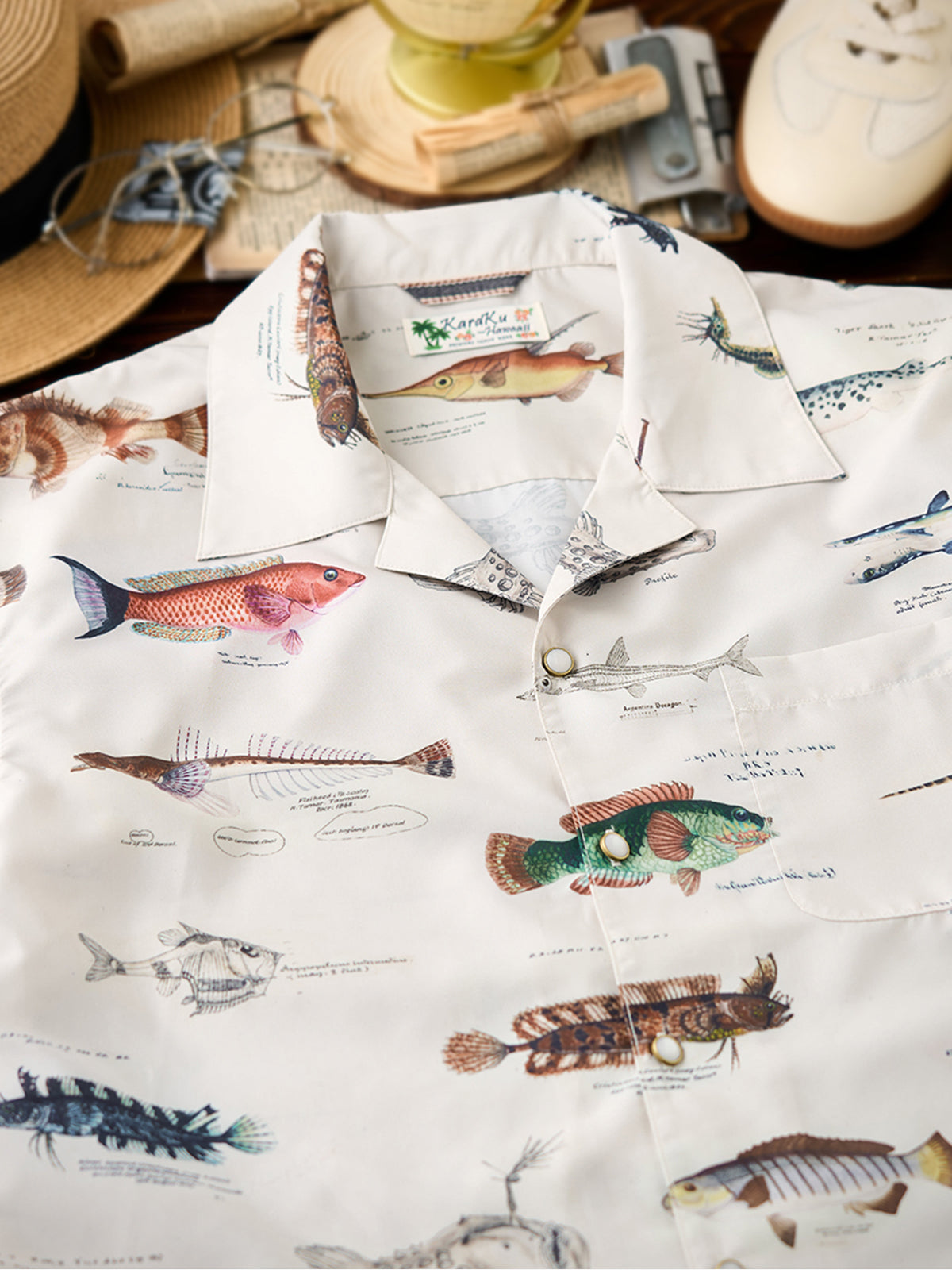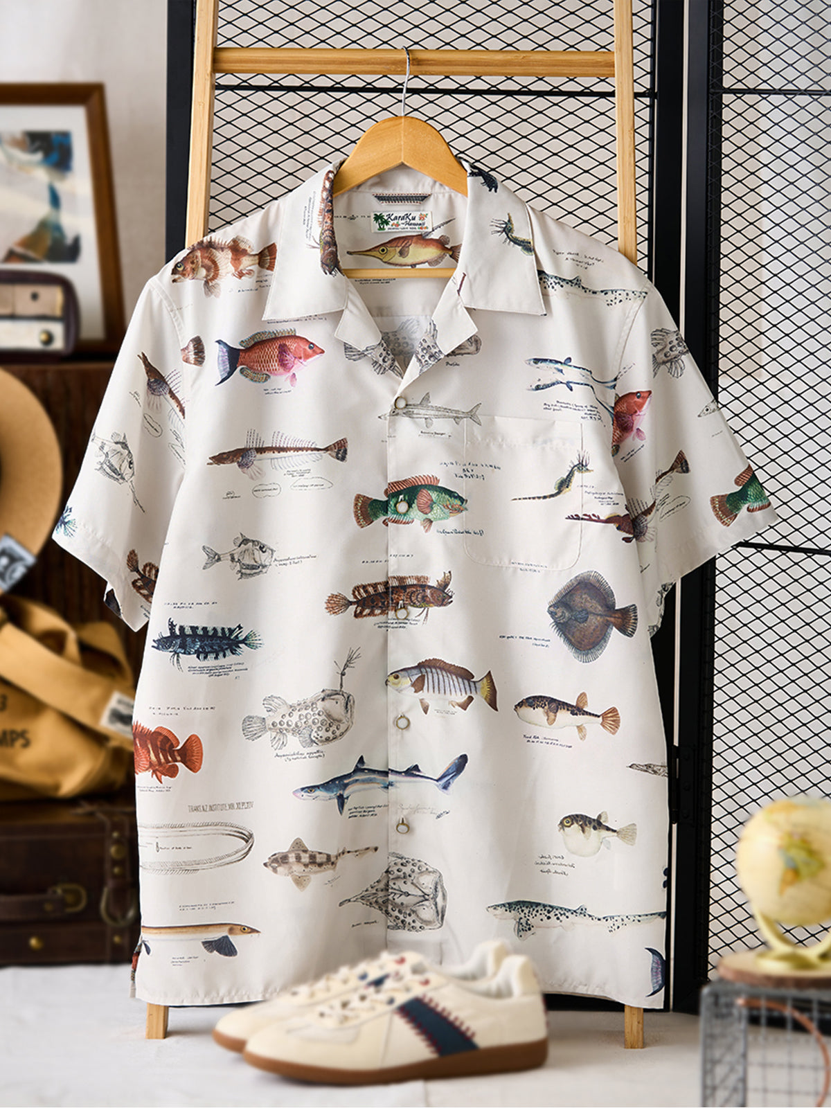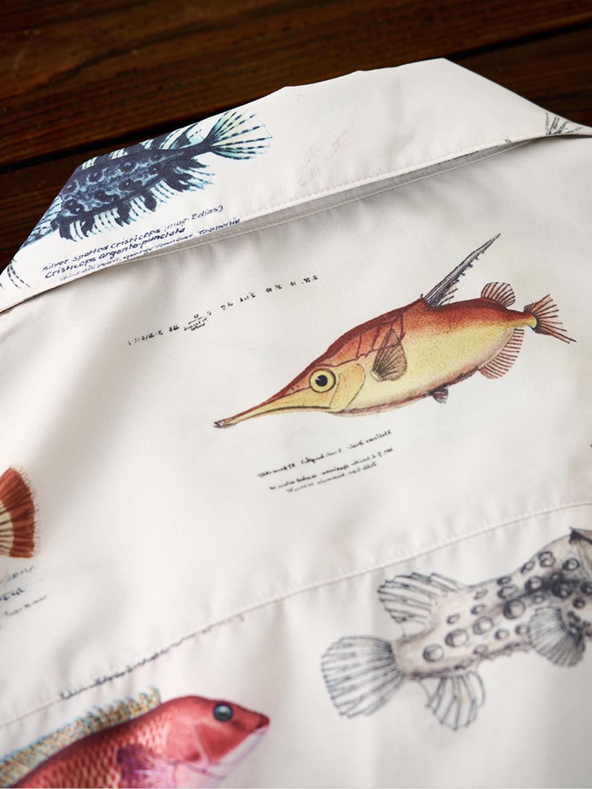 “Deep-Sea Creatures” All-Over Print Open-Collar Shirt
