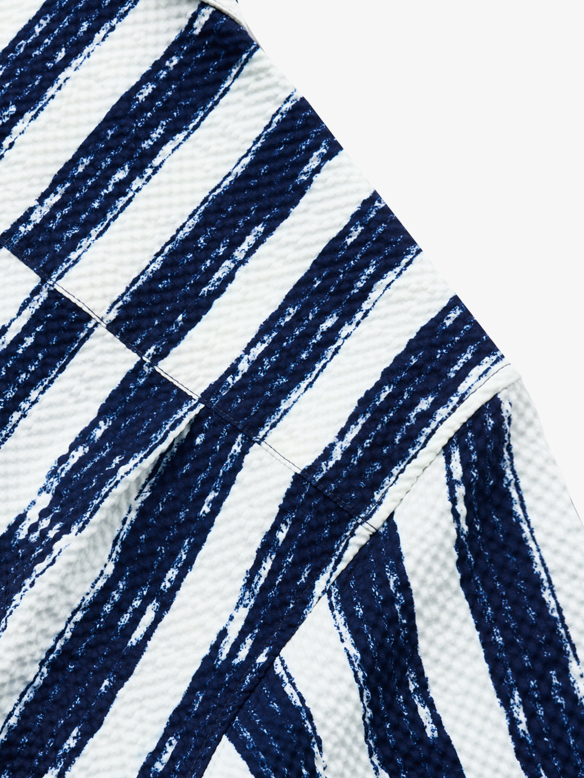 - Fabric Features: Its signature puckered texture, provides an eco-conscious and breathable choice that enhances cooling through improved air circulation.