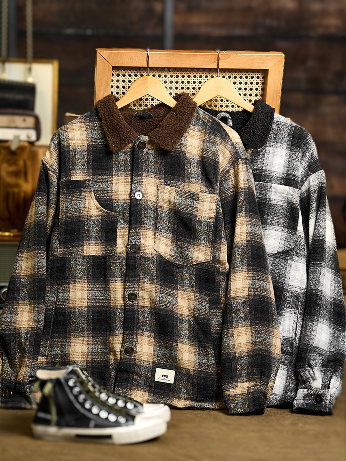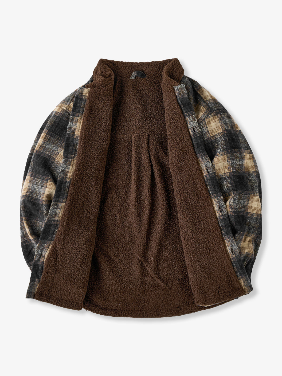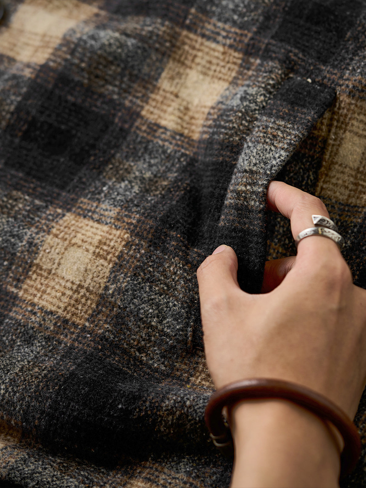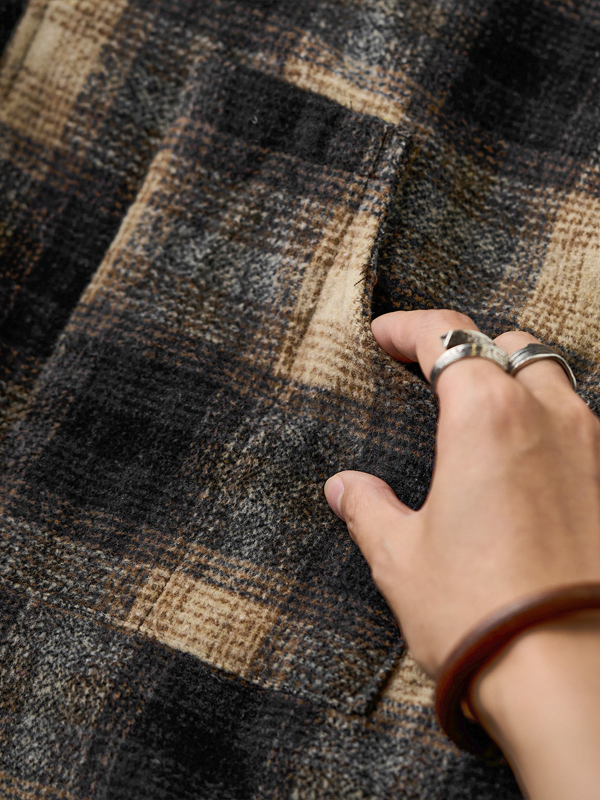Lined Long Sleeve Wool-Blend Tweed Check Shirt