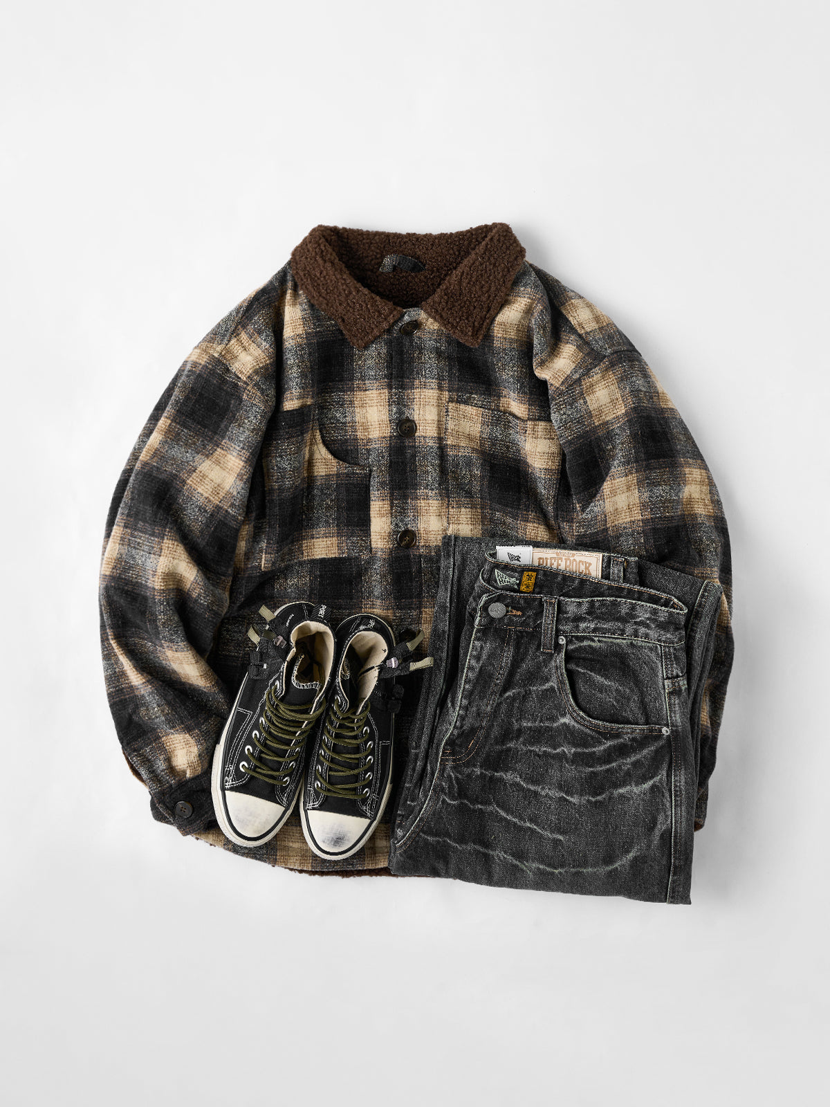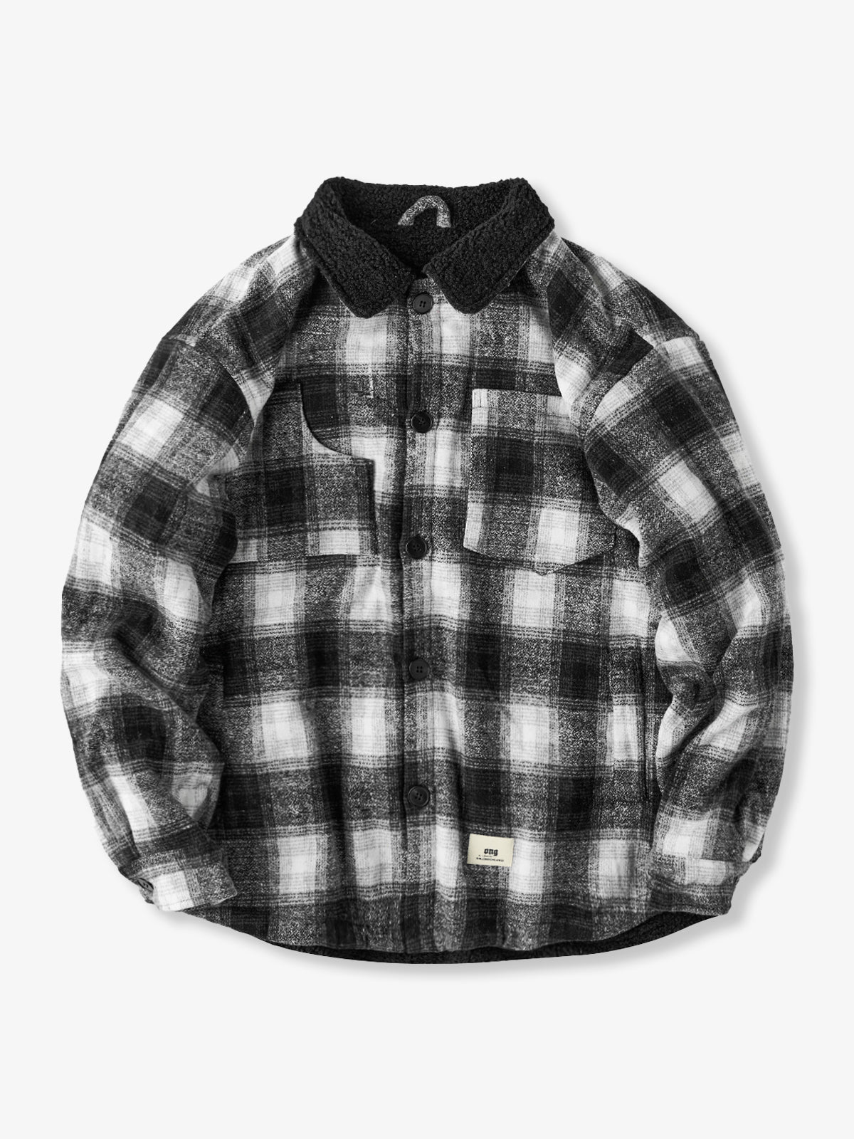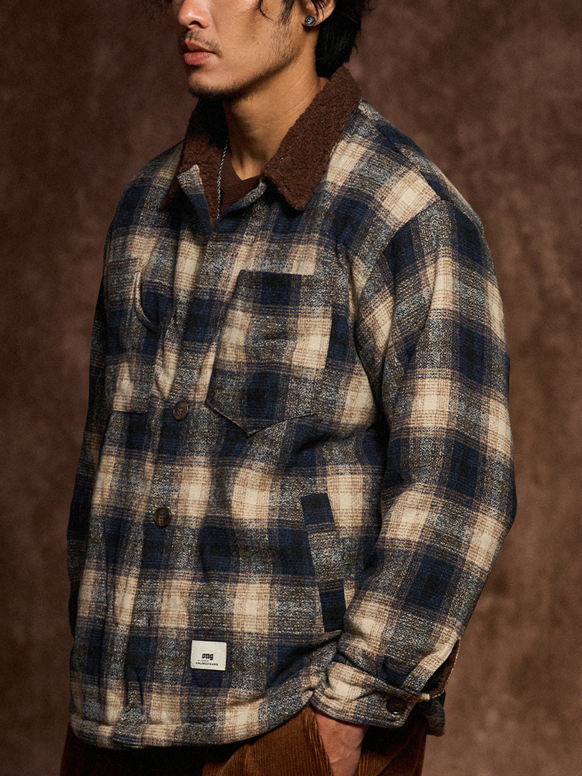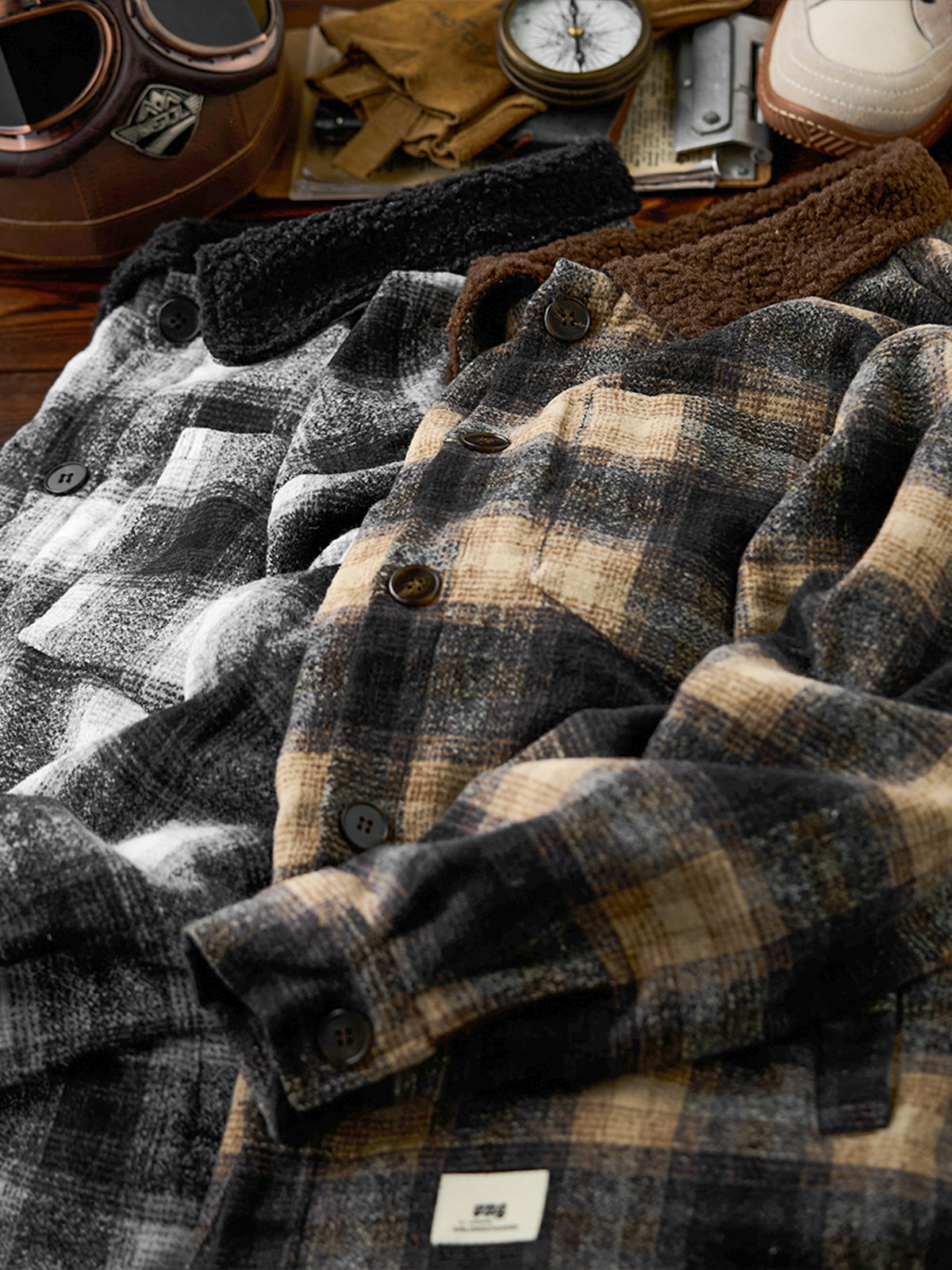 Lined Long Sleeve Wool-Blend Tweed Check Shirt