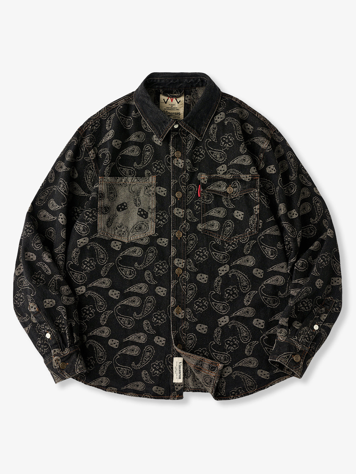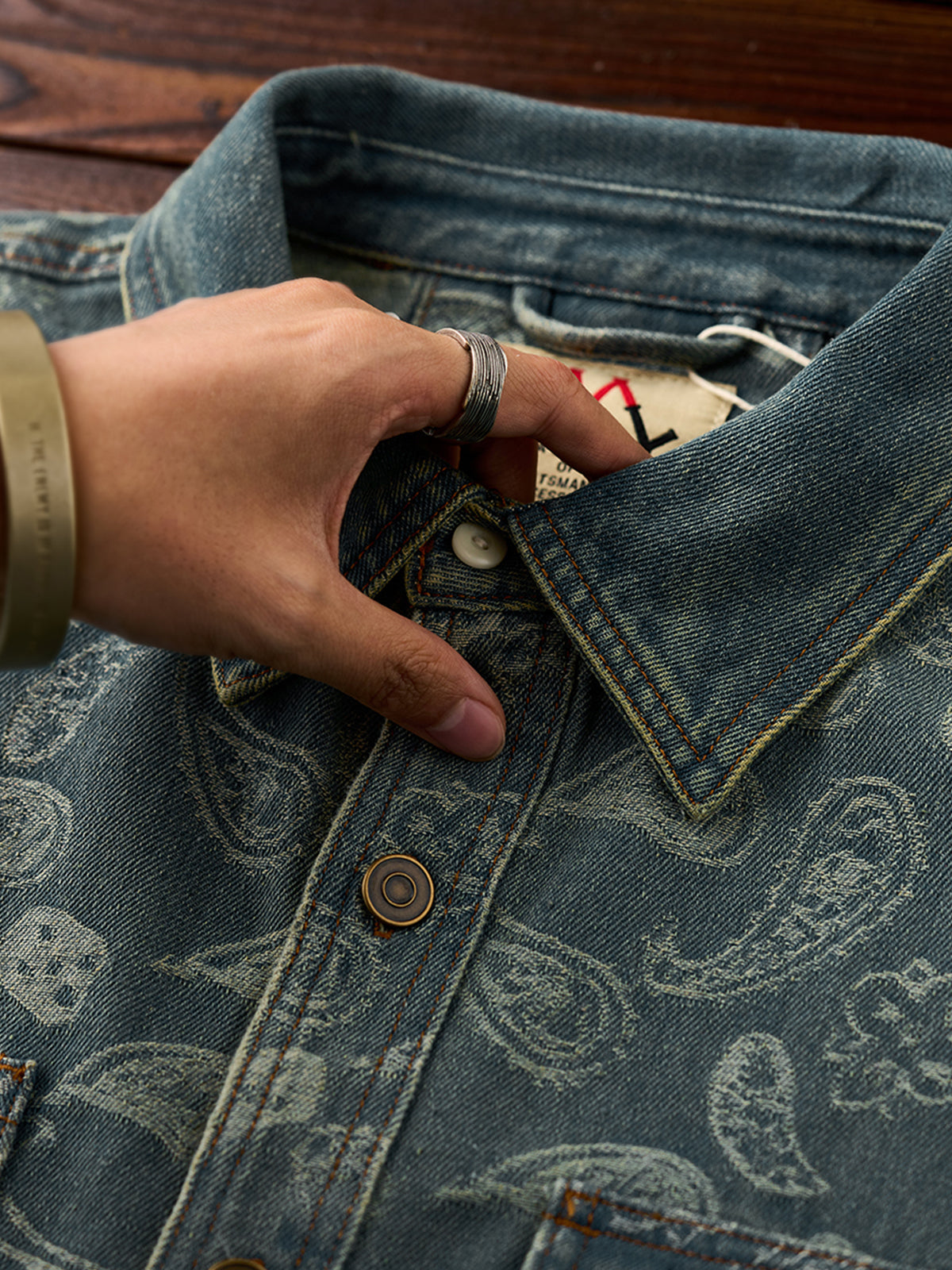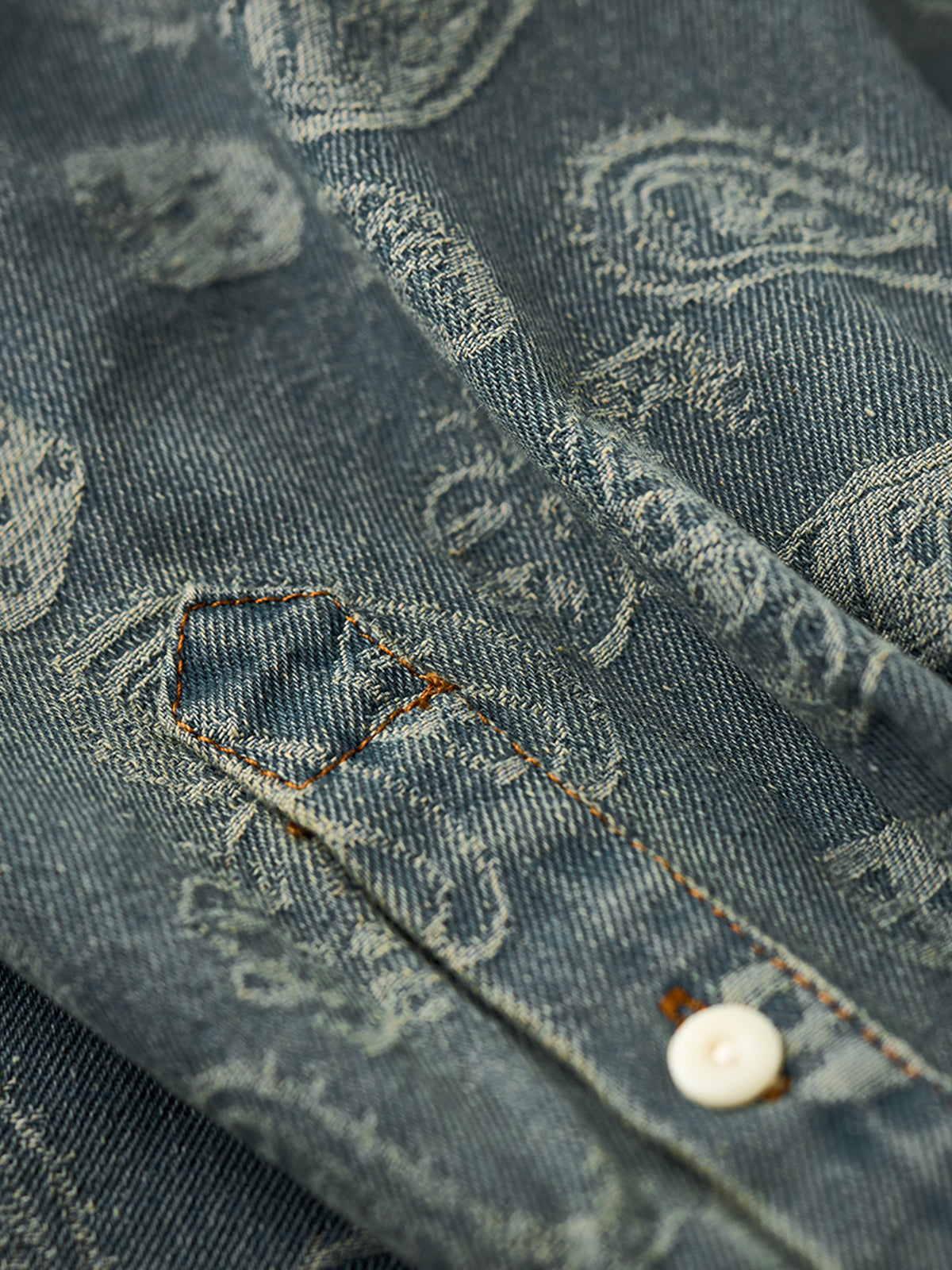All-over Paisley Jacquard Weave Heavyweight Denim Overshirt