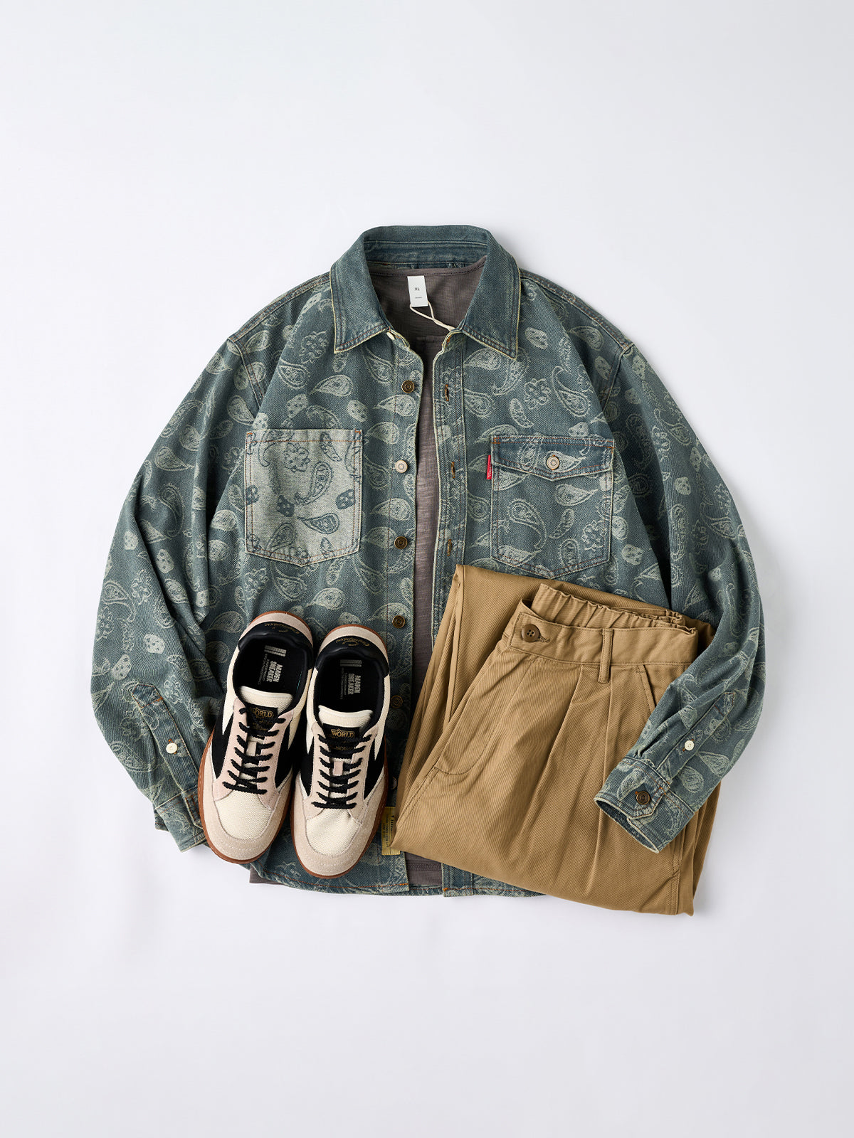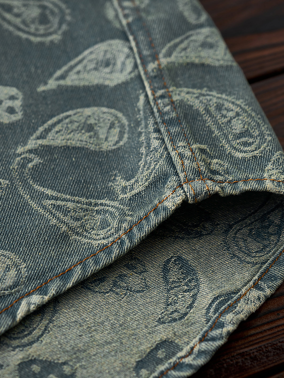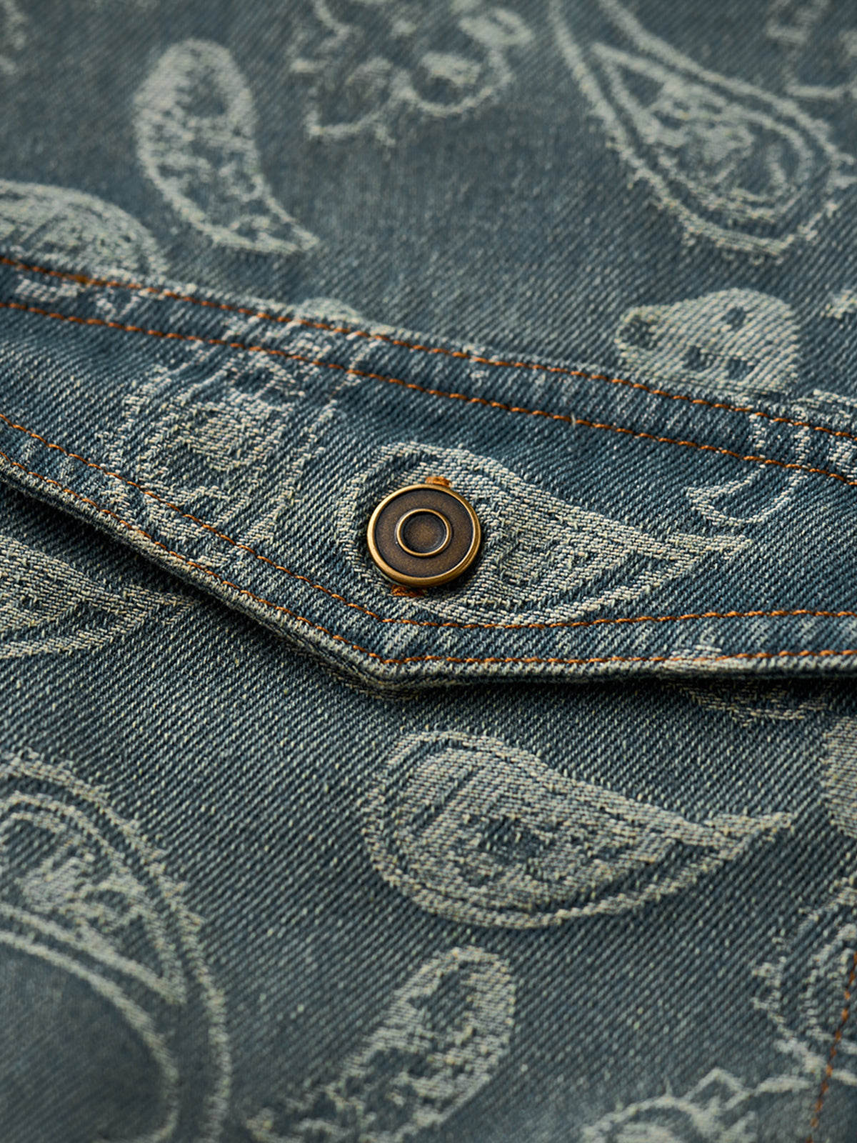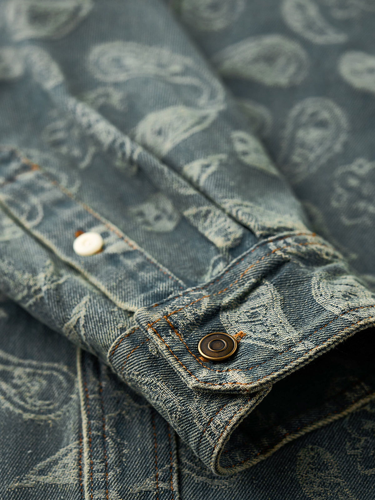 All-over Paisley Jacquard Weave Heavyweight Denim Overshirt
