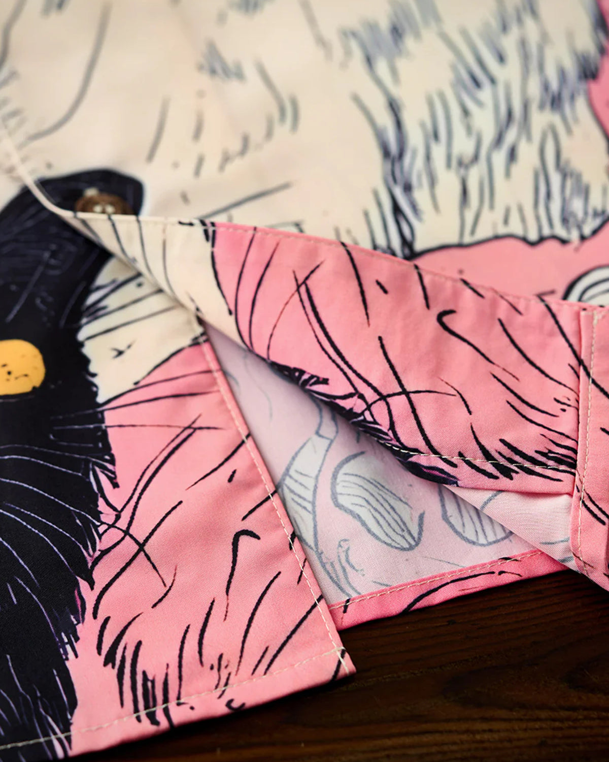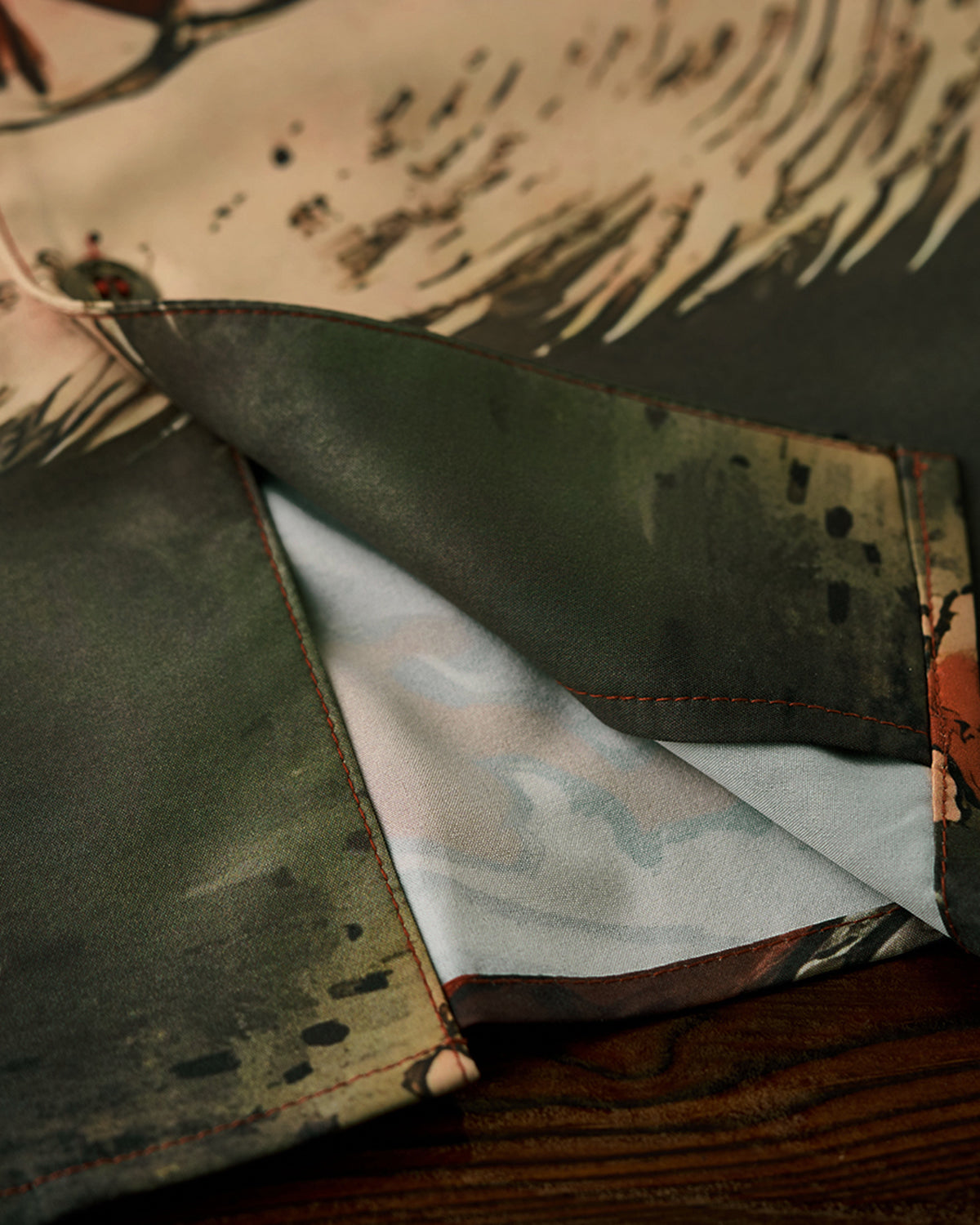 usually short-sleeved and made from printed fabric.Traditional men's aloha shirts are usually adorned with traditional Hawaiian quilt designs,tapa designs, and simple floral patterns in more muted colors.