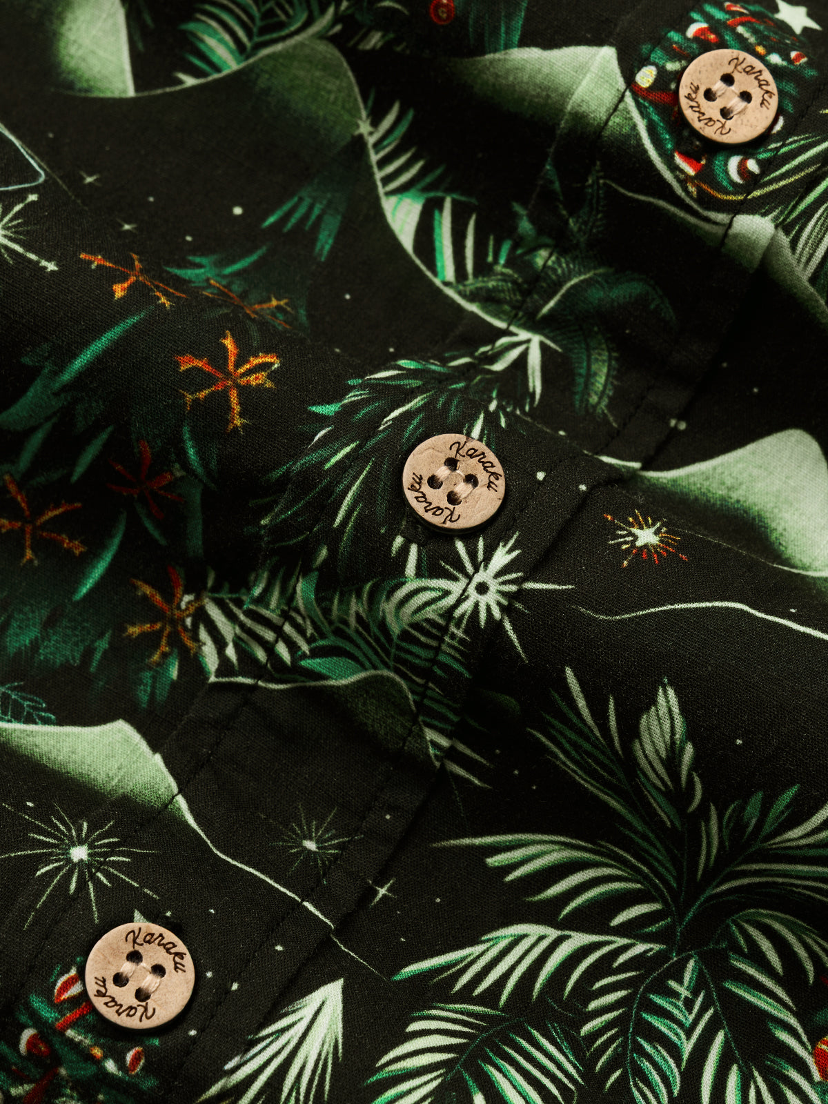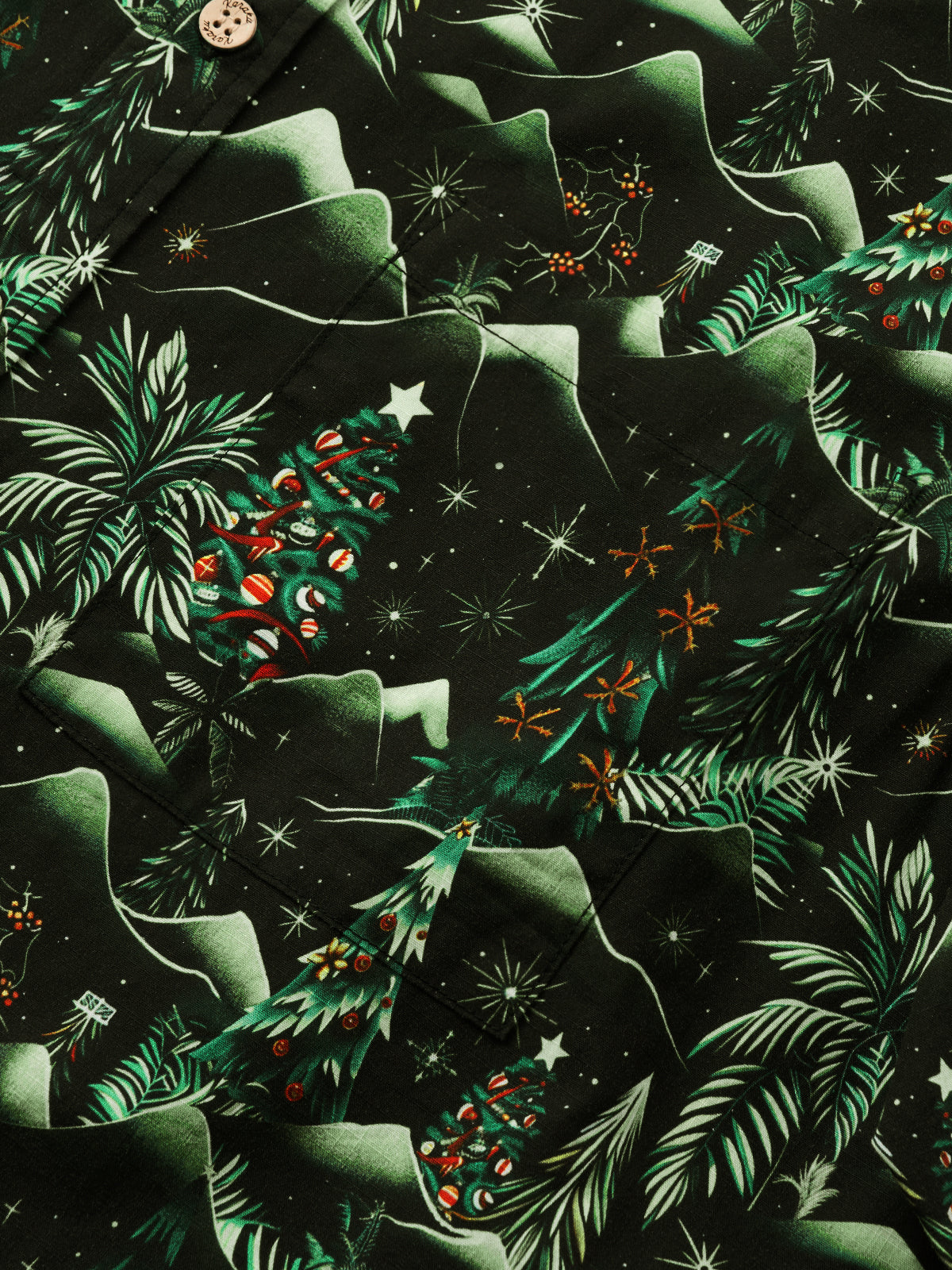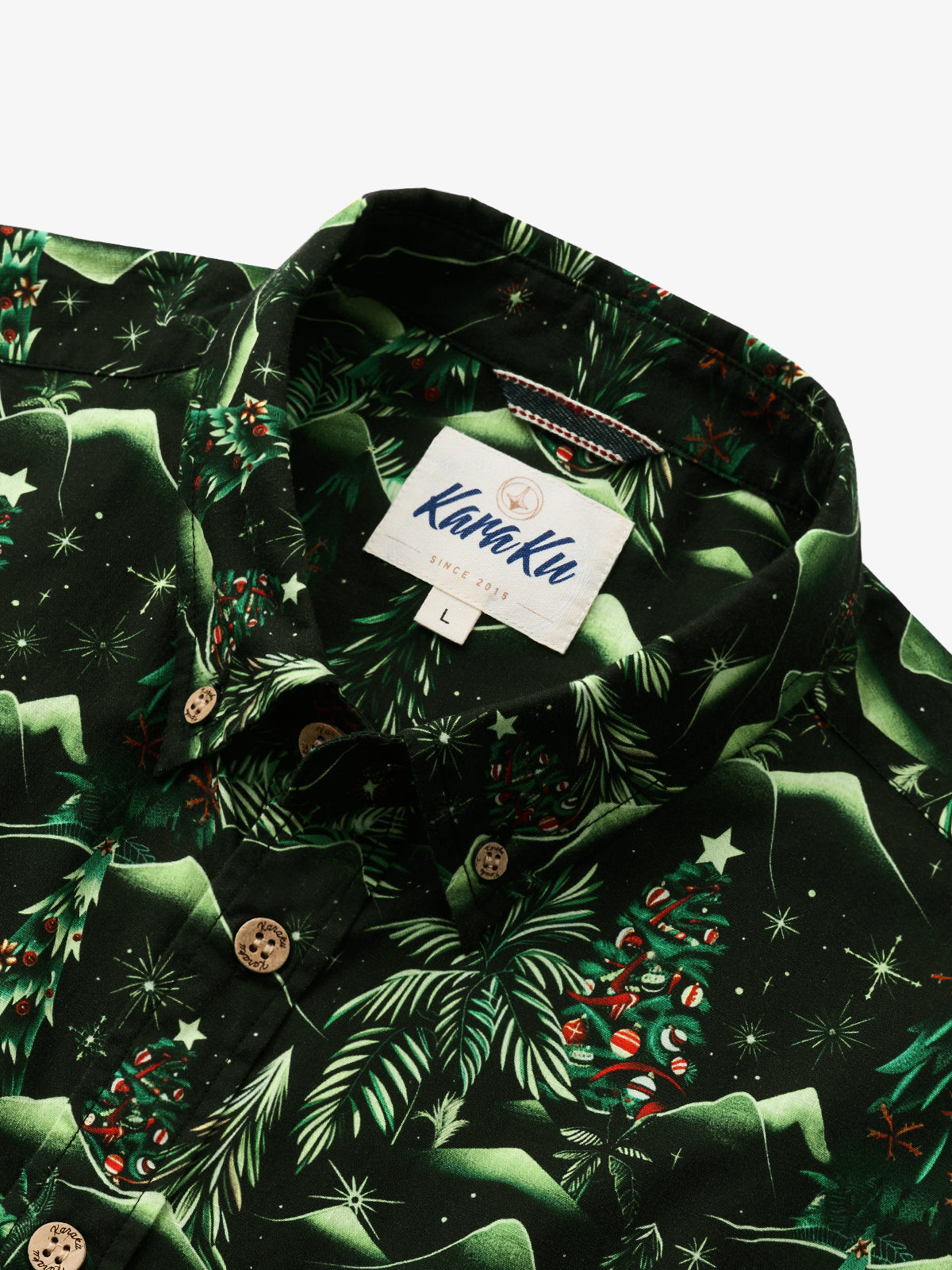 Inspired by the innovative blend of tropical vibes and Christmas cheer, this Hawaiian shirt features a vibrant green base adorned with festive Christmas trees. Made from soft, breathable cotton, it promises comfort and easy care. Perfect for holiday gatherings, beach parties, or casual outings, this shirt adds a touch of festive flair to any occasion. Embrace the spirit of the season in style!
