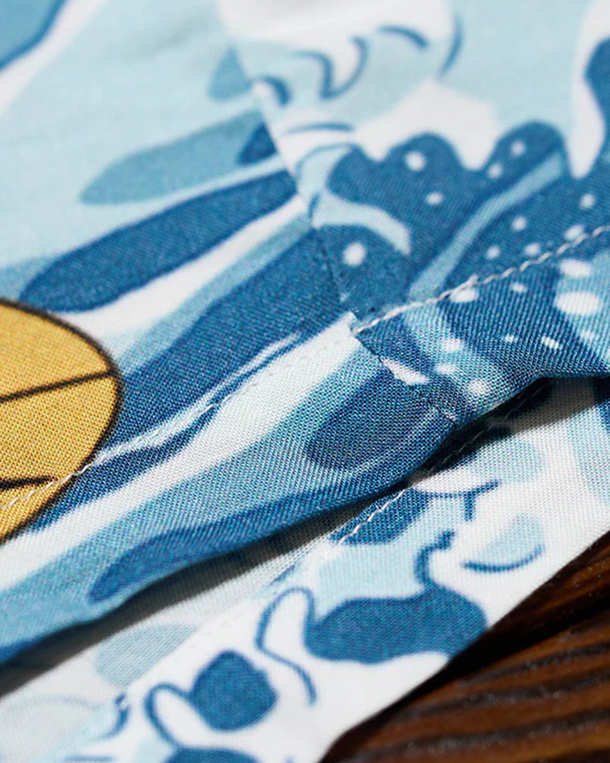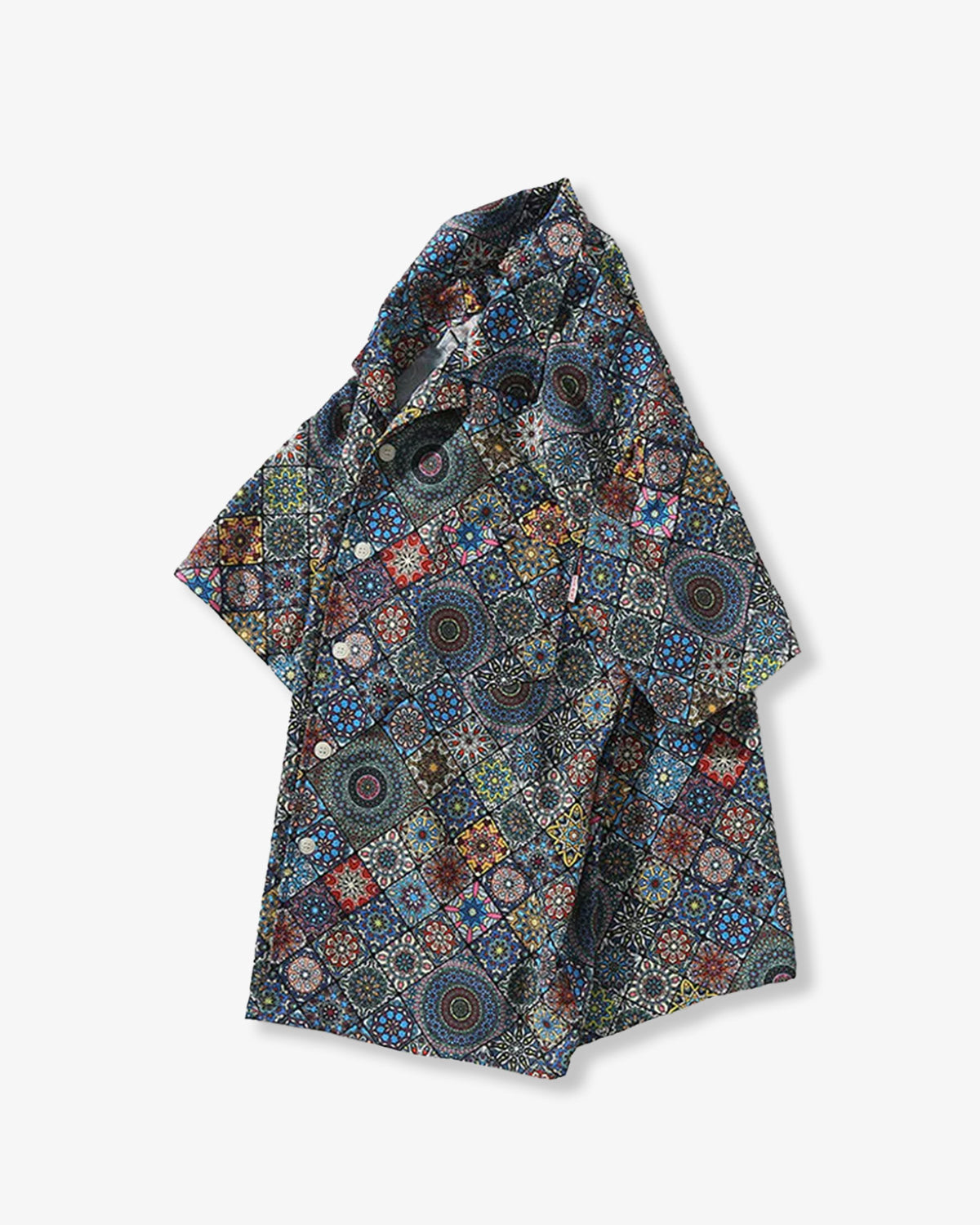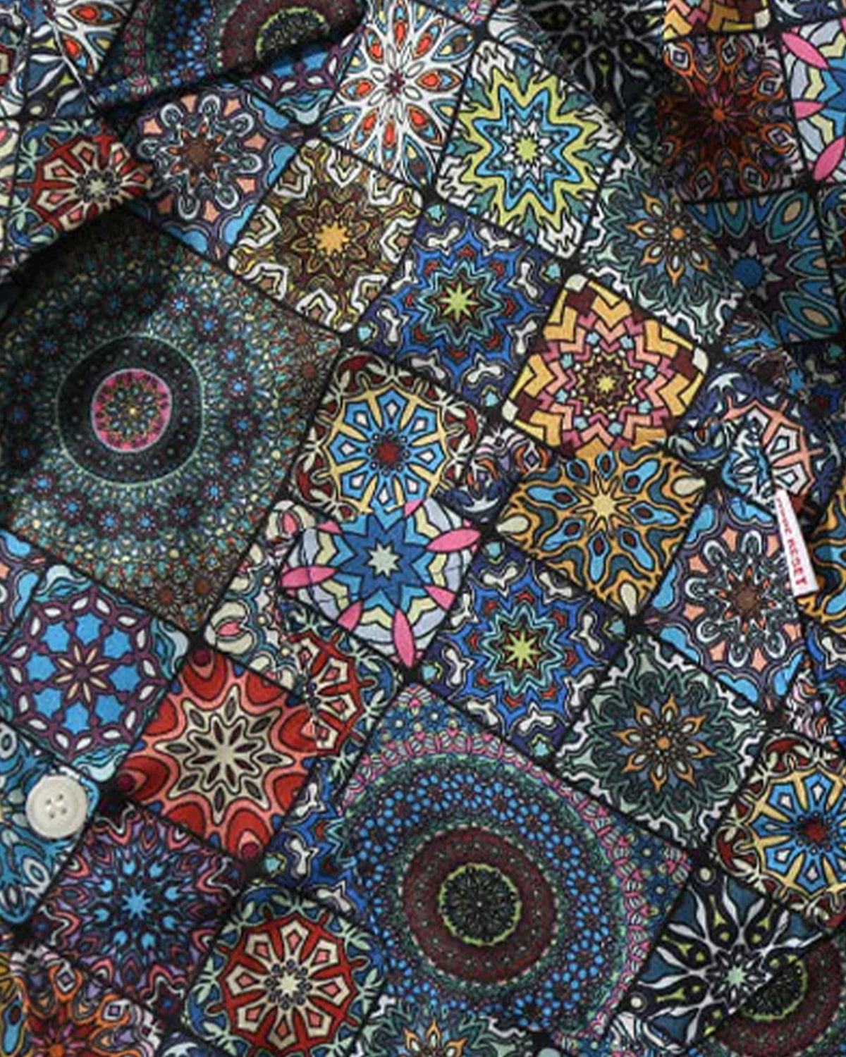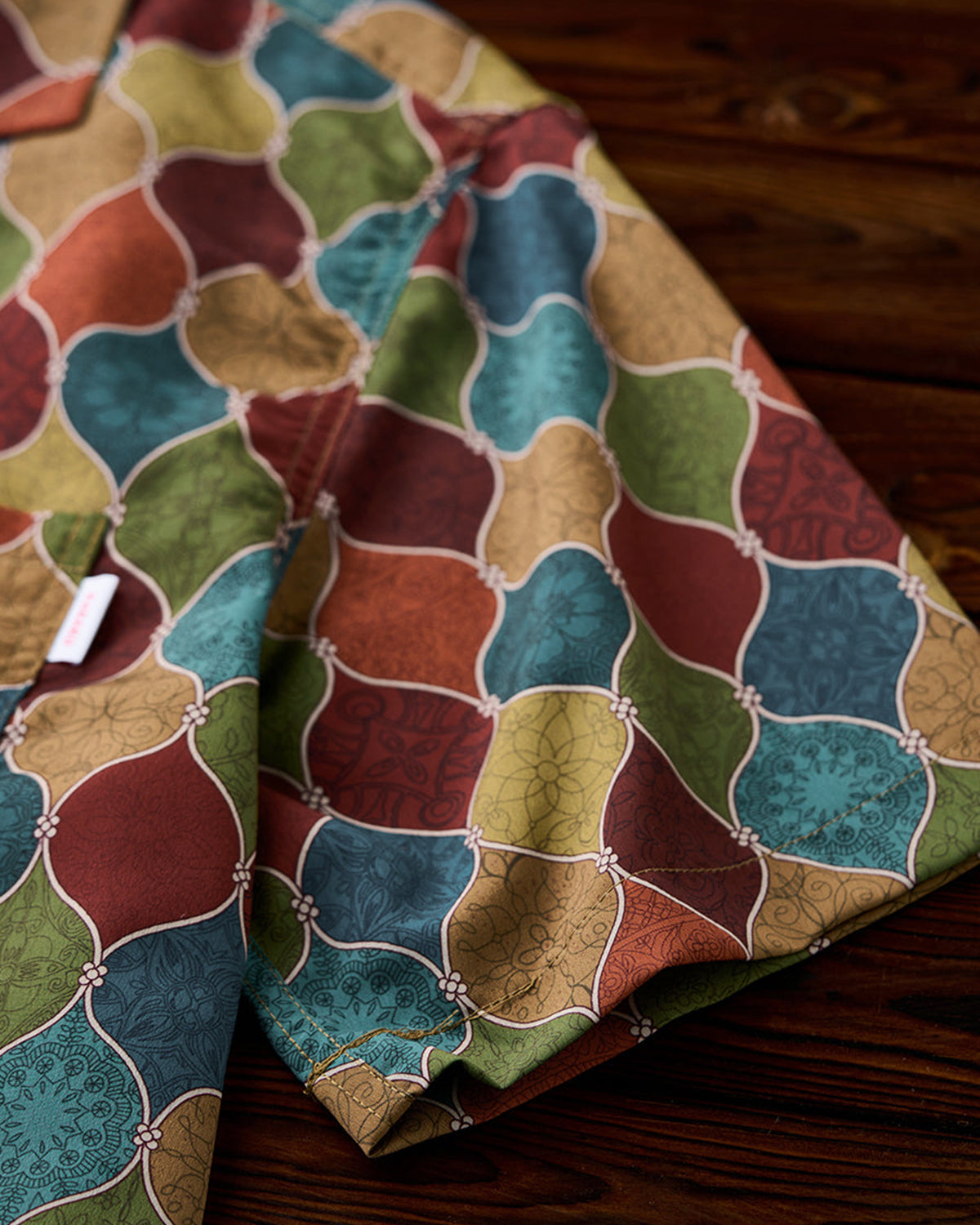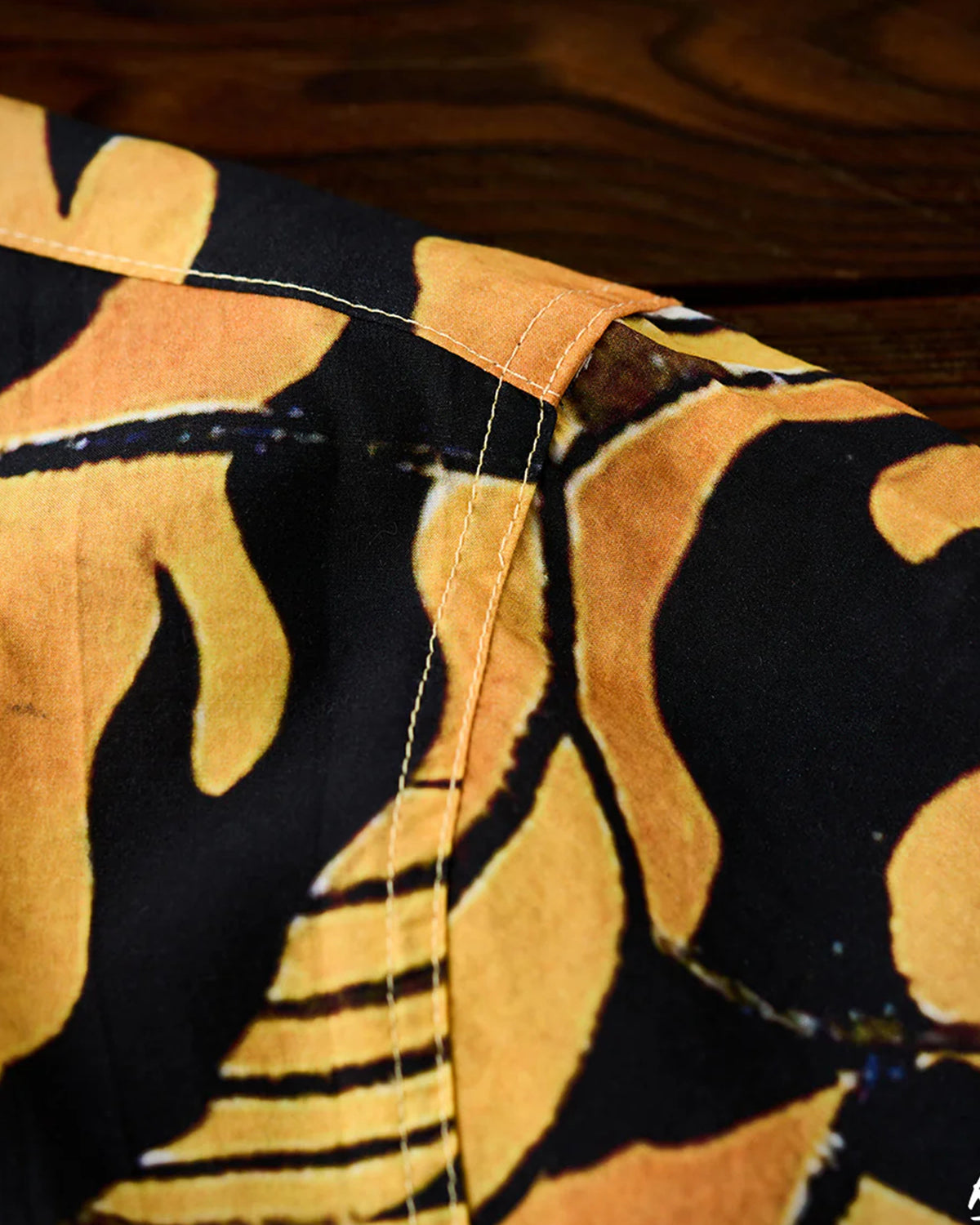 usually short-sleeved and made from printed fabric.Traditional men's aloha shirts are usually adorned with traditional Hawaiian quilt designs,tapa designs, and simple floral patterns in more muted colors.