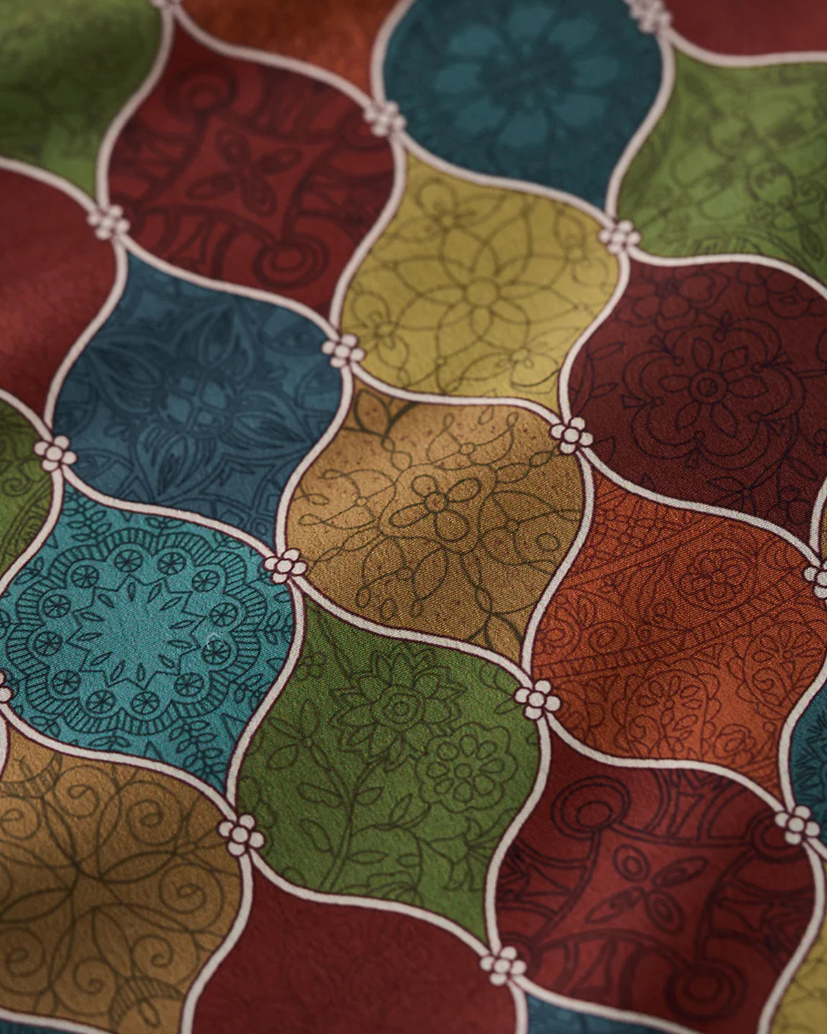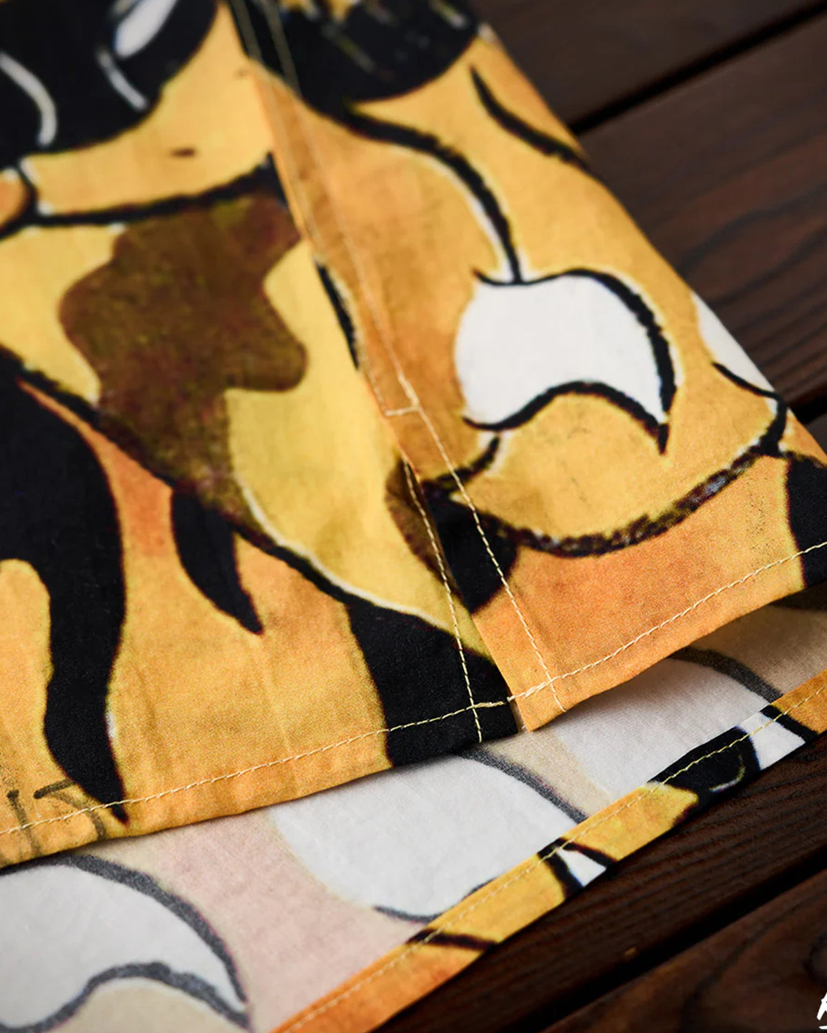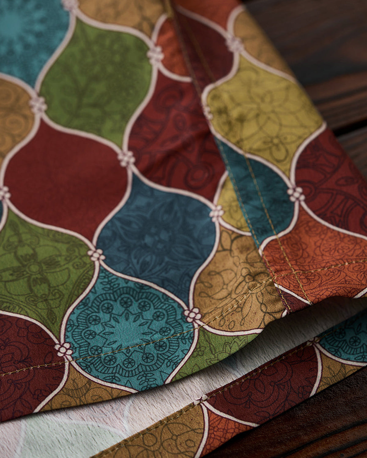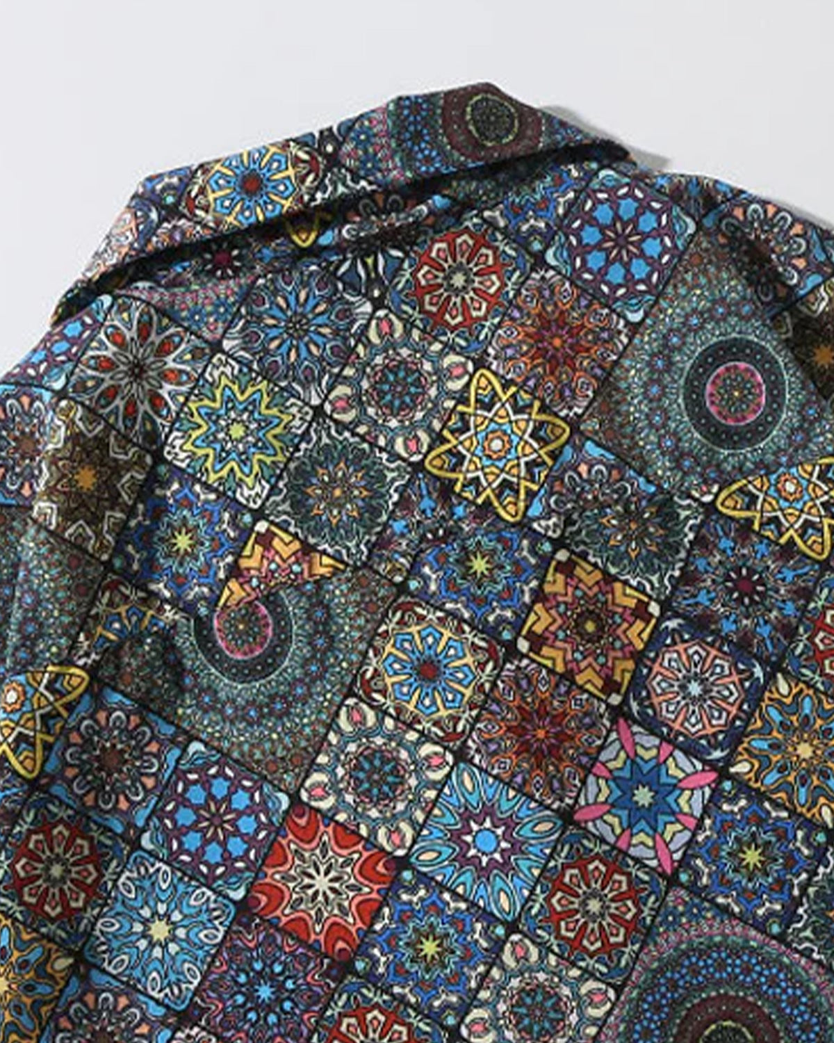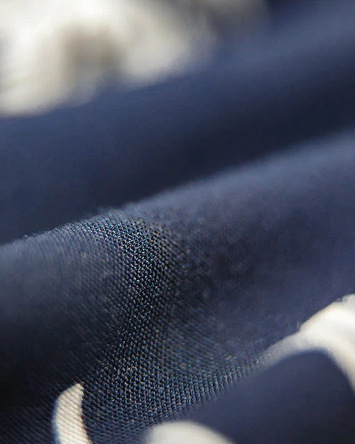 usually short-sleeved and made from printed fabric.Traditional men's aloha shirts are usually adorned with traditional Hawaiian quilt designs,tapa designs, and simple floral patterns in more muted colors.