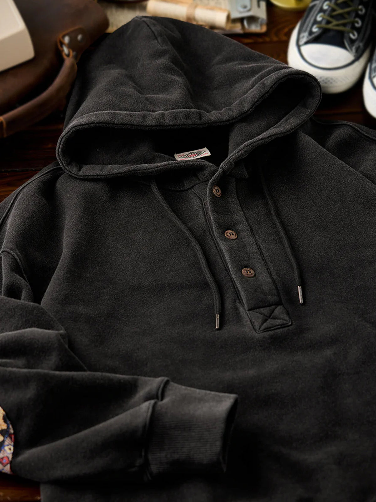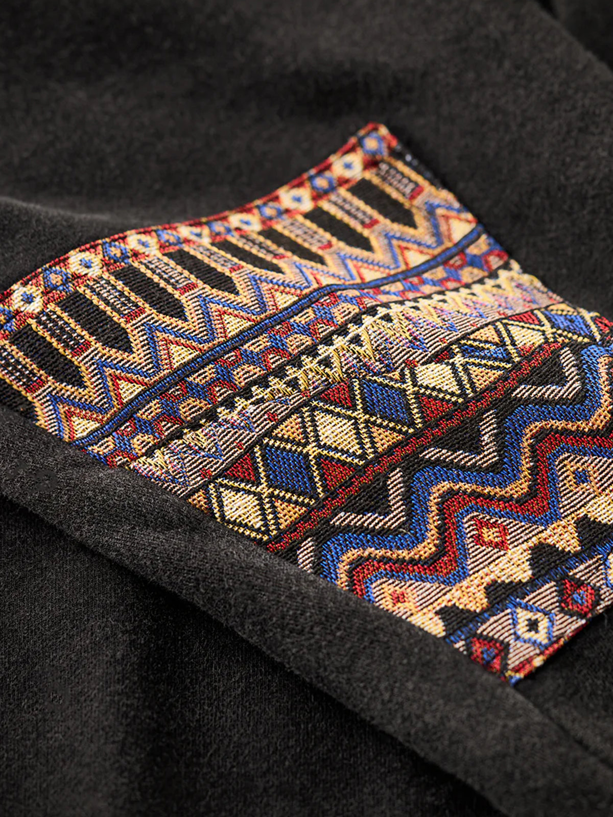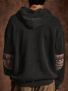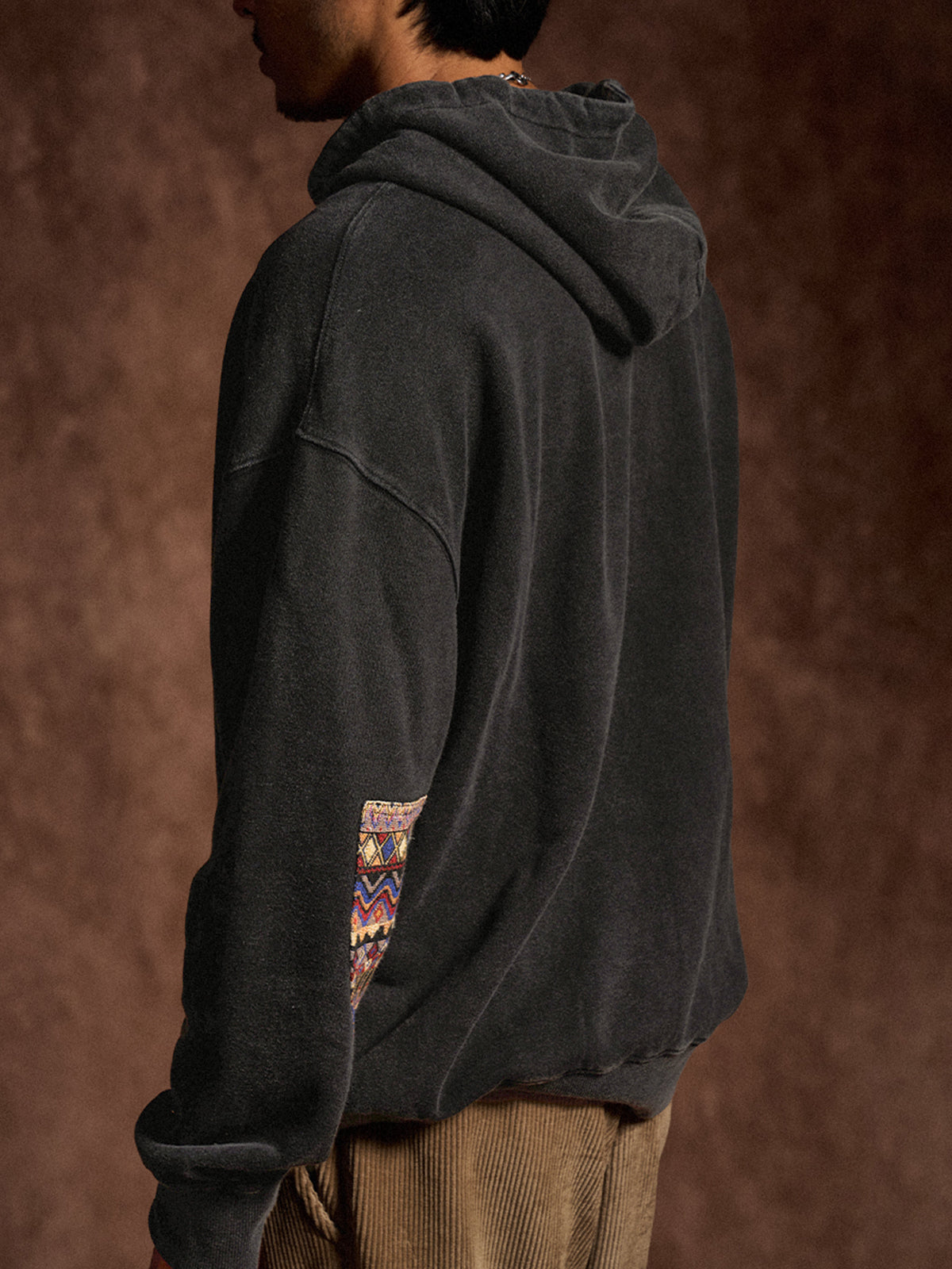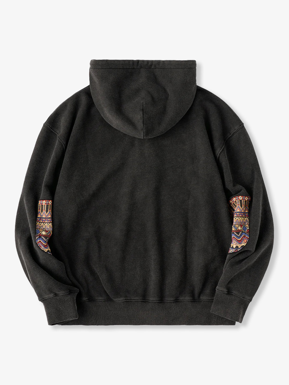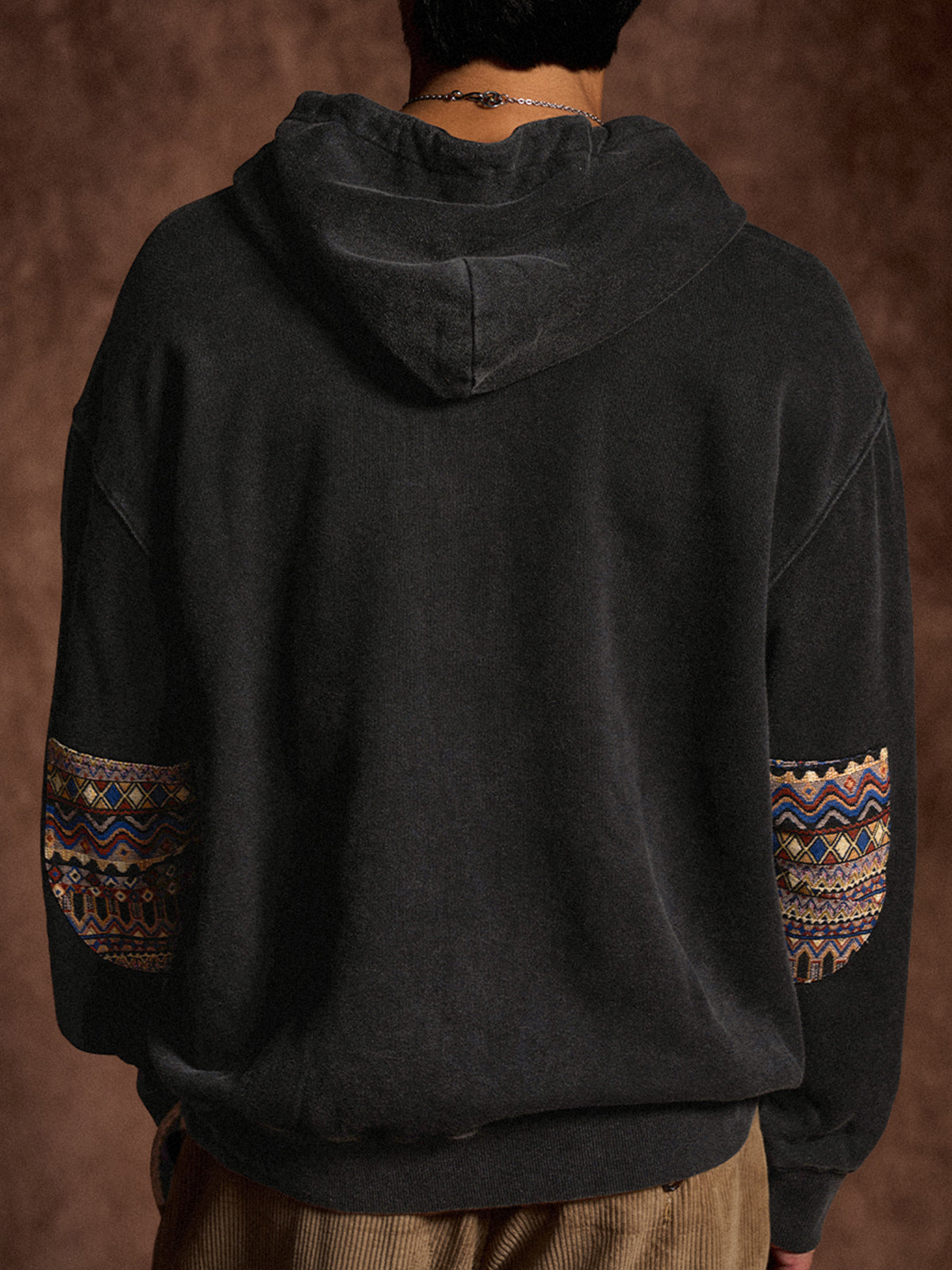 Ethnic Jacquard Patch Hoodie with 3-Button Pullover