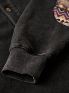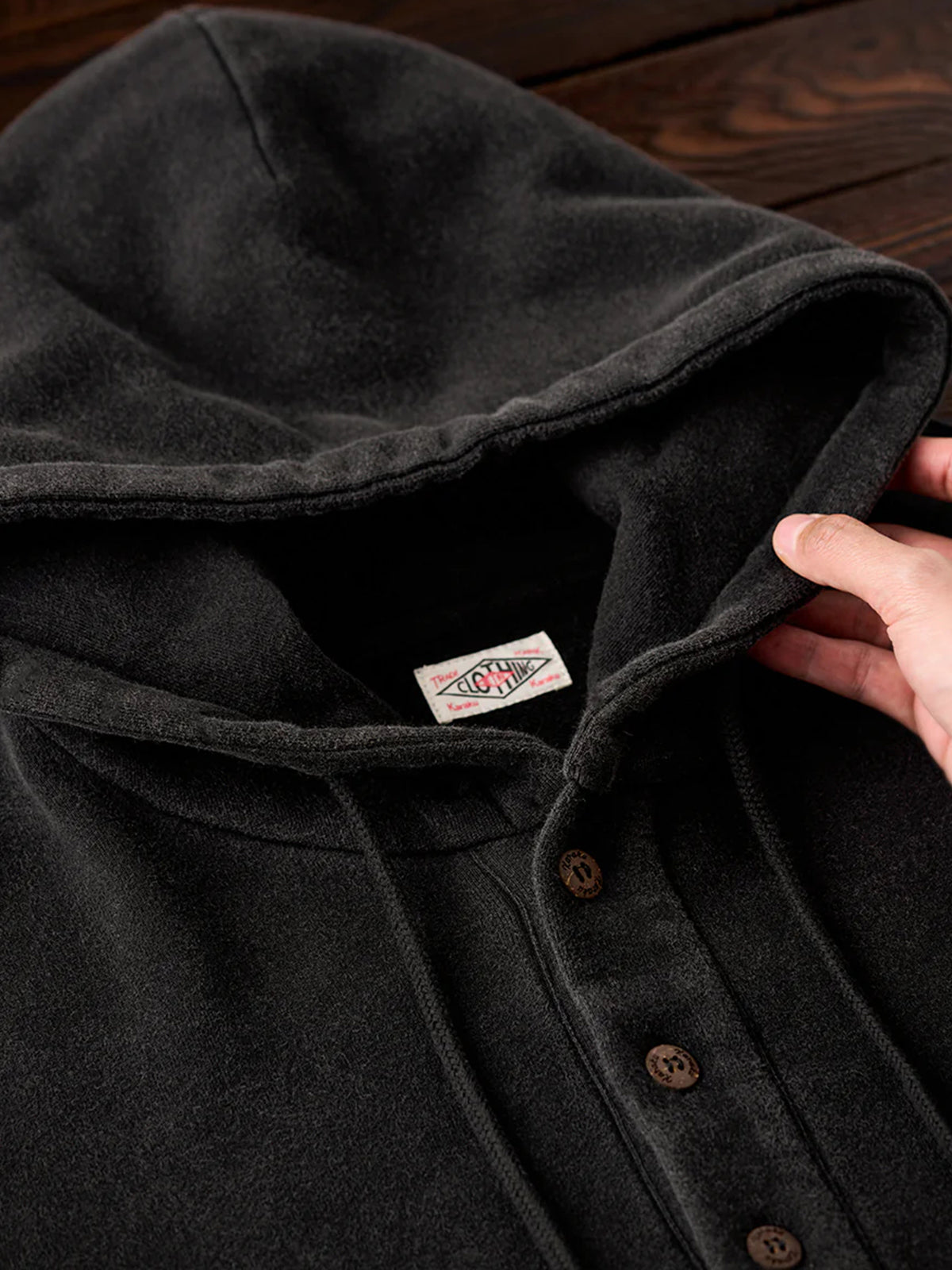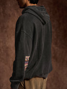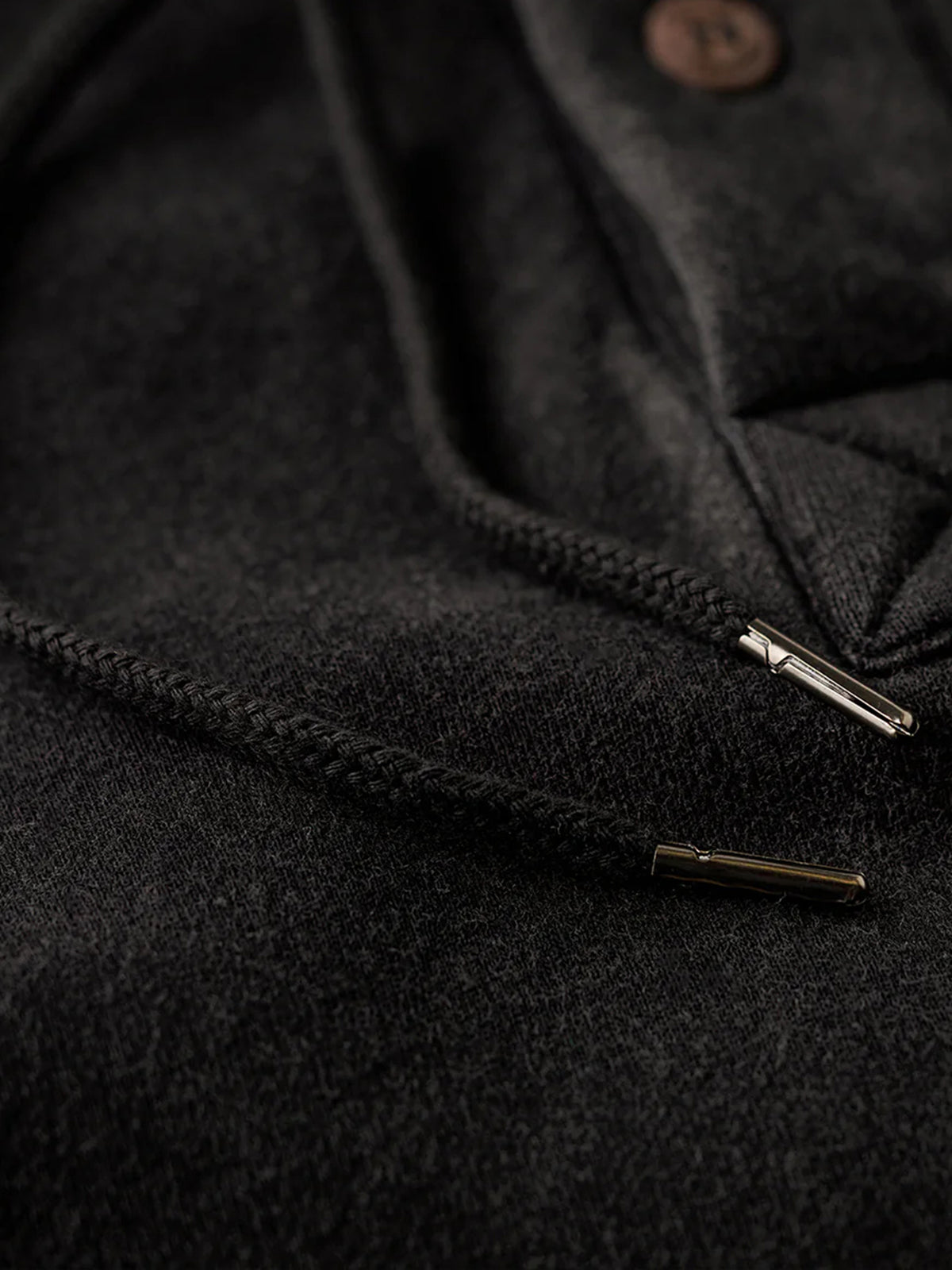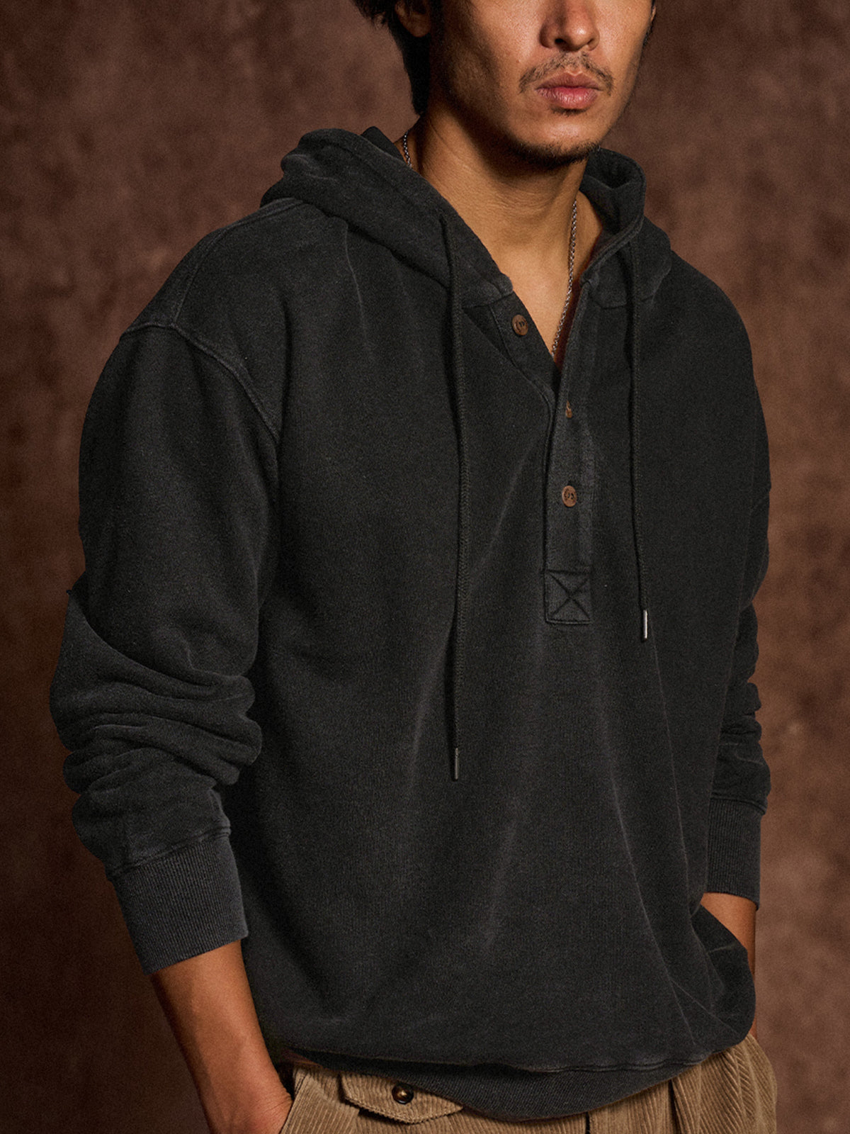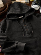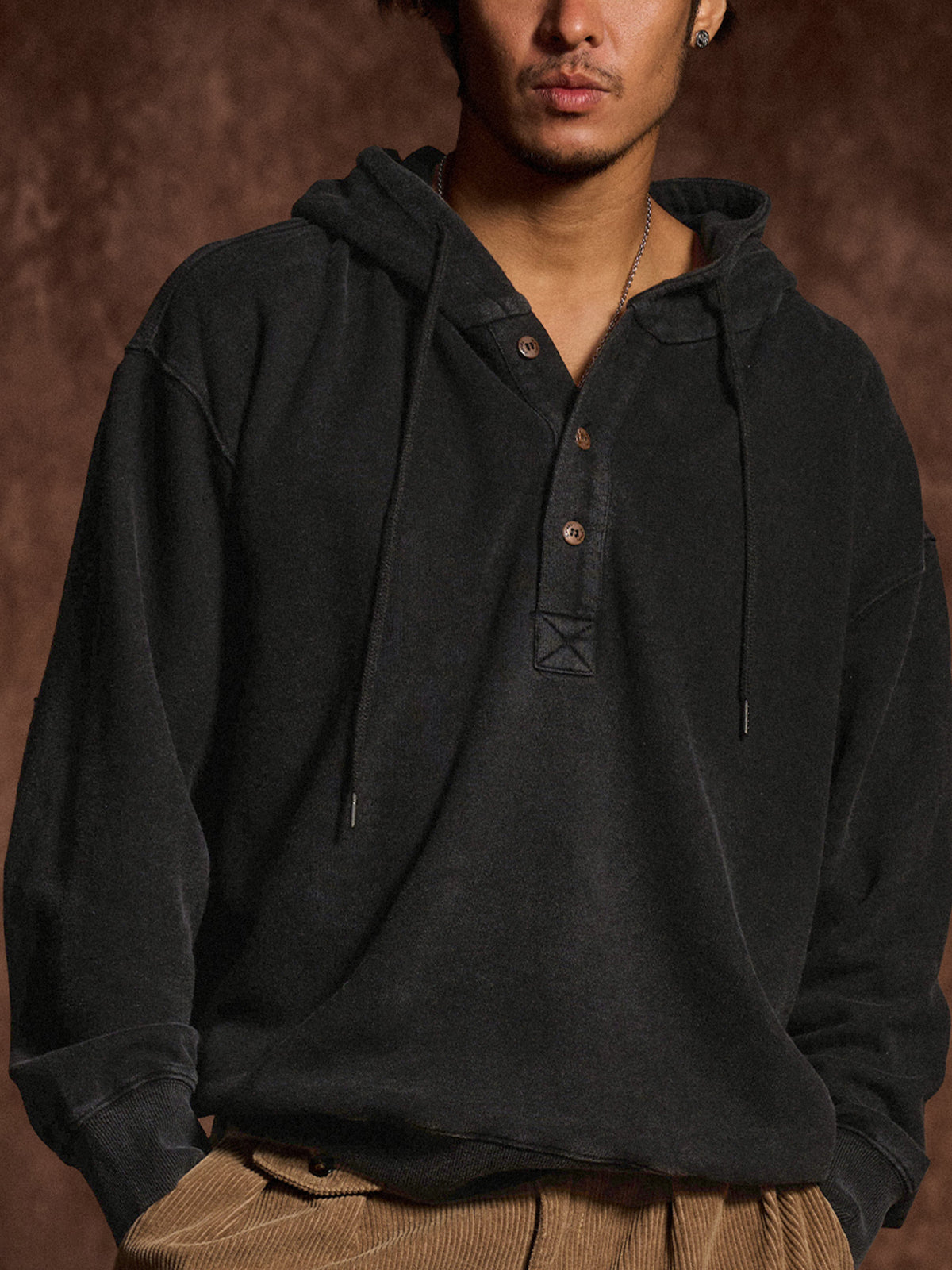 Ethnic Jacquard Patch Hoodie with 3-Button Pullover