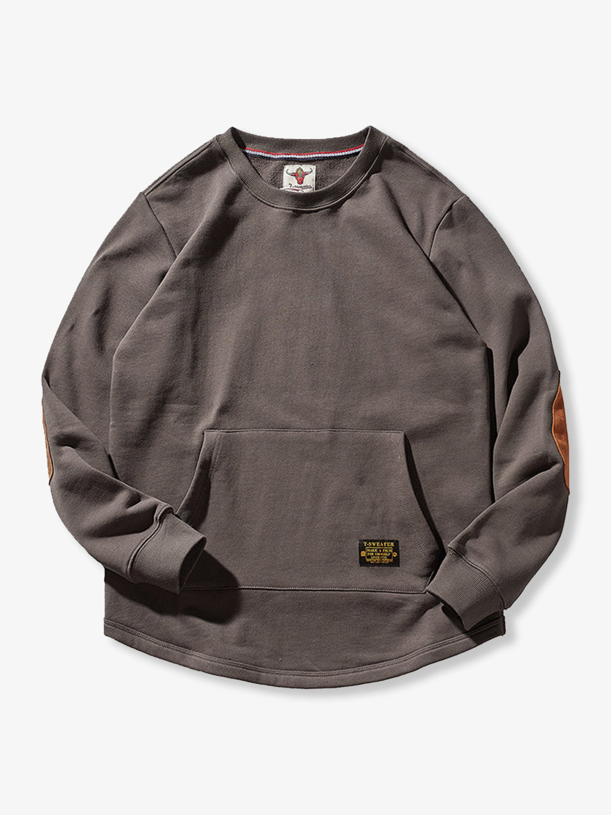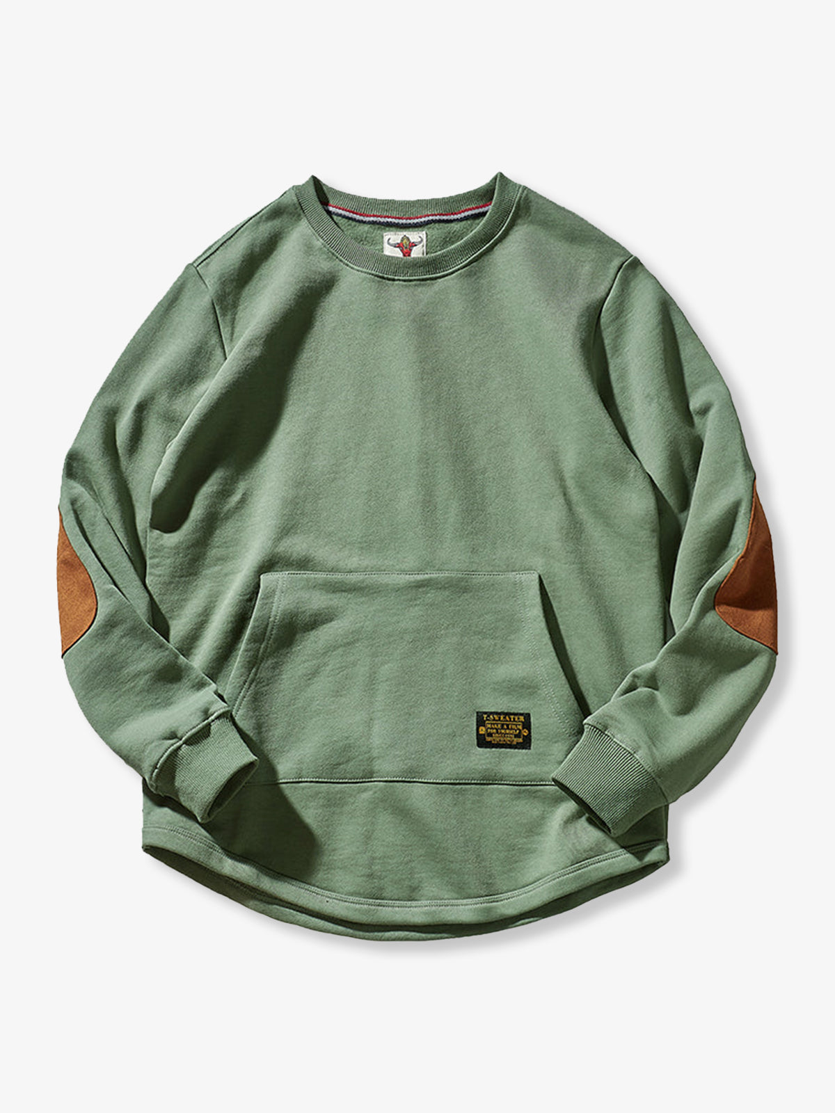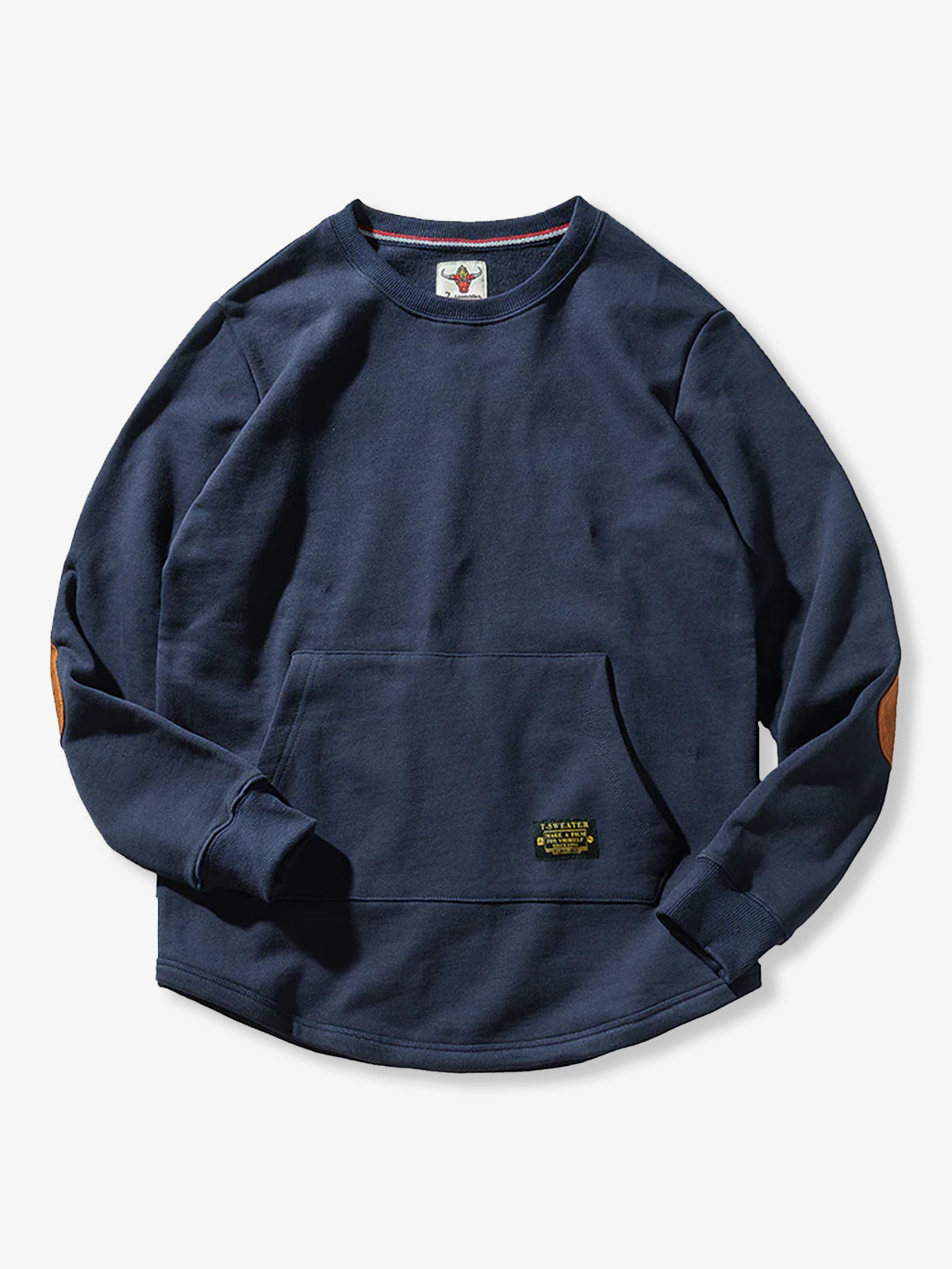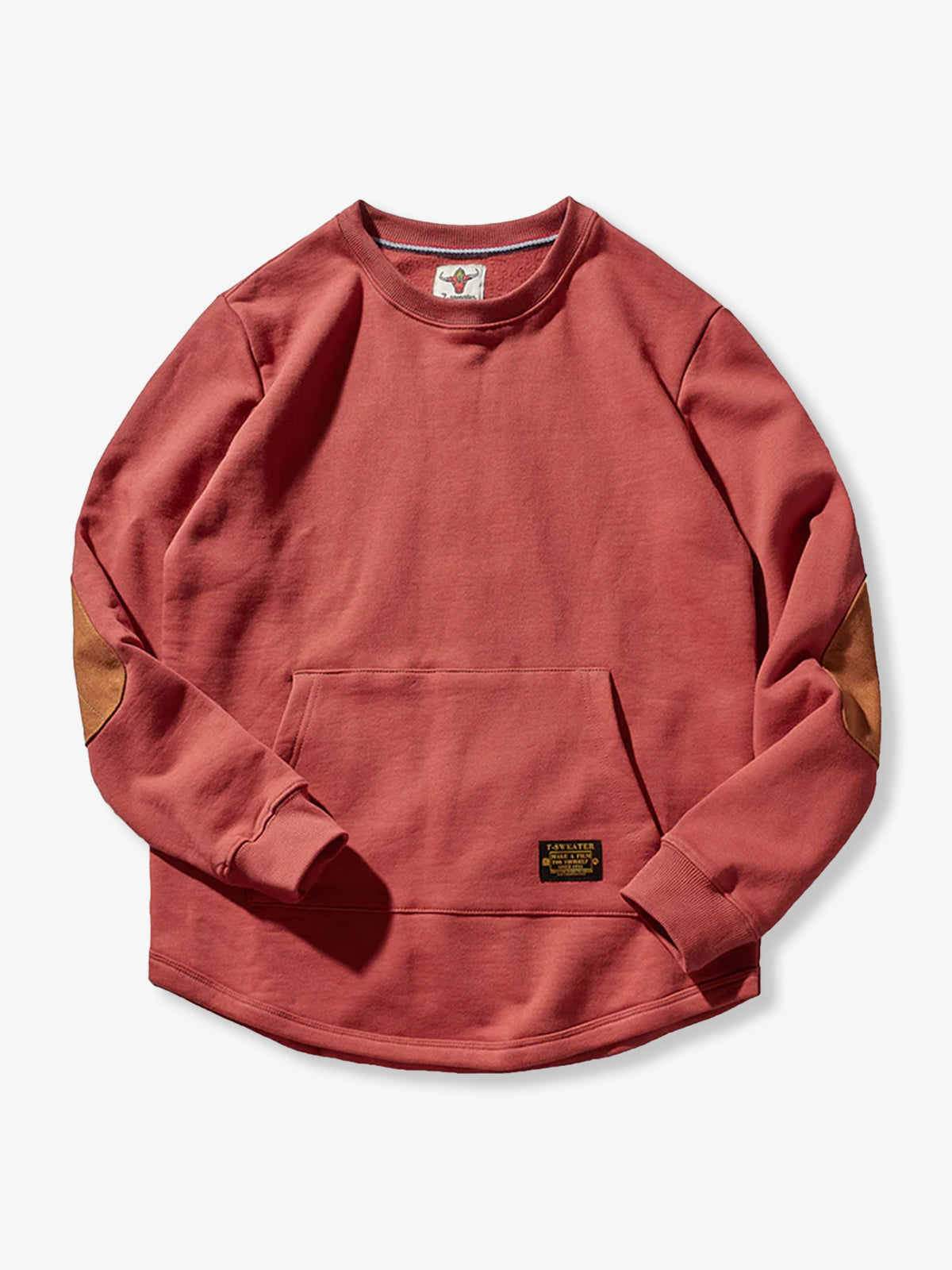 Heavyweight Crewneck Sweatshirt with Suede Elbow Patches and Loop-Back Lining
