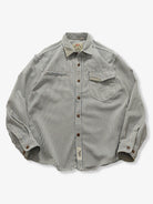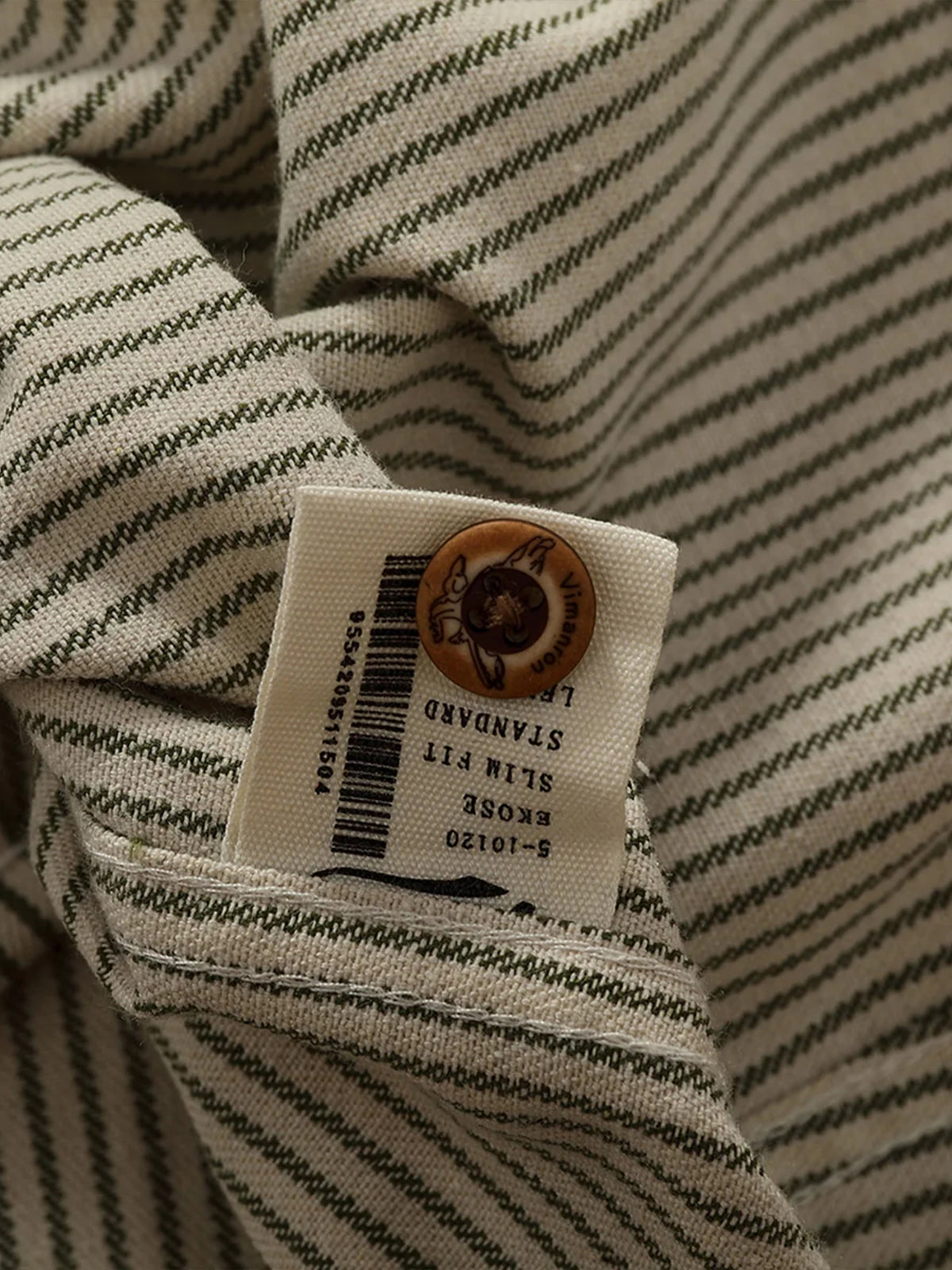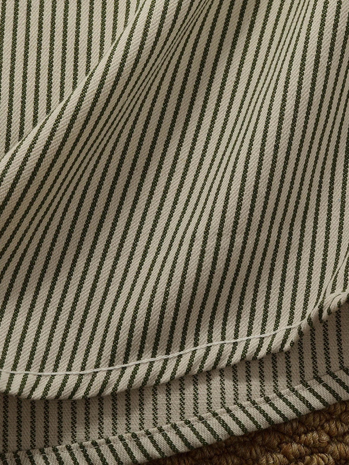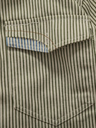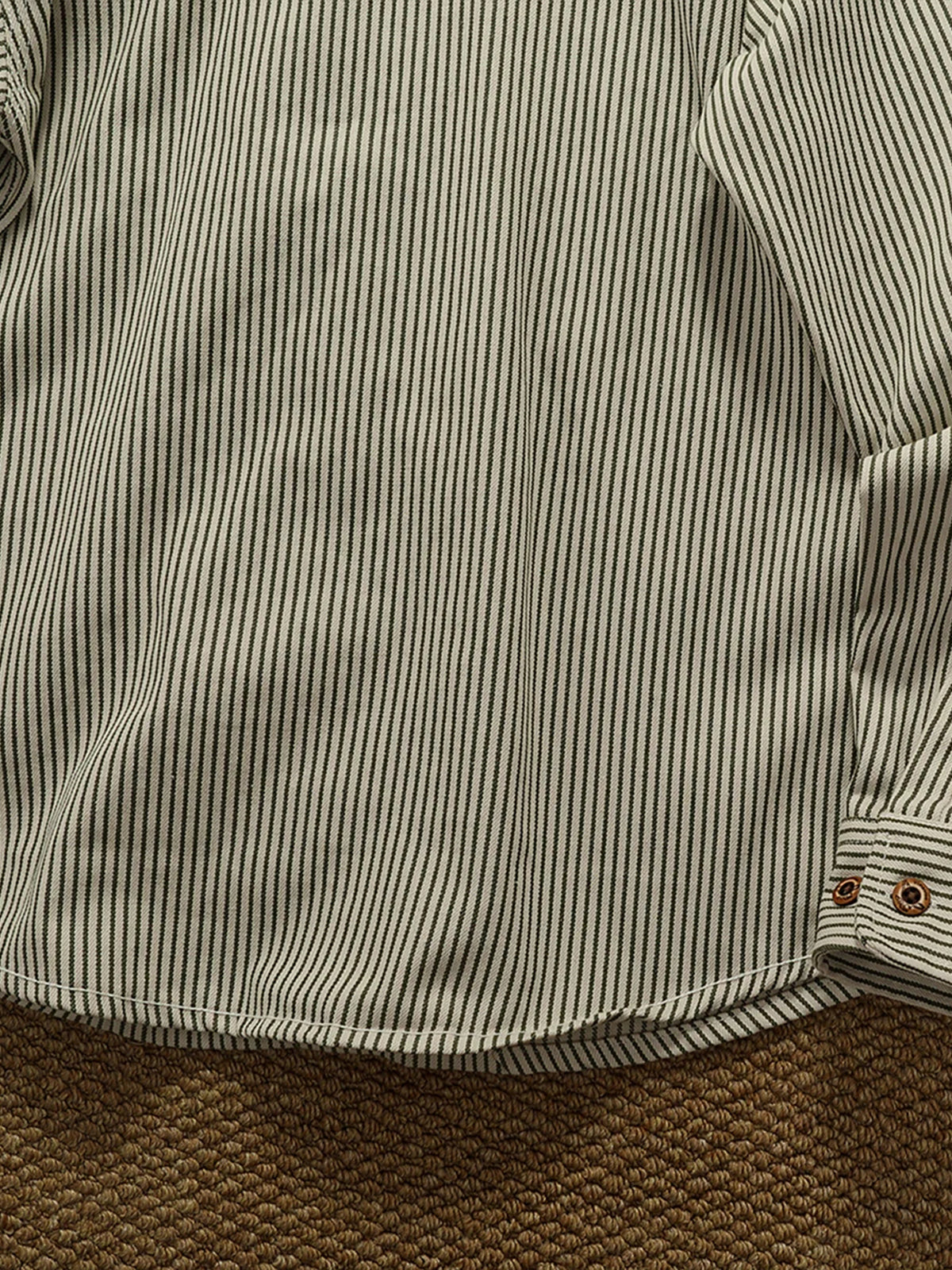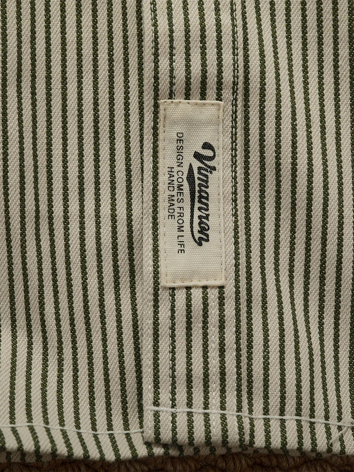 A work shirt with a reconstructed design that uses classical hickory stripes as the base, with the collar, pockets, and cuffs switched to contrasting colors. The combination of different elements creates an imbalance that, on the contrary, produces a fresh sense of balance. While carrying a vintage atmosphere, it also has playfulness and design not found in conventional work shirts, updating your coordination just by wearing it. This is a modern reconstructed work shirt that allows you to enjoy everyday outfits as fashion.