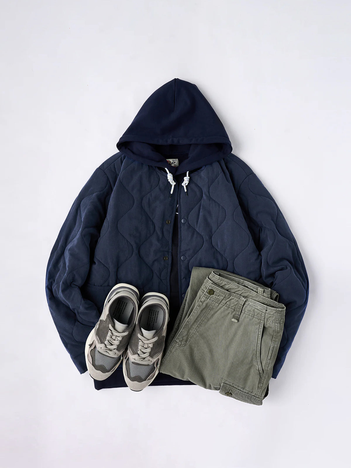 The liner jacket draws inspiration from the iconic M-65 Field Jacket, officially adopted in 1965. Enhanced for modern wear, this quilted liner offers excellent insulation. Crafted from durable fabric and warm cotton fill, it provides a cozy feel, making it an essential piece for layering during the autumn and winter seasons. Ideal for both casual outings and outdoor adventures.