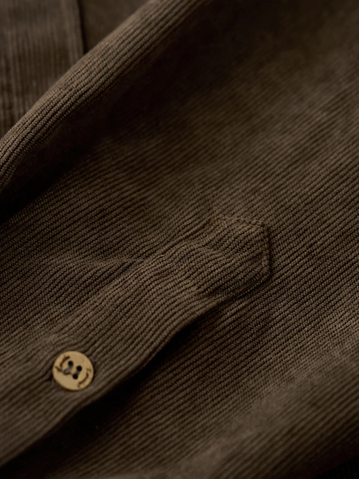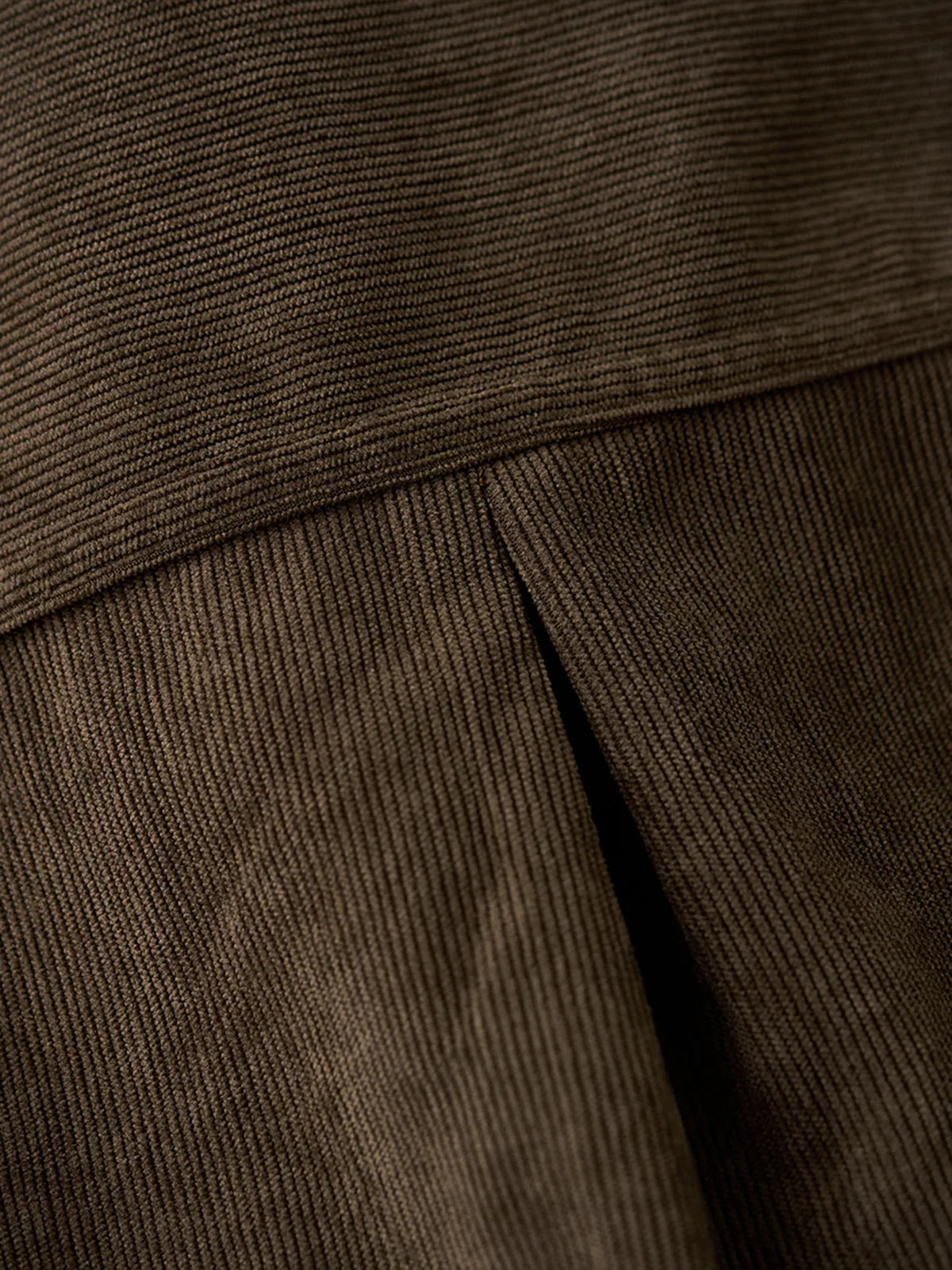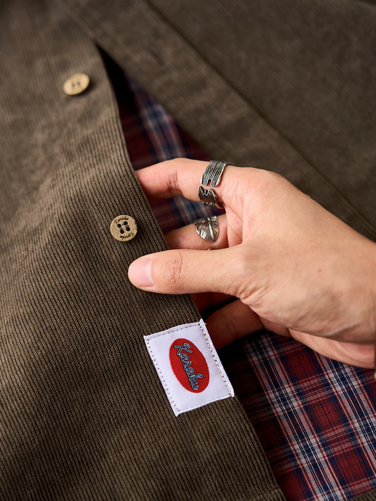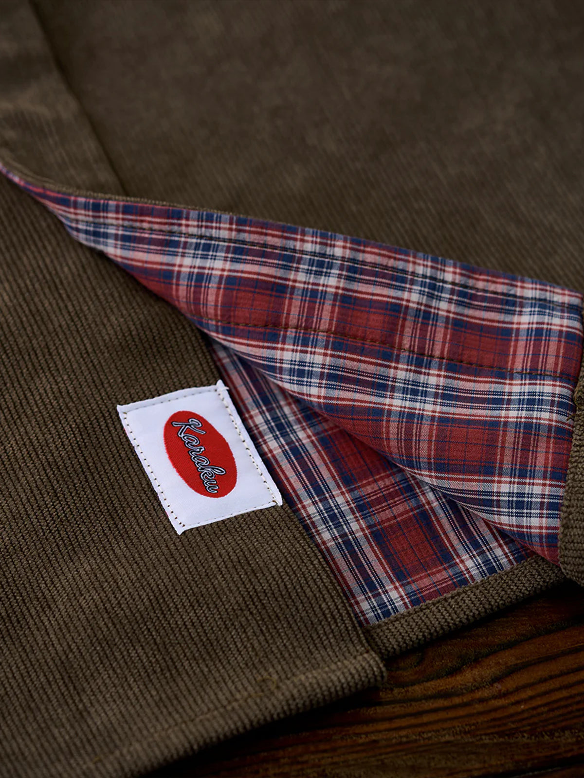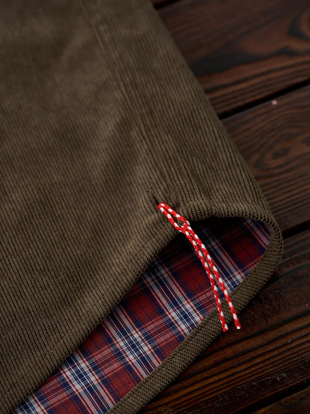 Fine-Wale Corduroy Shirt with Tartan Check Lining & Red Hem Drawcord