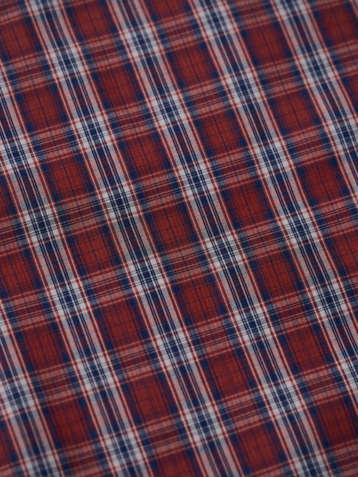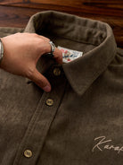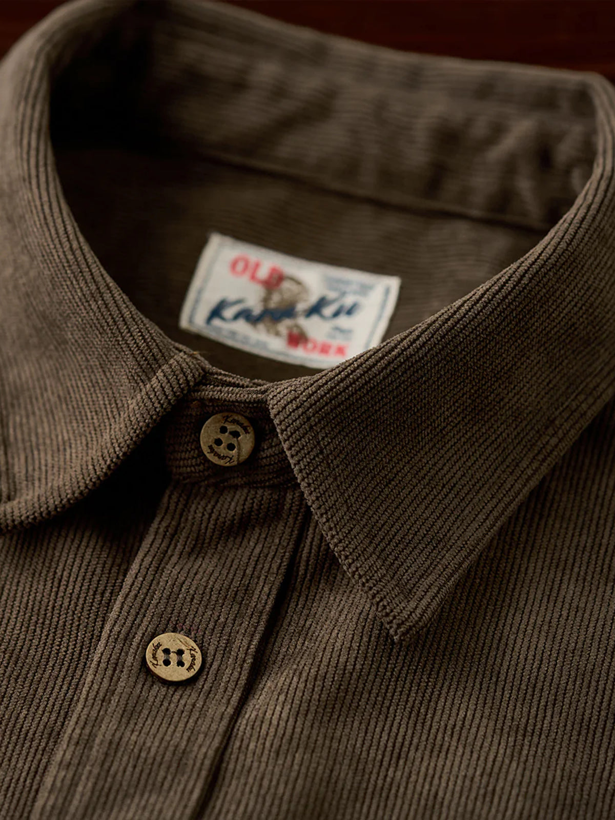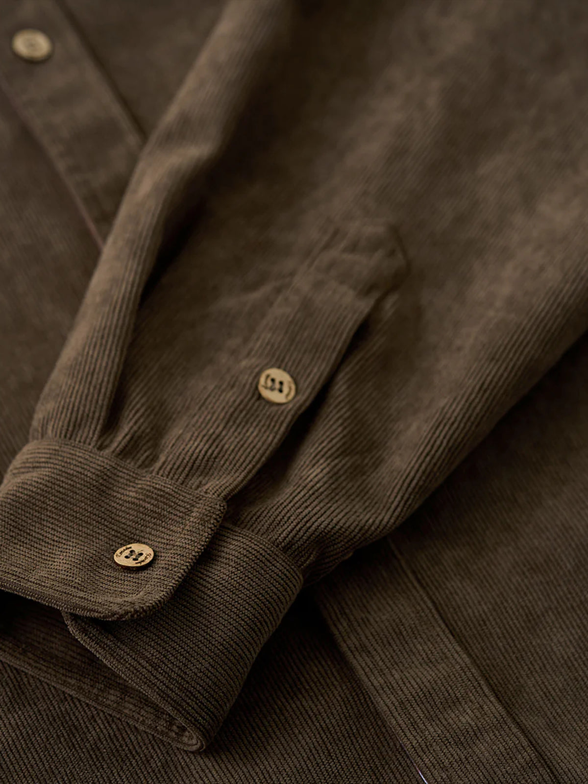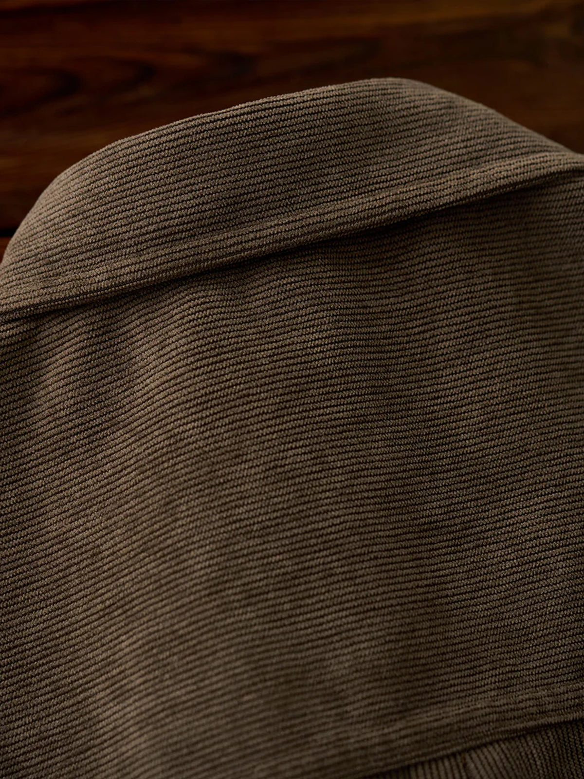 Fine-Wale Corduroy Shirt with Tartan Check Lining & Red Hem Drawcord