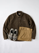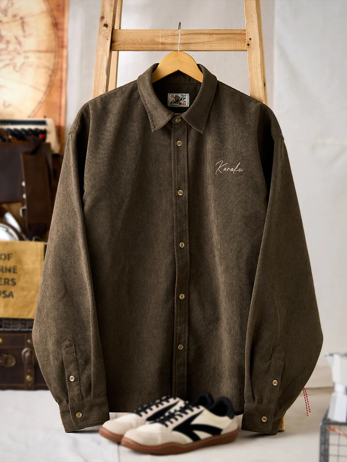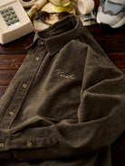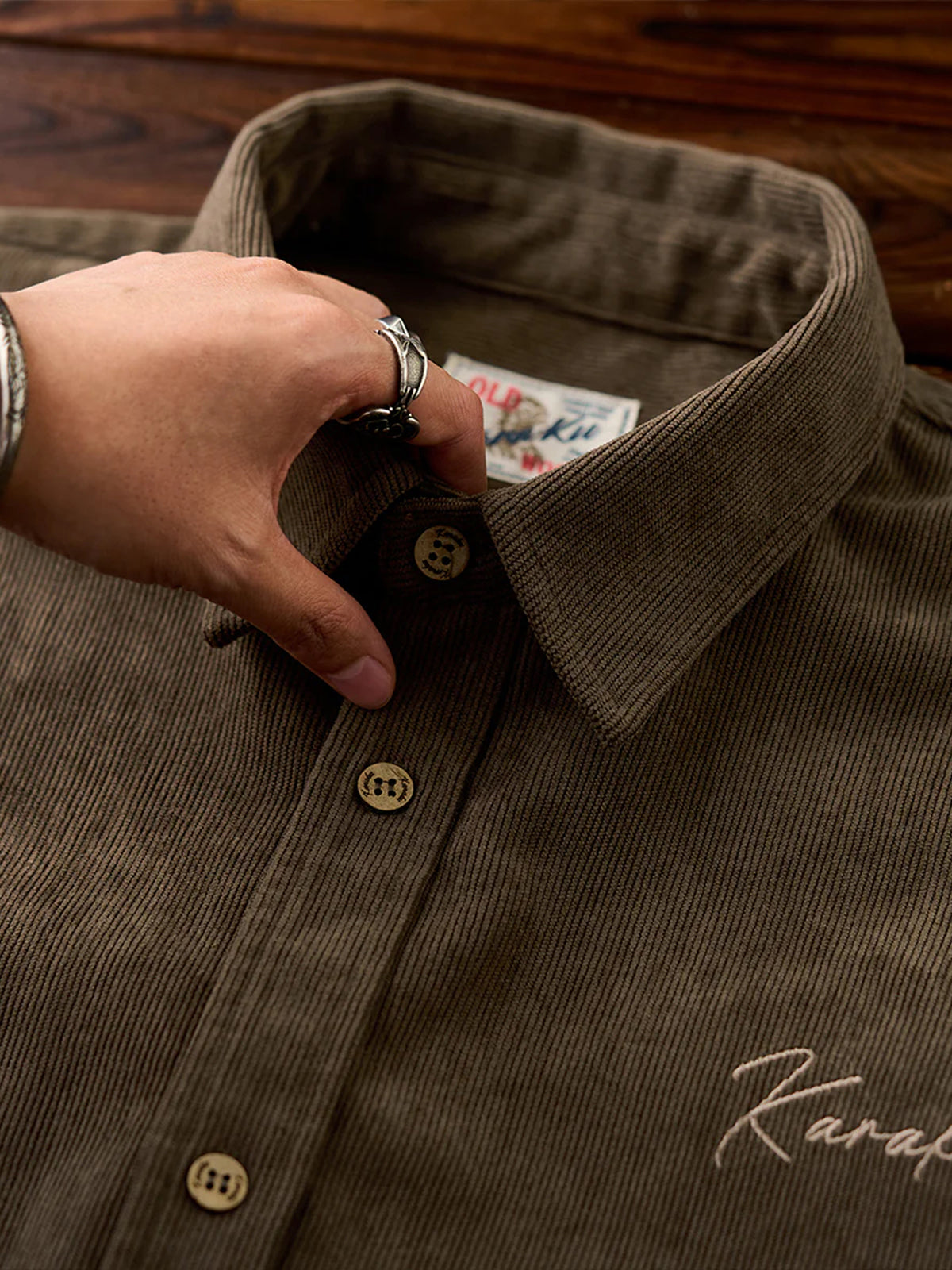 Crafted from richly textured fine-wale corduroy, this shirt brings a warm, seasonal feel perfect for autumn and winter. The inside is lined with a classic tartan check pattern, offering a charming contrast when cuffs are rolled up or when it catches the breeze—subtle yet distinctive. A red drawcord at the hem not only lets you adjust the fit but also adds a pop of color and individuality to the look. Wear it open like a light jacket or buttoned as a standalone shirt—ideal for American casual and workwear-inspired fall outfits.