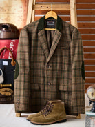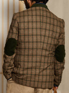 Wool Blend Check Tailored Jacket with Corduroy Collar & Elbow Patches
