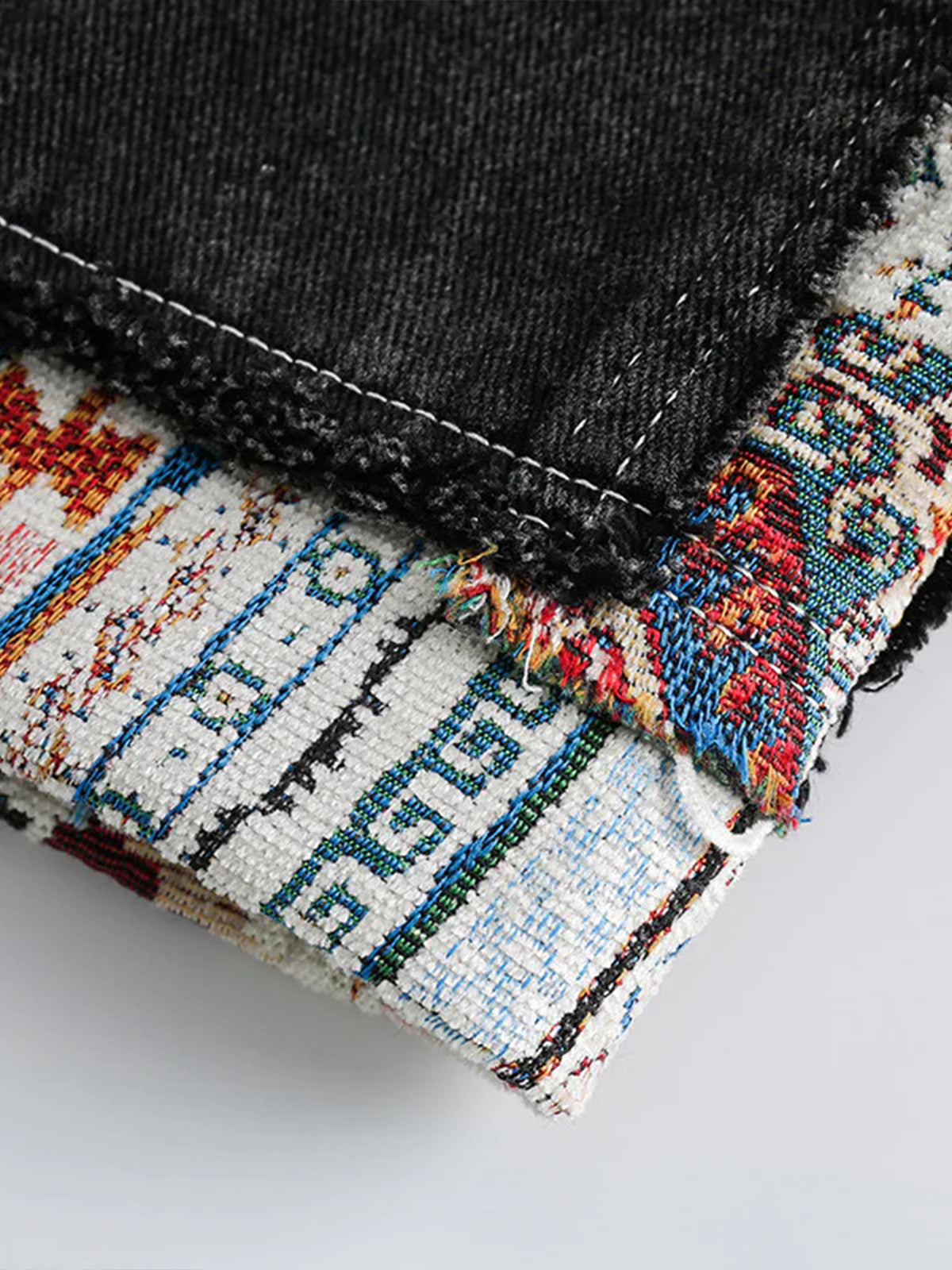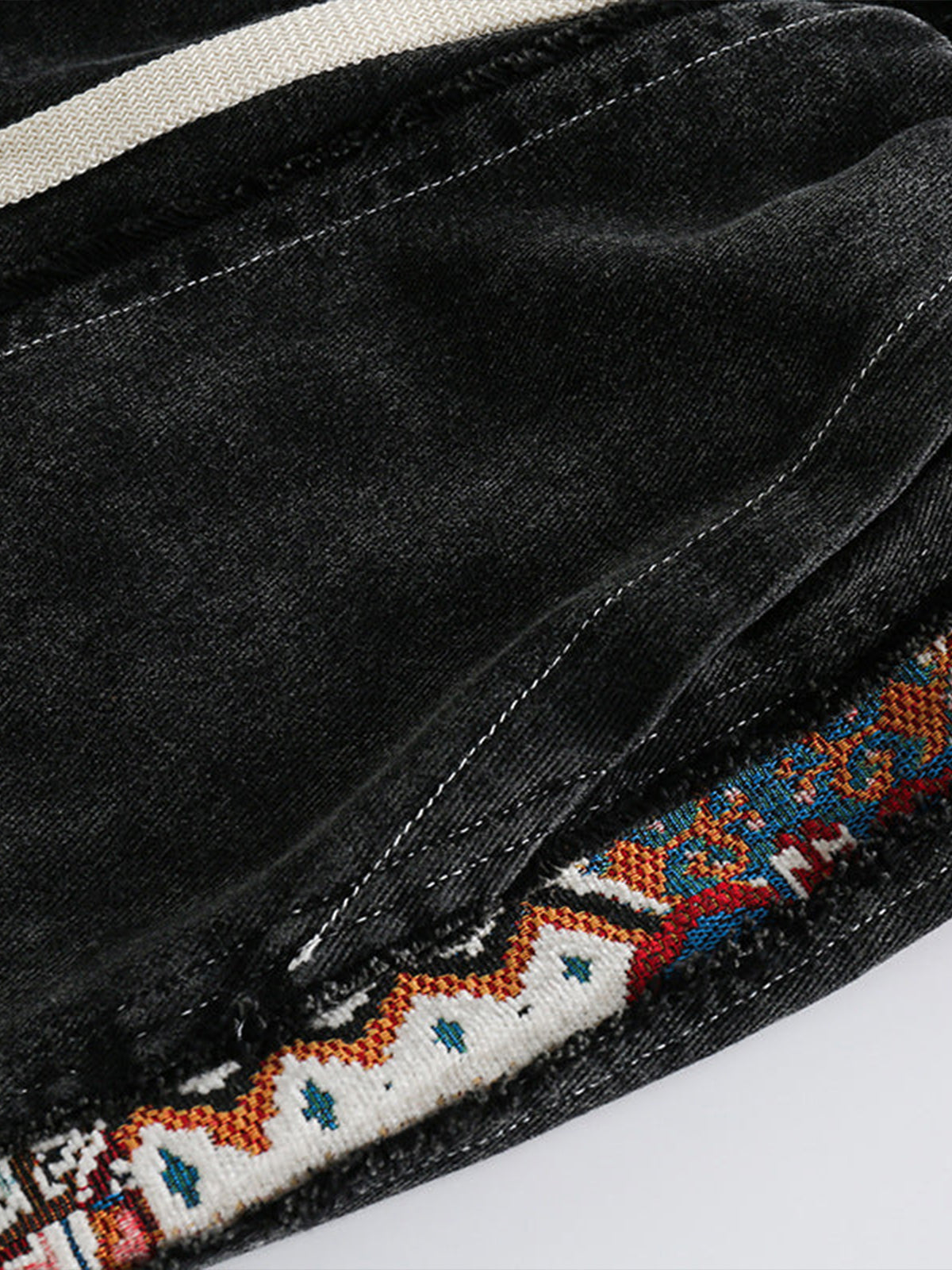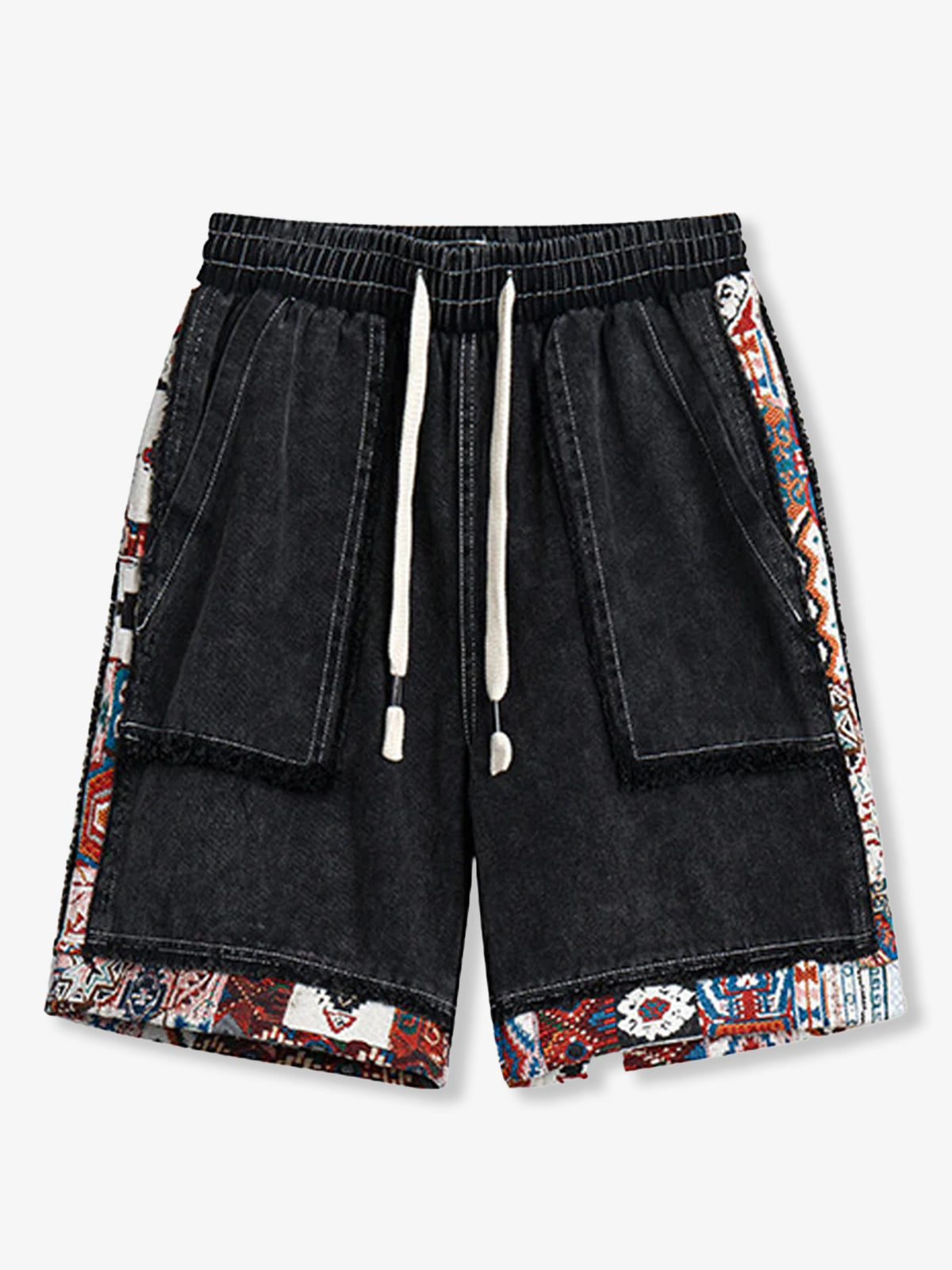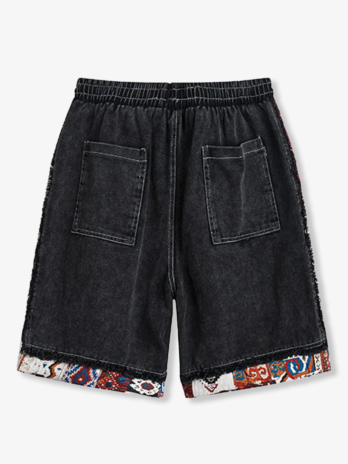 Ethnic Jacquard Panel Denim Shorts
