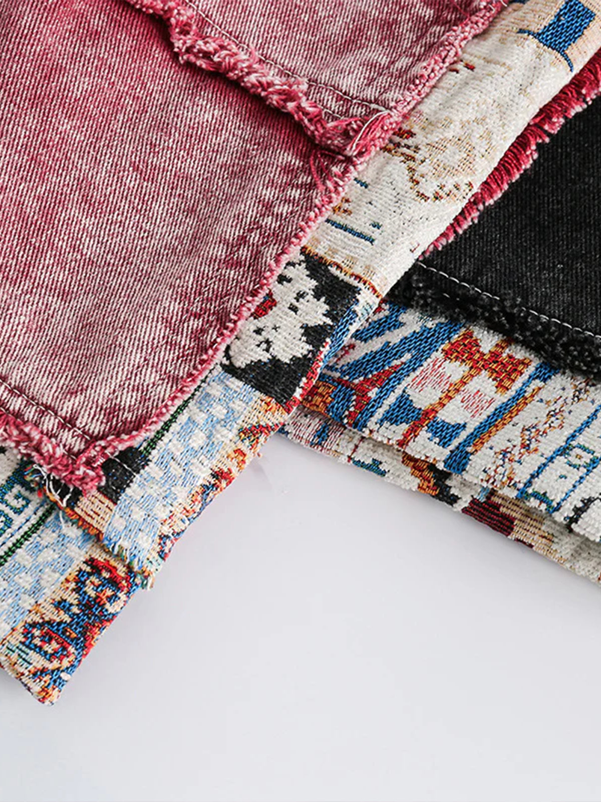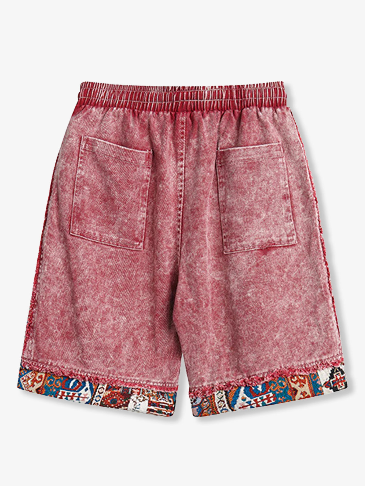 It is a classic pair of shorts with an American outfit. Fresh pink denim shorts are now available, and you can make those around you stand out just by wearing them! Excellent presence! The washed finish and pink body color full of old clothes-like distressed feeling are eye-catching, and the most eye-catching thing is the patchwork of ethnic jacquard patterns, and the unique taste with a sense of imitation yard is attractive.
