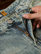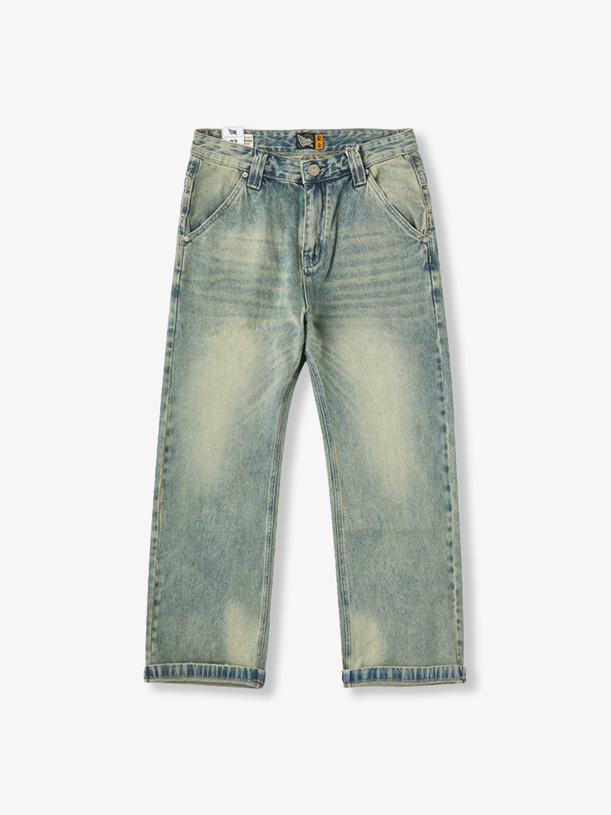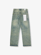 These straight-leg jeans feature a clean silhouette with subtle distressed and vintage-style detailing at the hem for a worn-in look. The washed finish adds depth and a natural fade, creating the feel of long-loved denim. Made from soft, mid-weight cotton denim, they offer a comfortable, broken-in feel that only gets better with wear. Versatile and easy to style, they pair effortlessly with oversized tees, sneakers, or even leather shoes for a casual or street-inspired outfit.