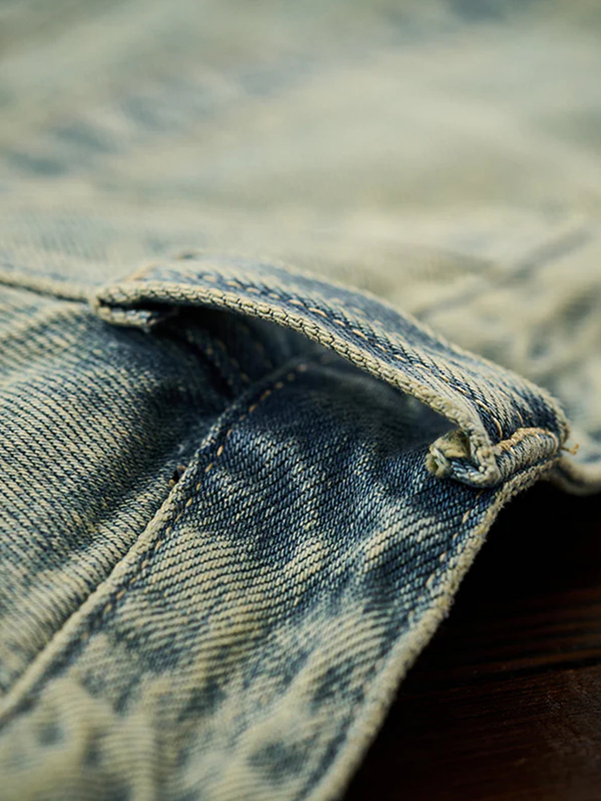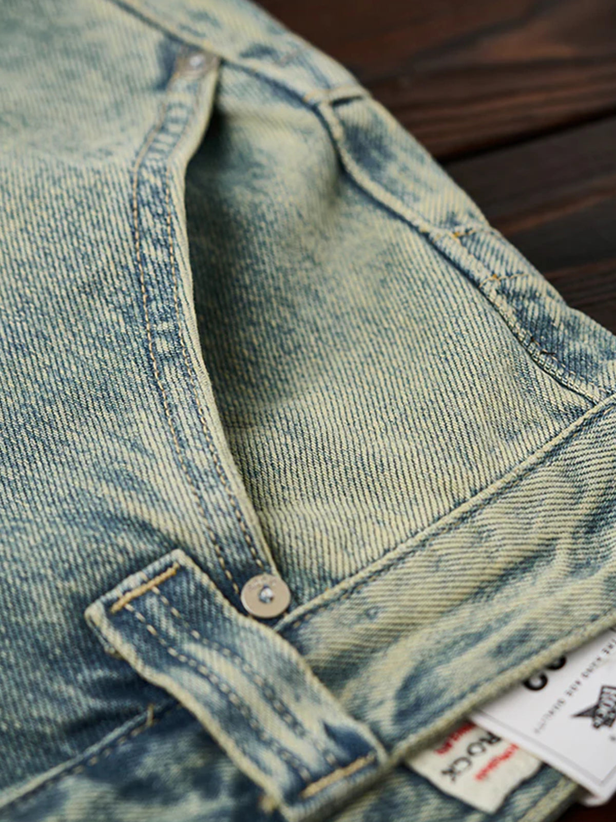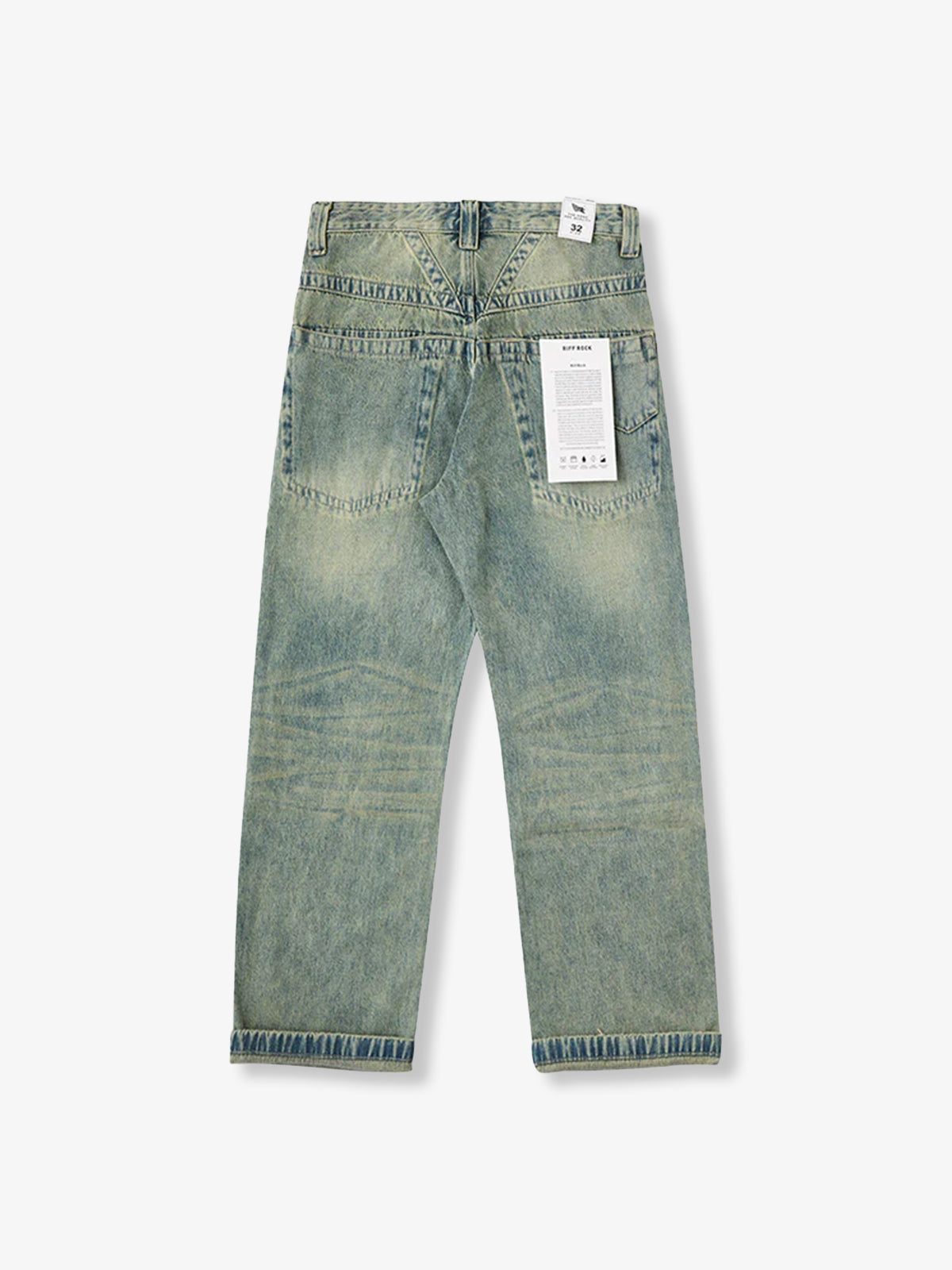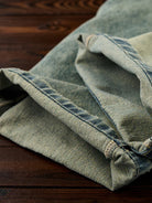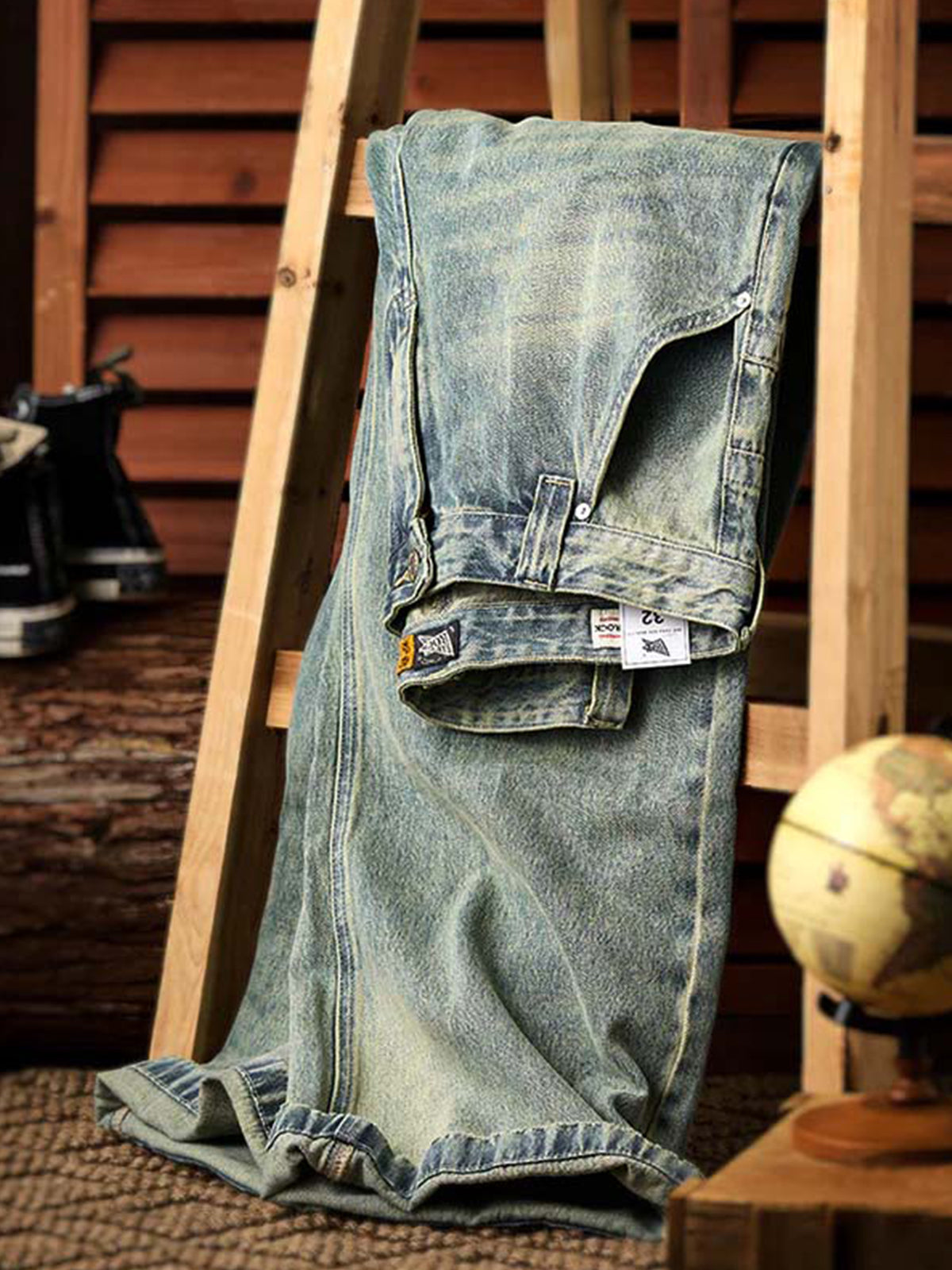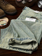 Washed Straight-Leg Denim Pants with Distressed Hems and Vintage Finish