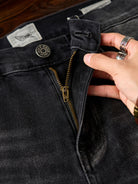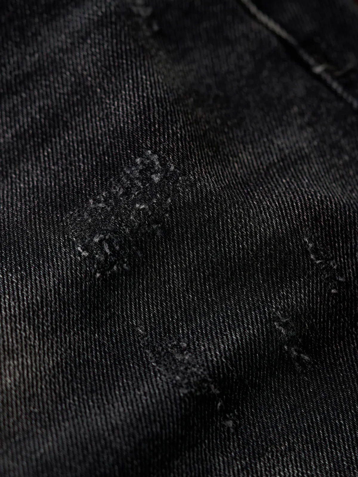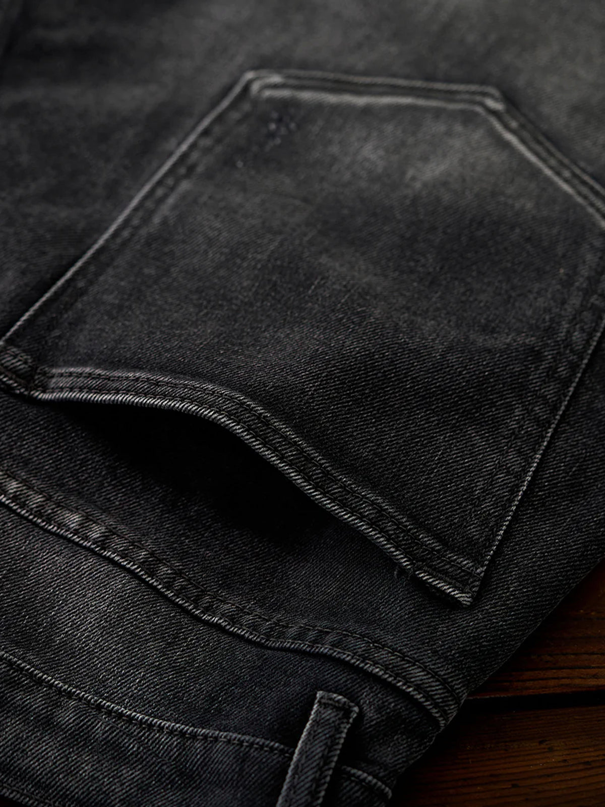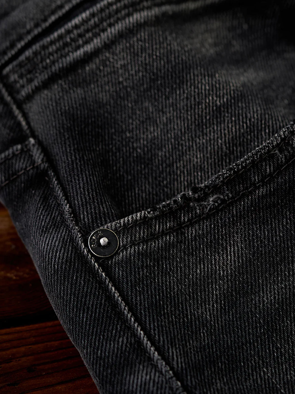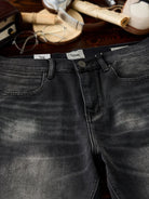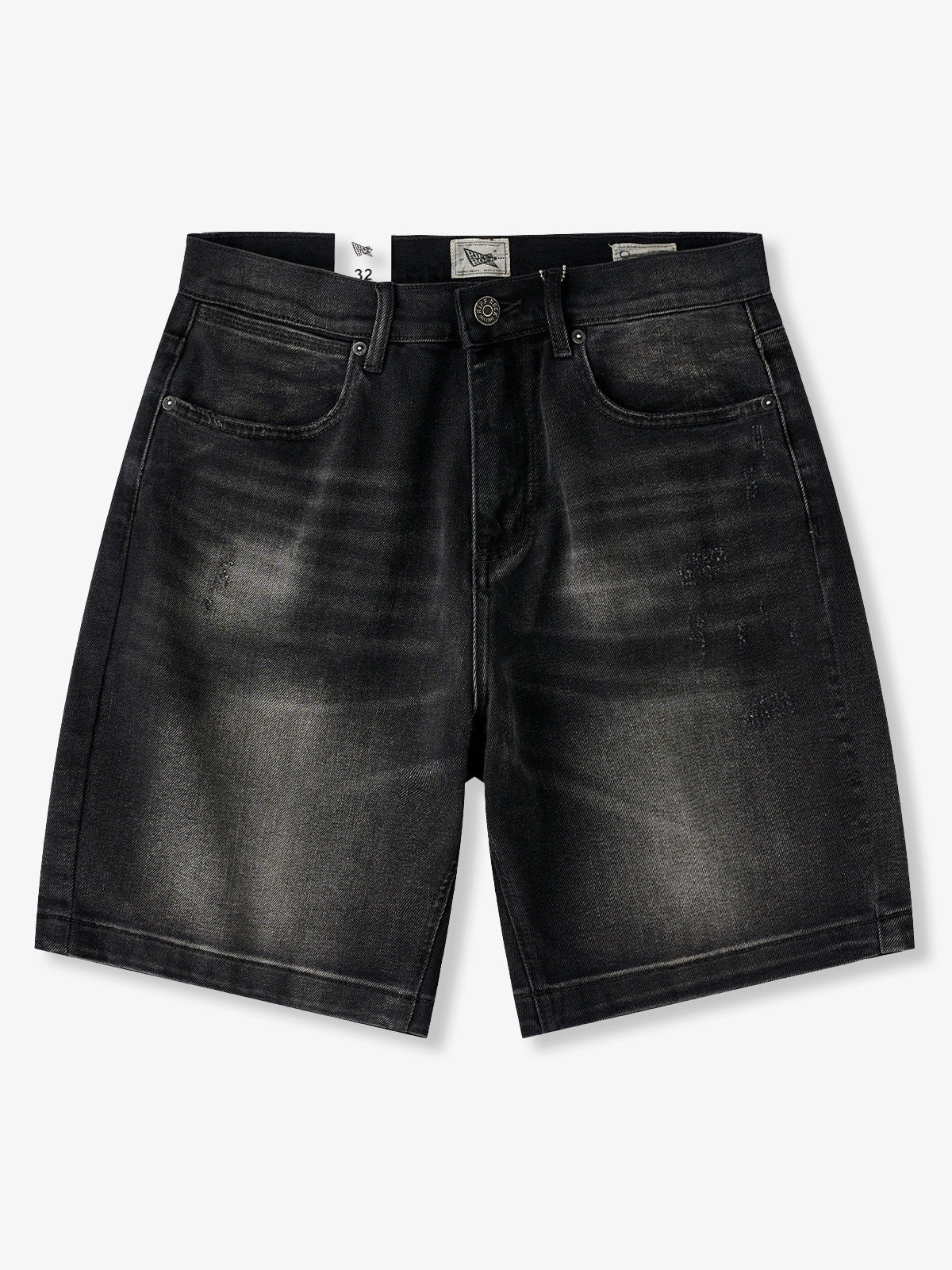 This pair of shorts features a metal YKK zipper for smooth operation and excellent durability. Vintage-style engraved buttons add character, reflecting attention to detail. The angled slash pockets offer easy hand access and high practicality, reinforced with rivets for added strength.At the back, oversized square pockets make a bold yet minimalist statement. Fading around the thighs and hips creates natural dimension and depth, while light whiskering near the waist and crotch adds a worn-in appeal. The uneven, nuanced fading mimics natural aging for a truly vintage feel.The length is just enough to show the knees, offering a clean and refreshing summer look that visually elongates the legs.