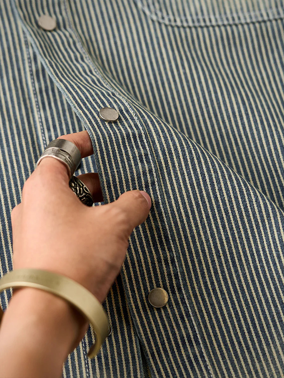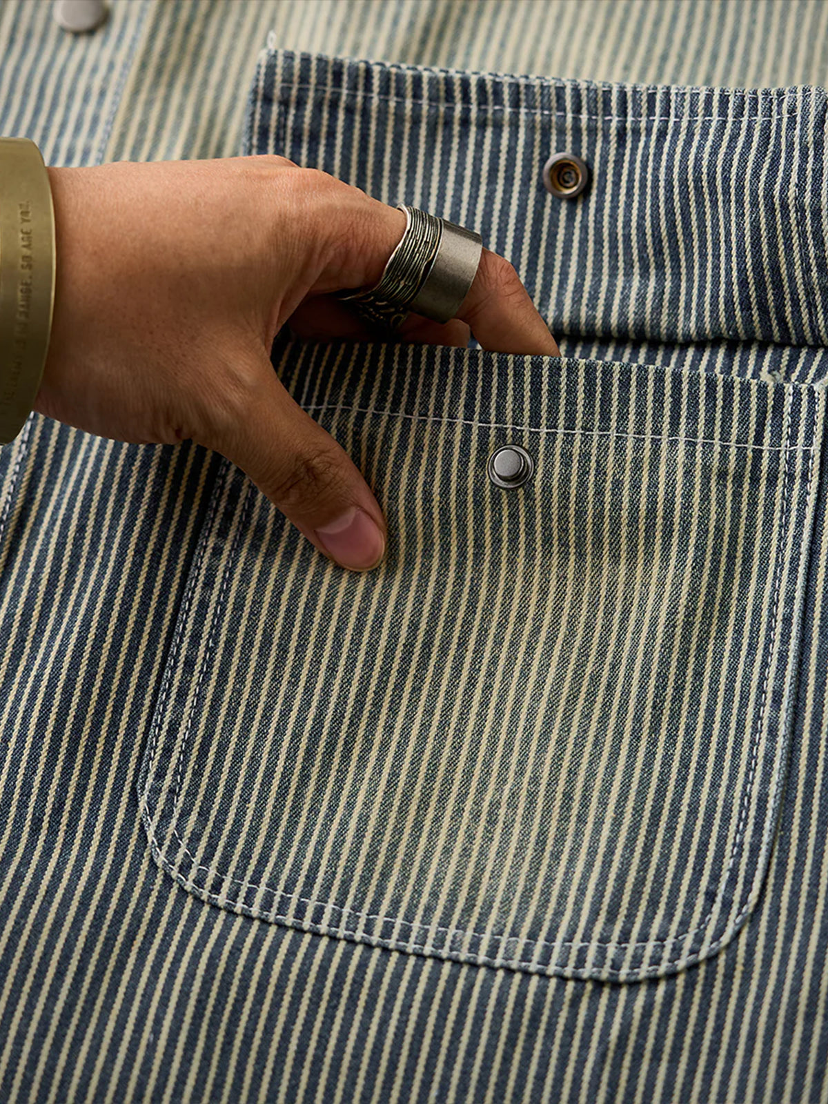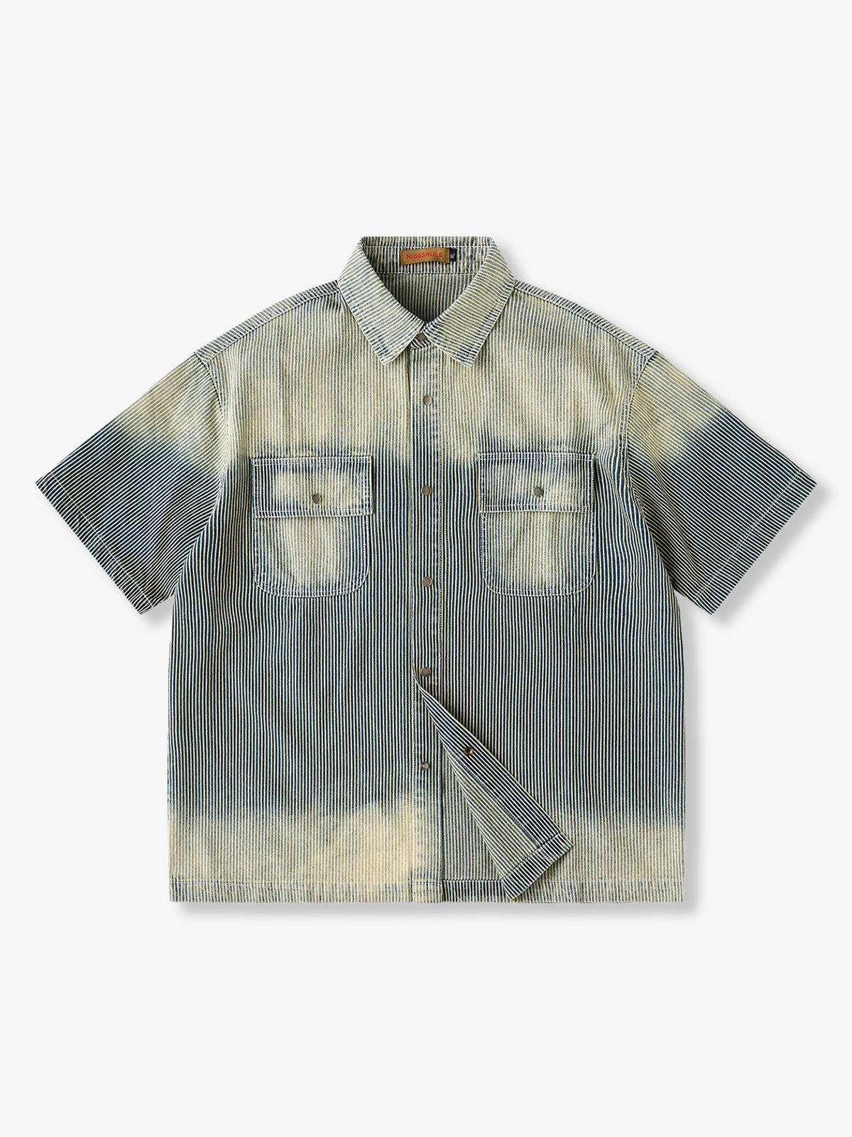 Striped & Solid Washed Short Sleeve Denim Work Shirt