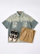A short-sleeved denim shirt with a washable texture is now available for adults who are particular about work style. It has a moderately faded wash effect, finished in a vintage style, and the more you wear it, the better the taste. The flap pockets and sturdy stitching on the chest are also typical details of work shirts. The color is available in three easy-to-use colors, supporting a wide range of styling from casual to work. It has a moderately spacious silhouette, giving a relaxed and clean impression. A versatile piece that can be used not only as a single piece but also as an outer cover. This is a piece I want to add to my daily outfit this summer.