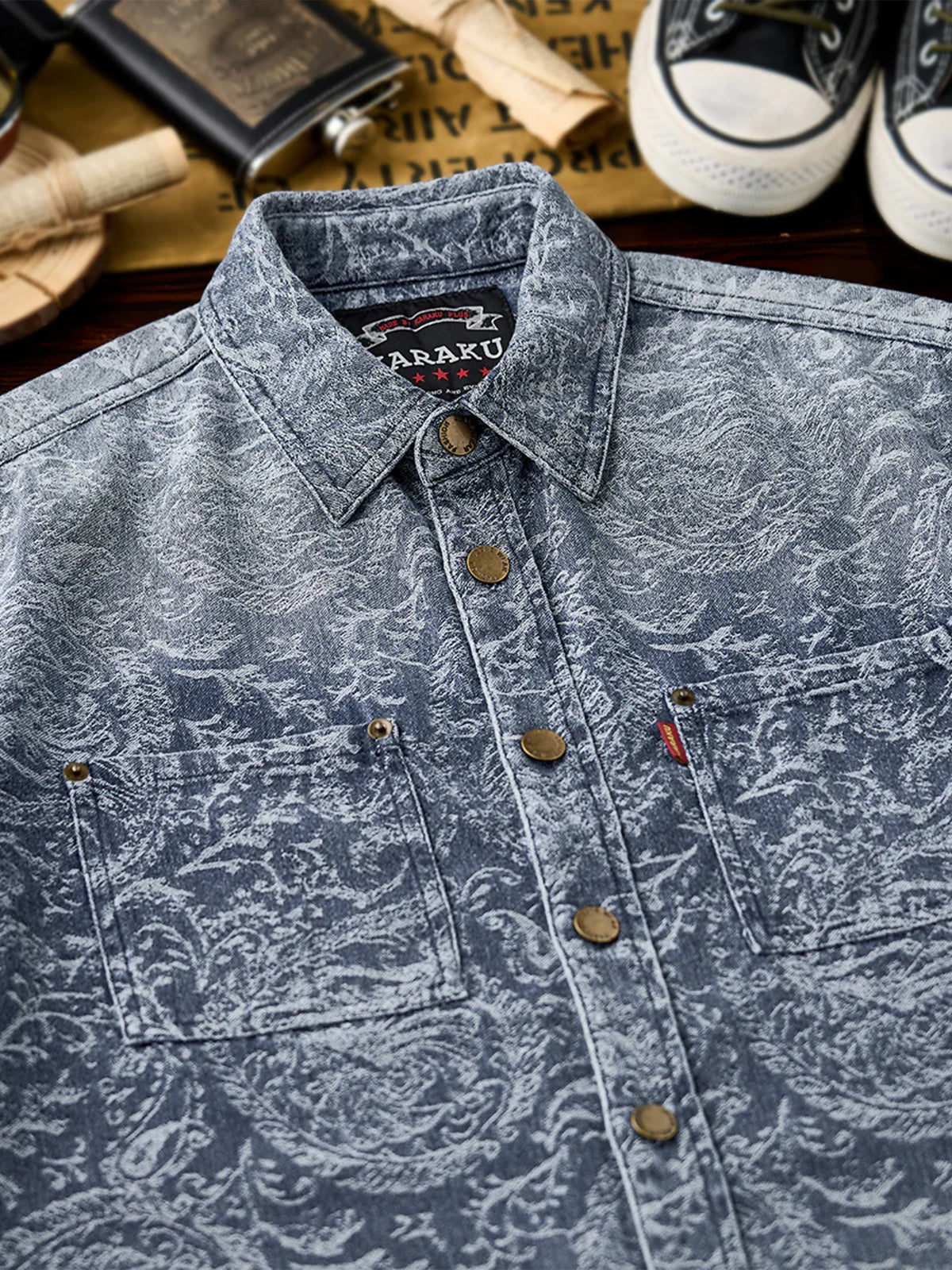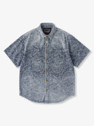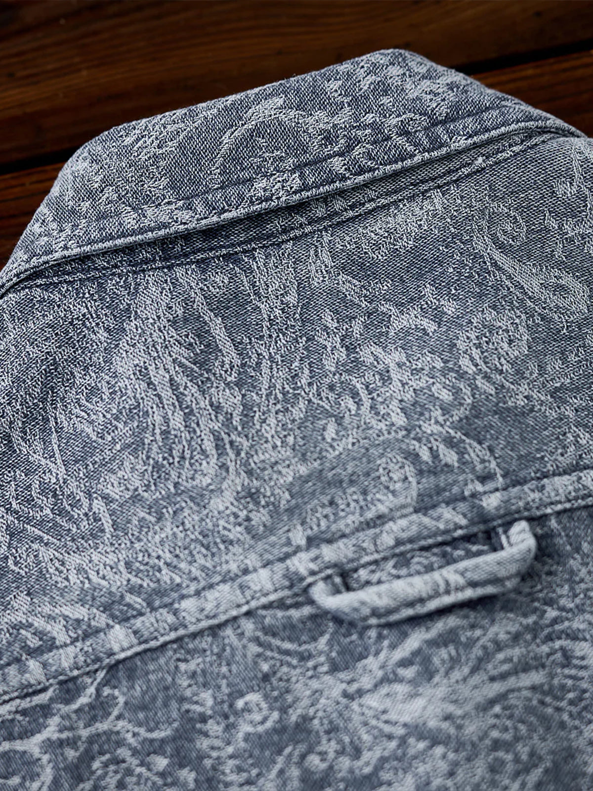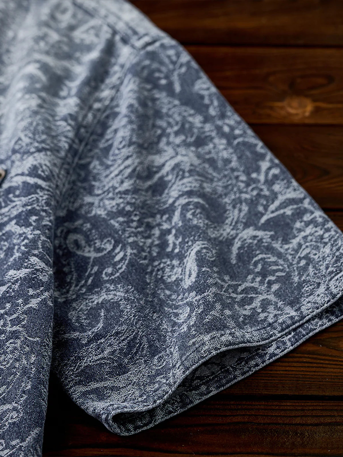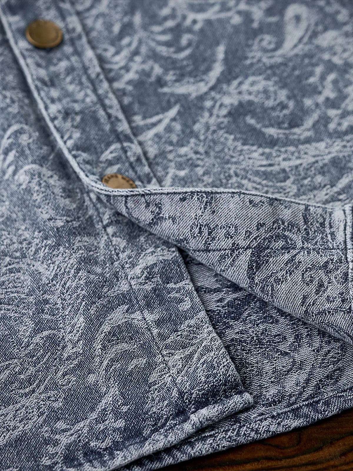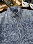 Jacquard Paisley Pattern Vintage-Washed Denim Shirt