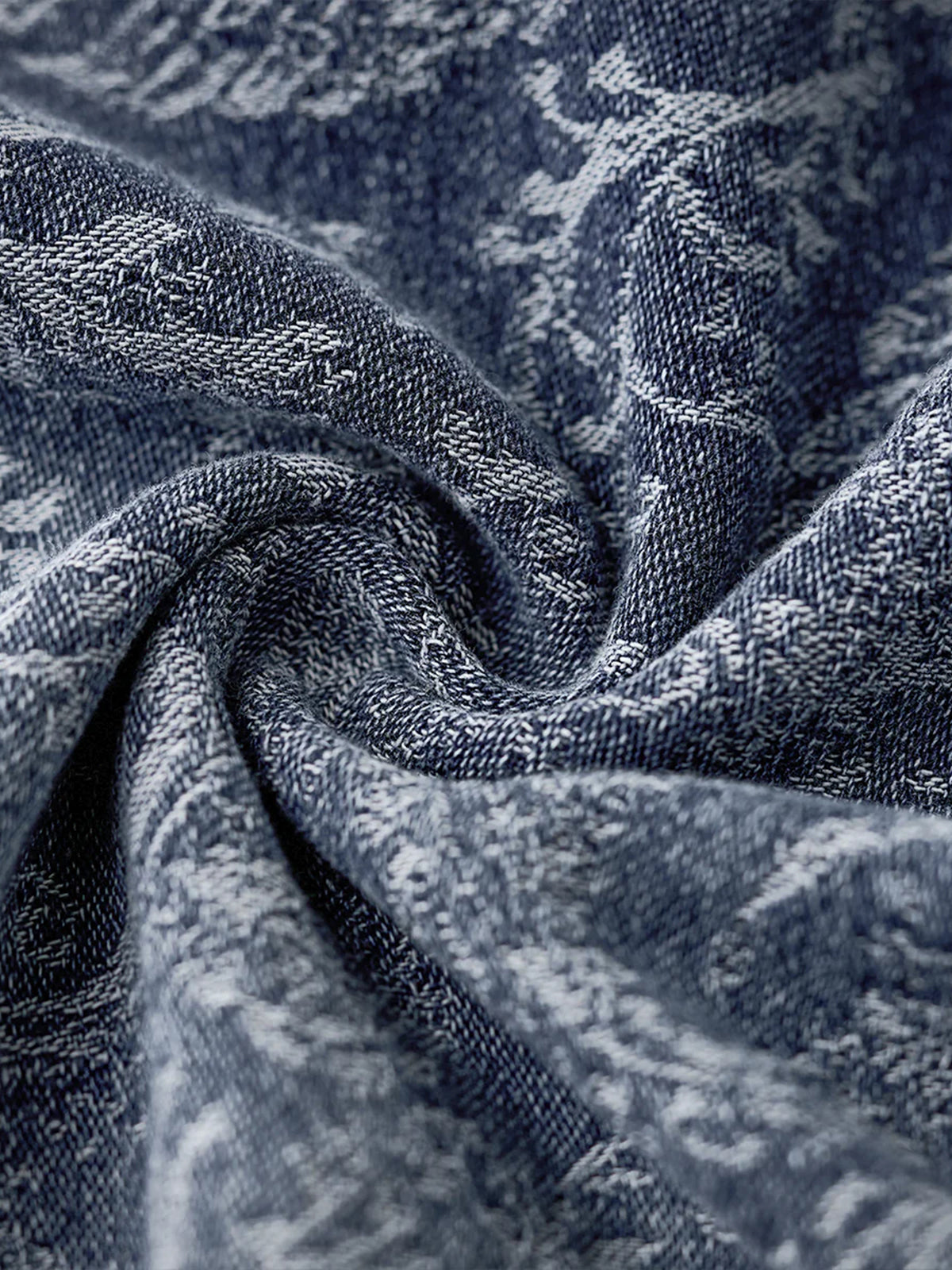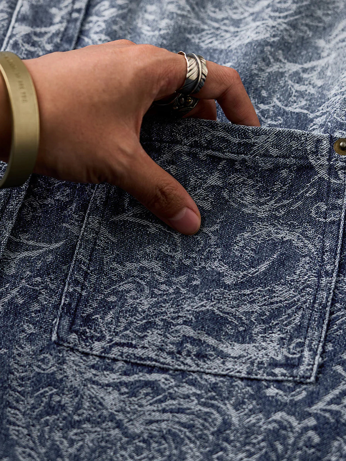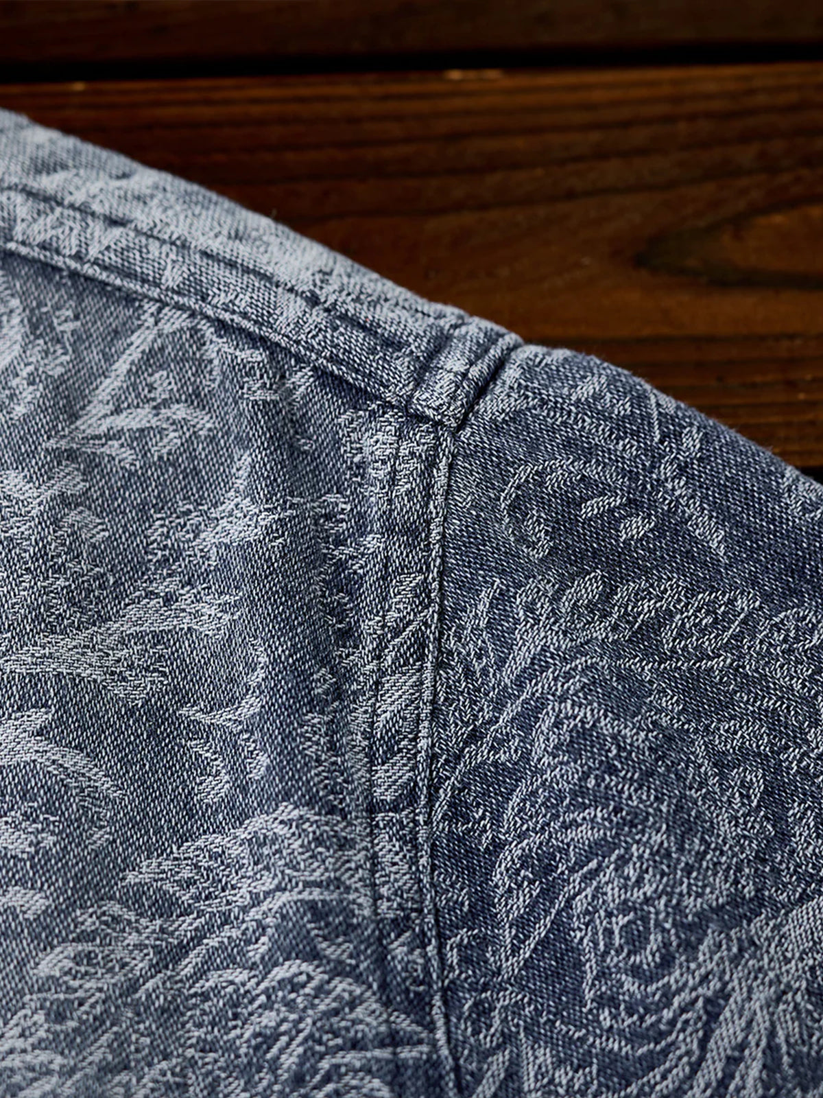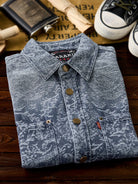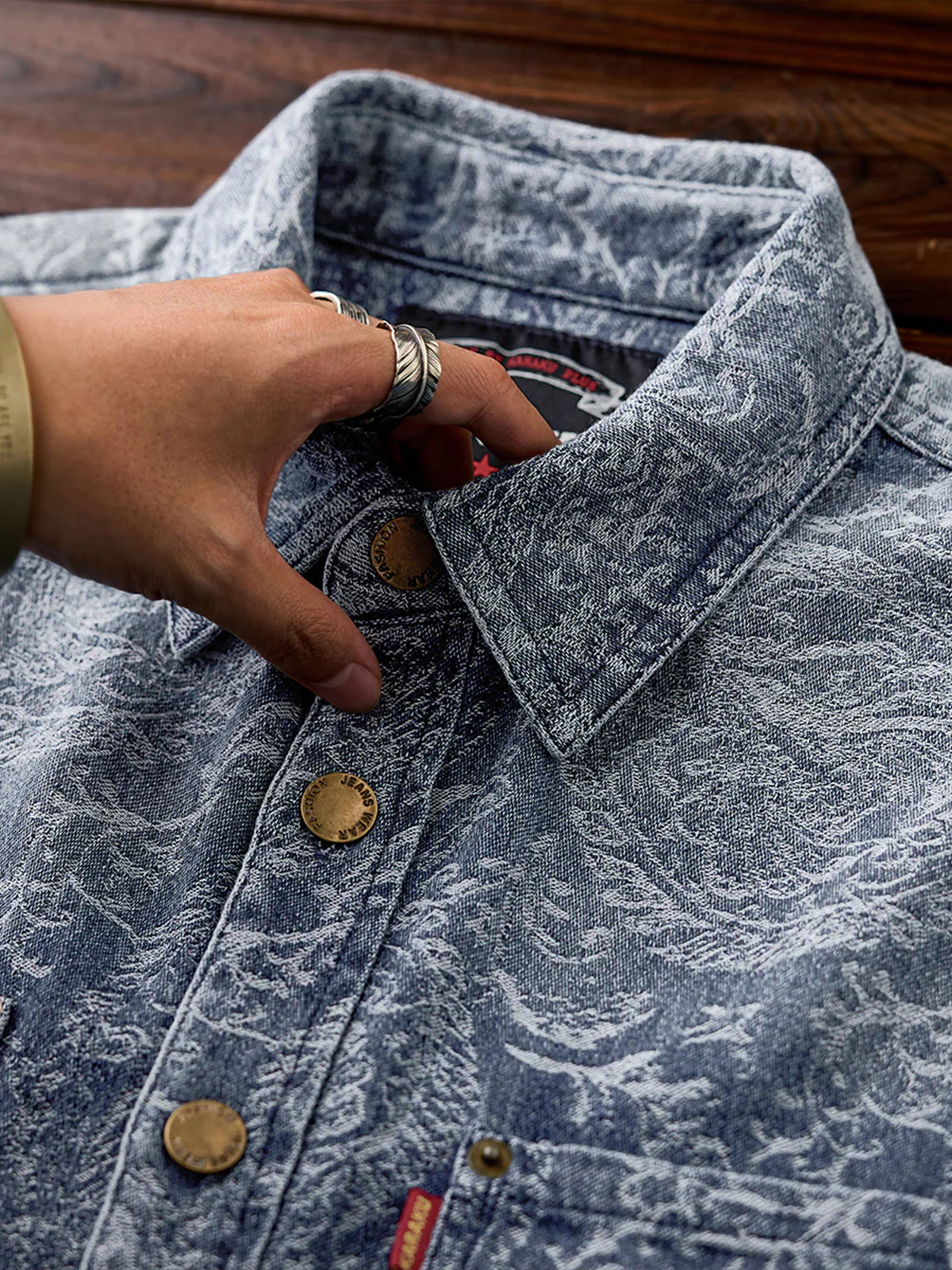Jacquard Paisley Pattern Vintage-Washed Denim Shirt