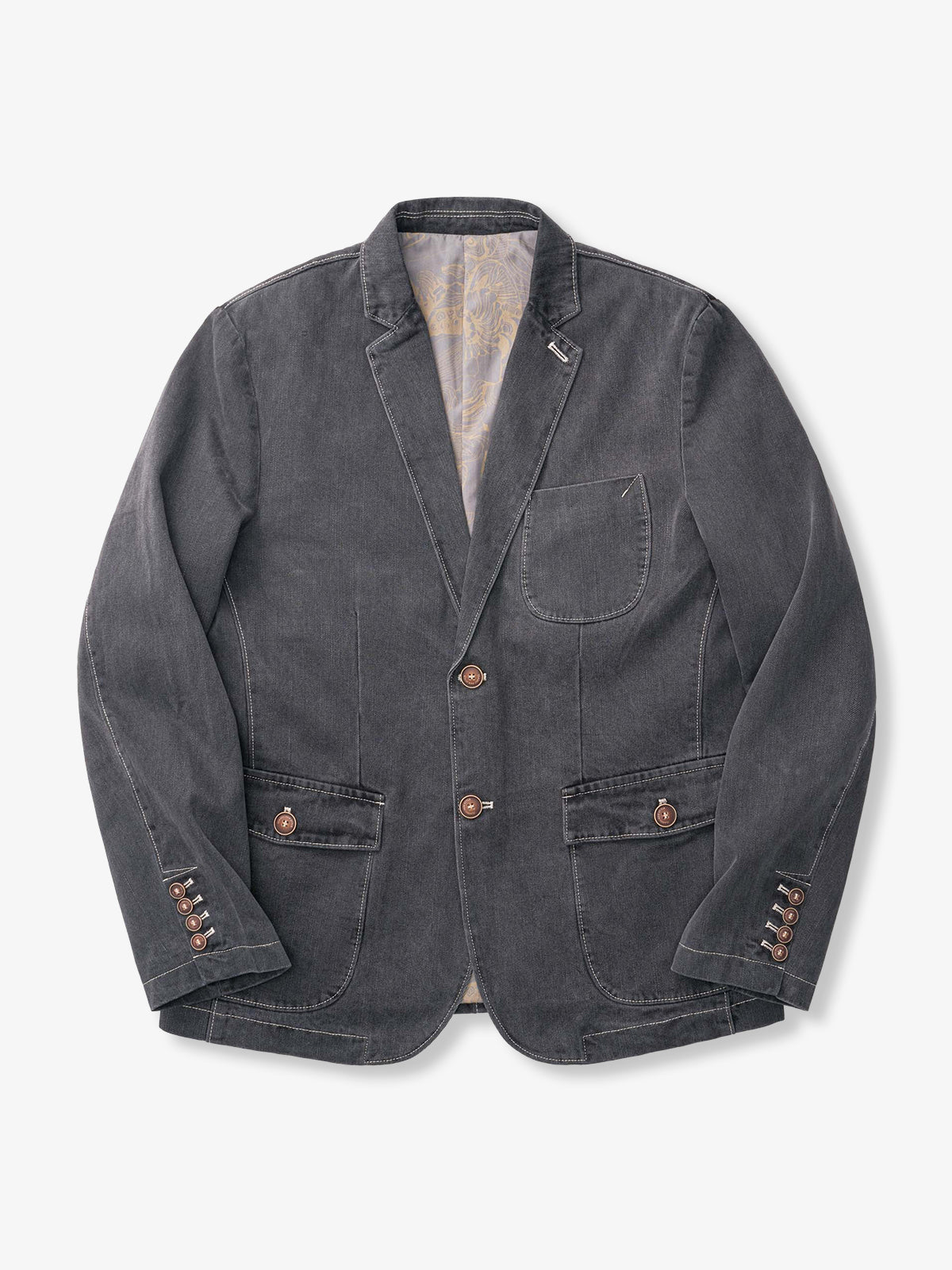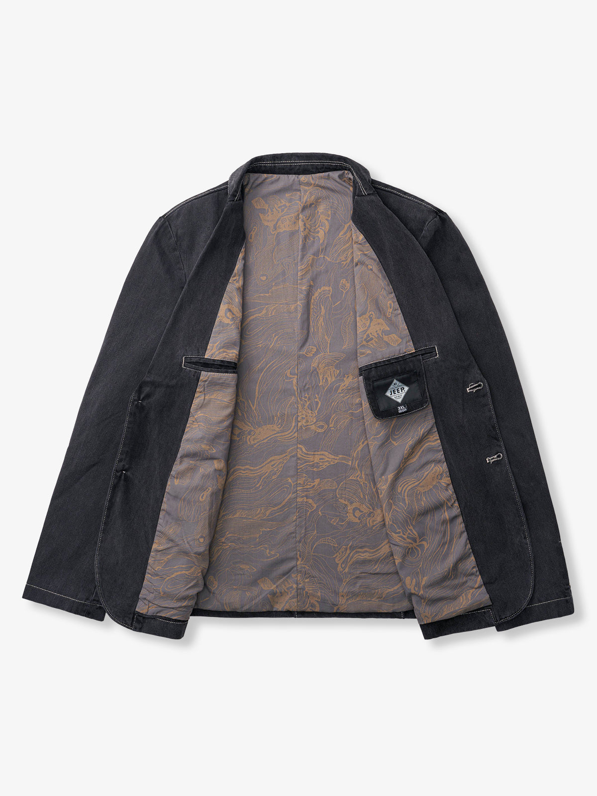Floral Back Denim Petiole Blazer Suit Jacket