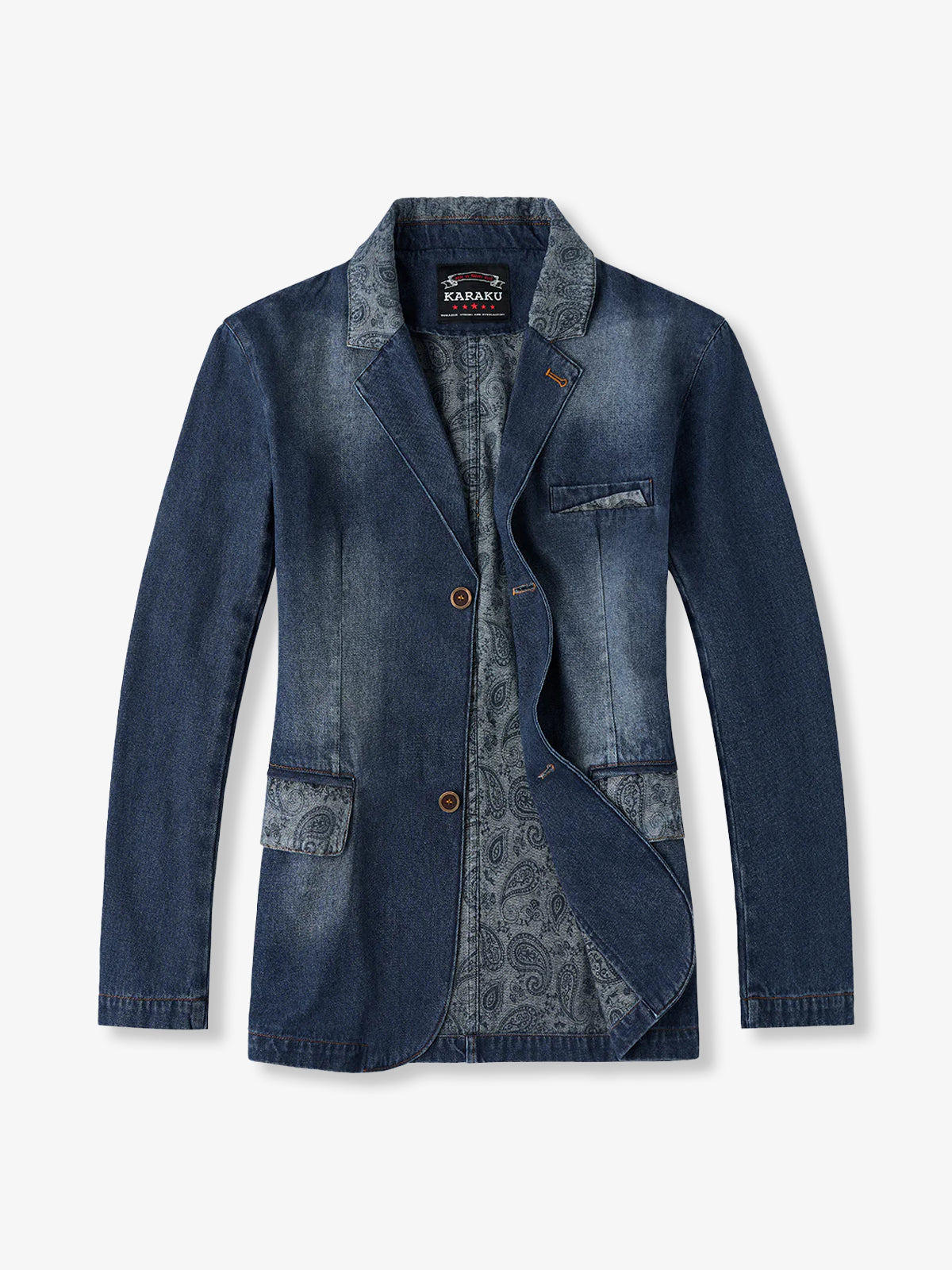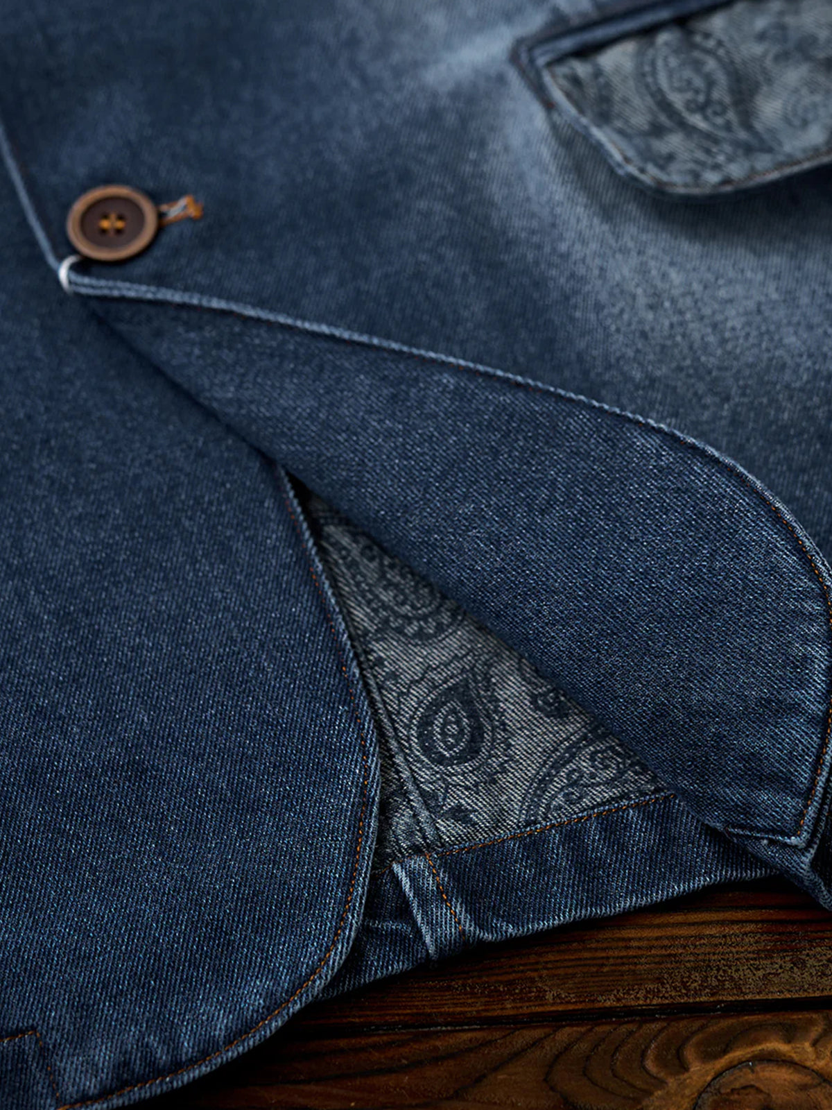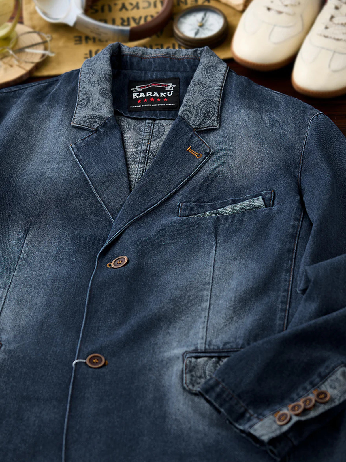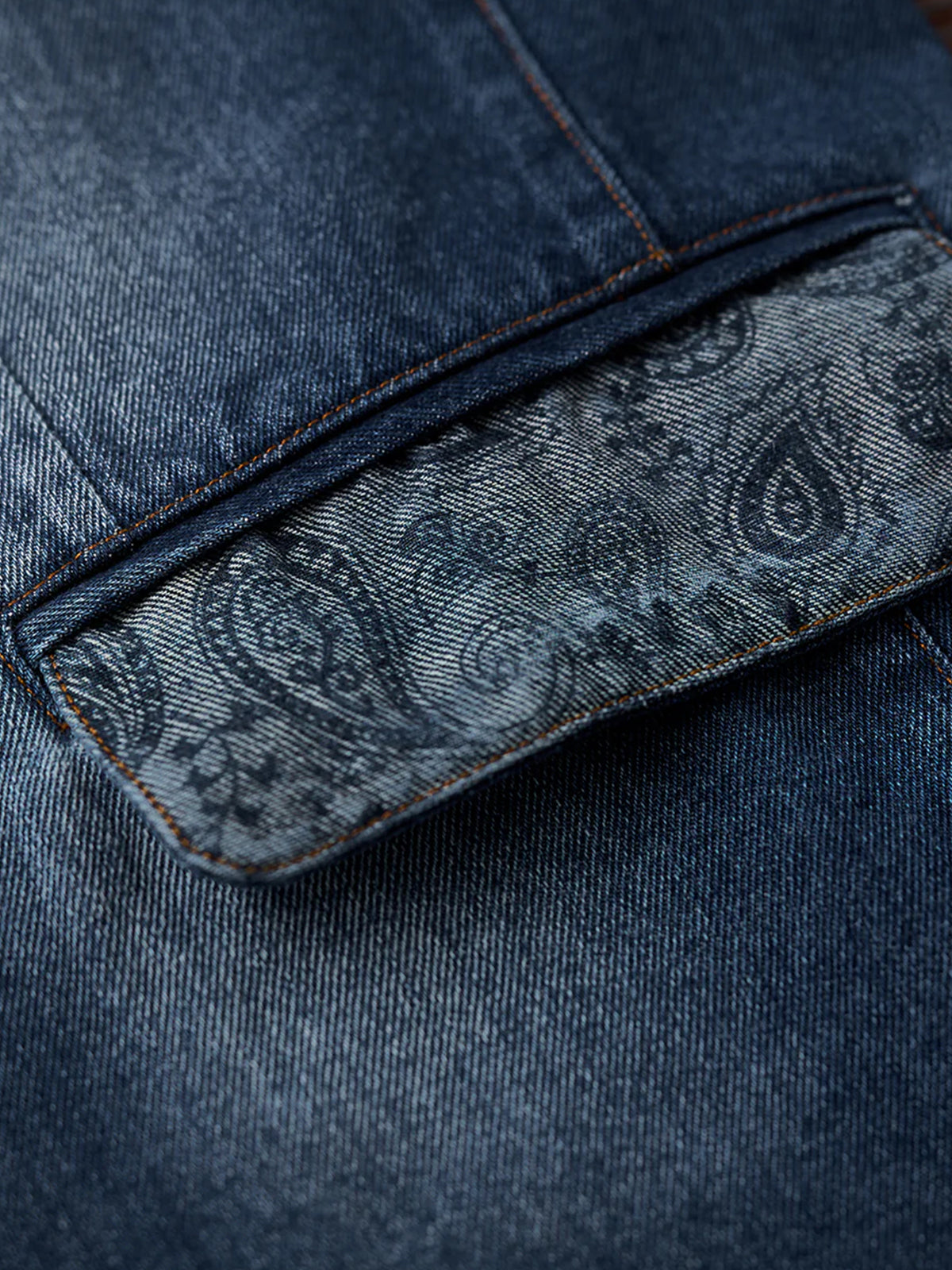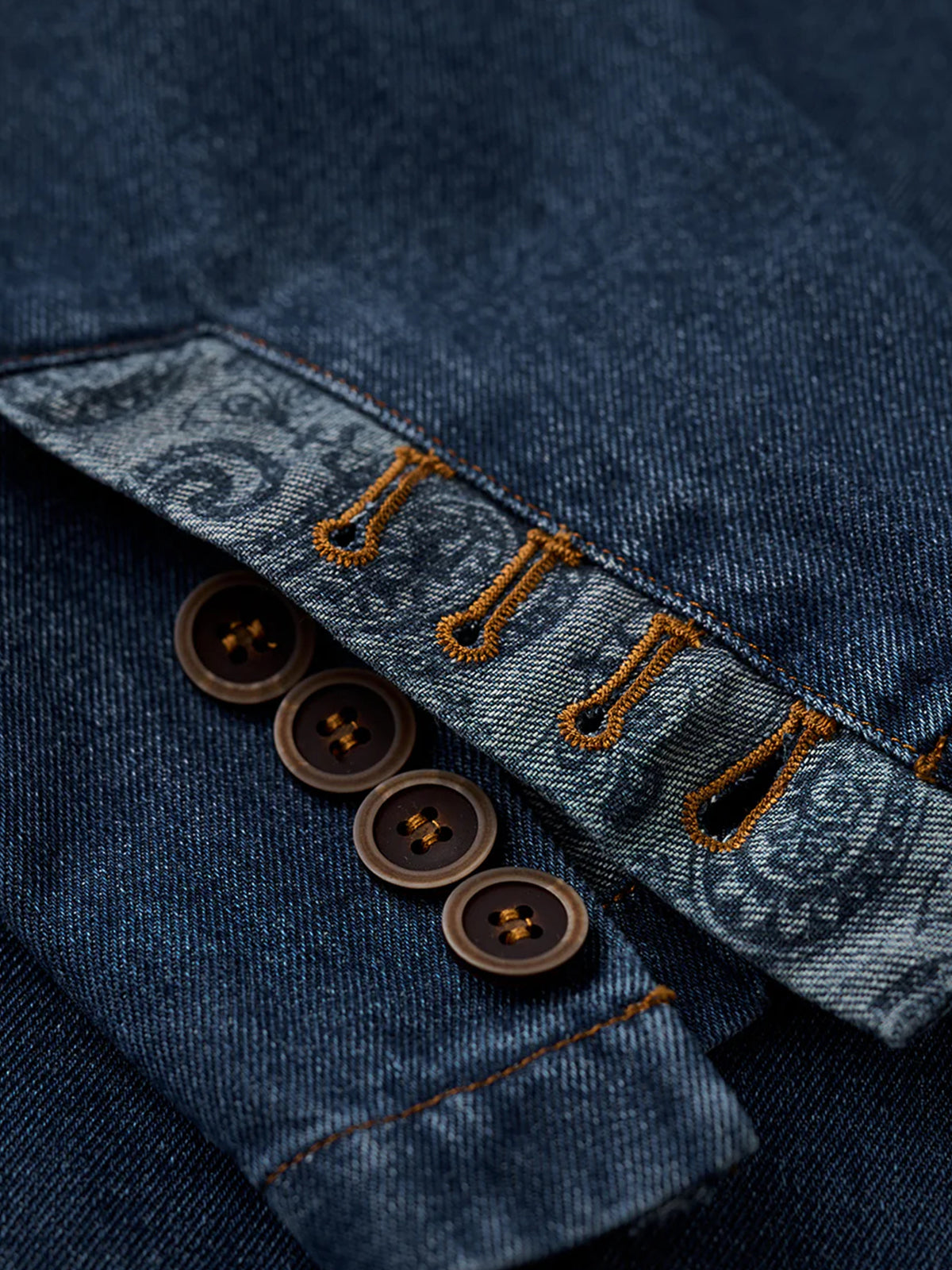 [Pre-Order] Monkey-Wash Denim Tailored Jacket with Paisley Collar, Flaps & Lining