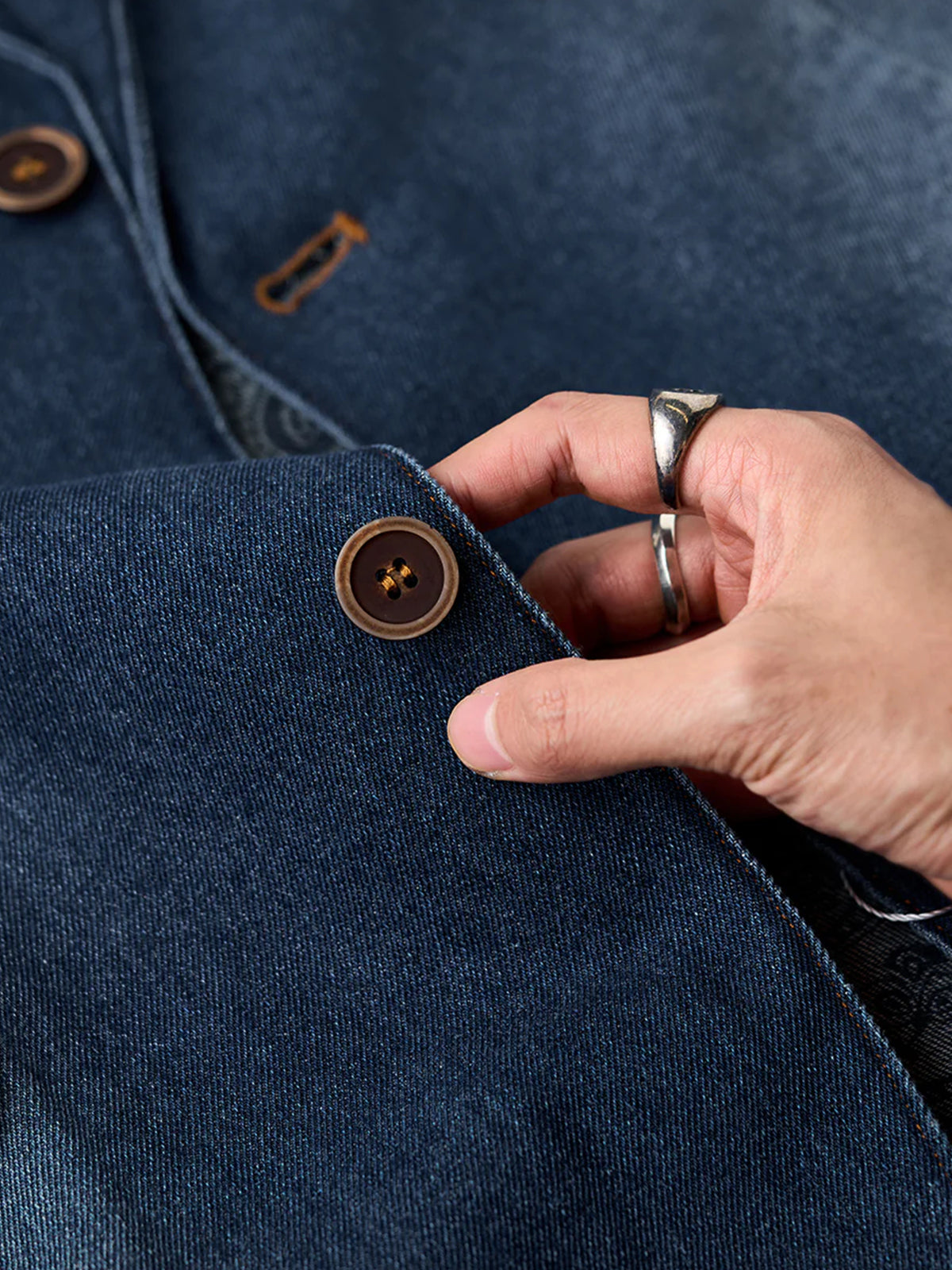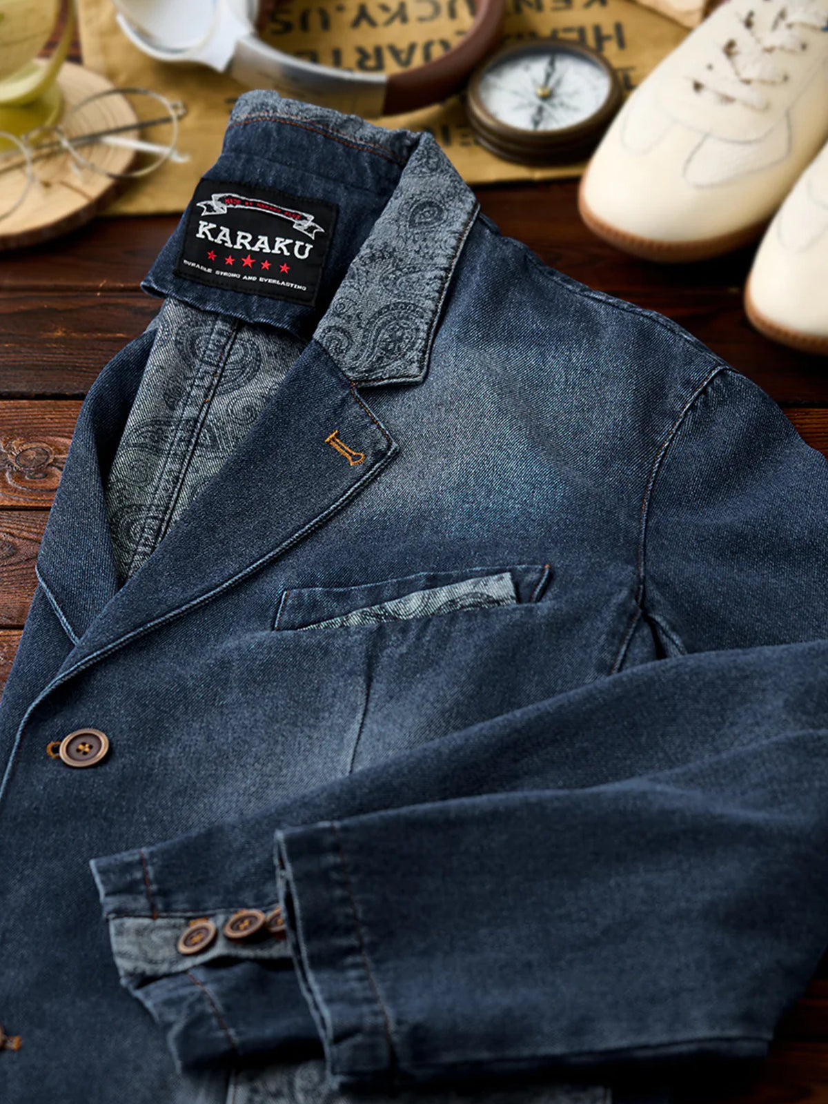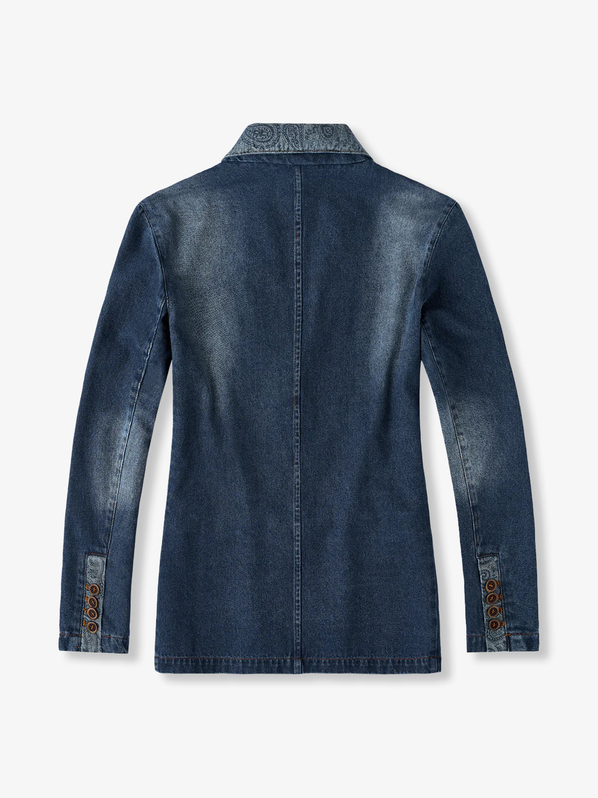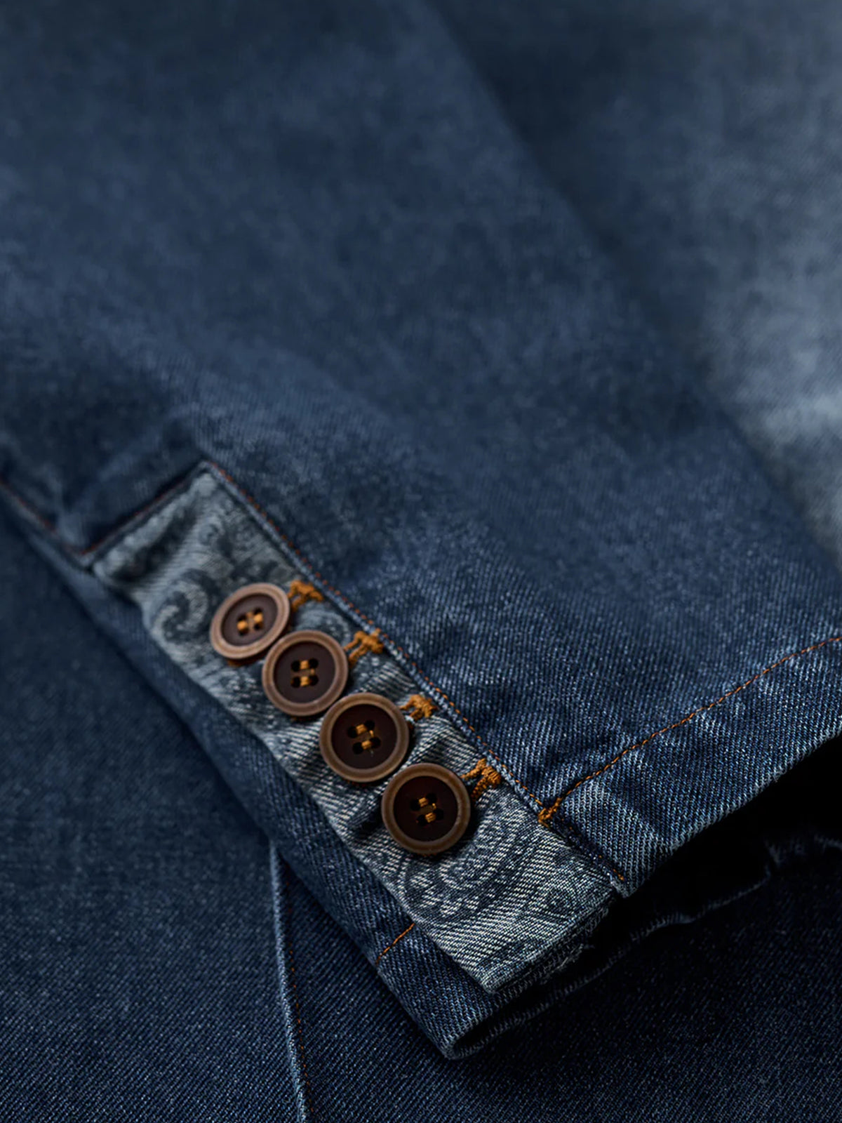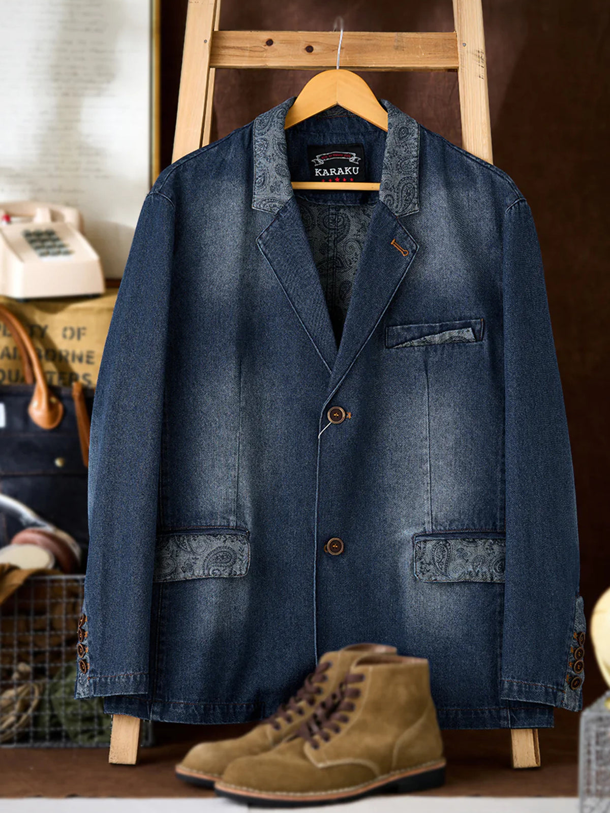 [Pre-Order] Monkey-Wash Denim Tailored Jacket with Paisley Collar, Flaps & Lining