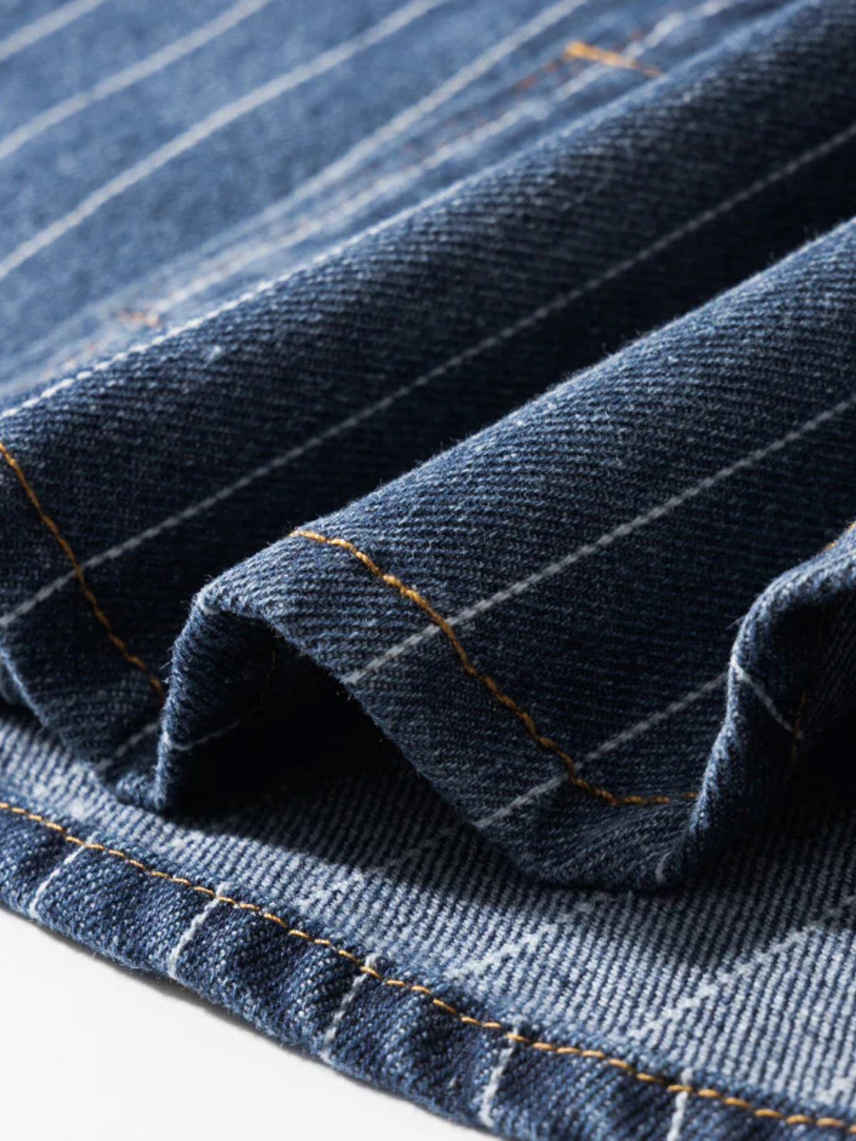 This vintage-inspired Wabash stripe work shirt features washed denim for a rugged look. Crafted from soft, breathable cotton, it offers outstanding moisture-wicking properties, ensuring comfort throughout the seasons. Perfect for pairing with jeans or chinos, this shirt effortlessly elevates casual outfits, making it a versatile staple for any wardrobe.
