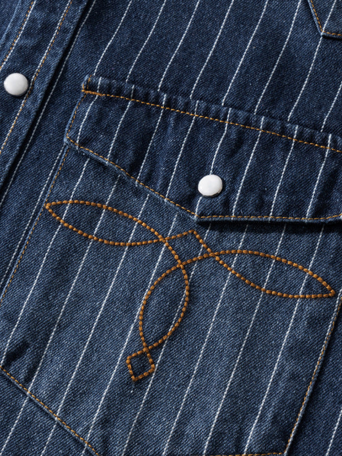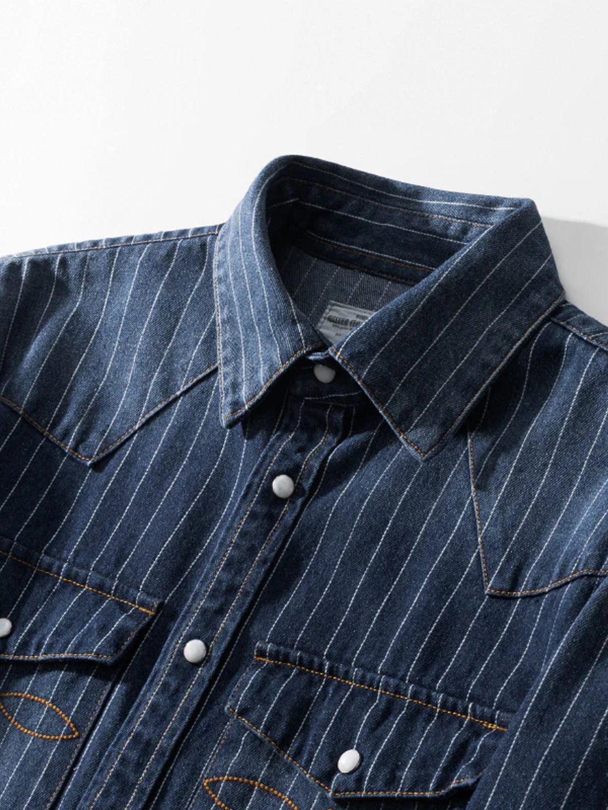 Western Yoke Wabash Stripe Denim Cotton Shirt