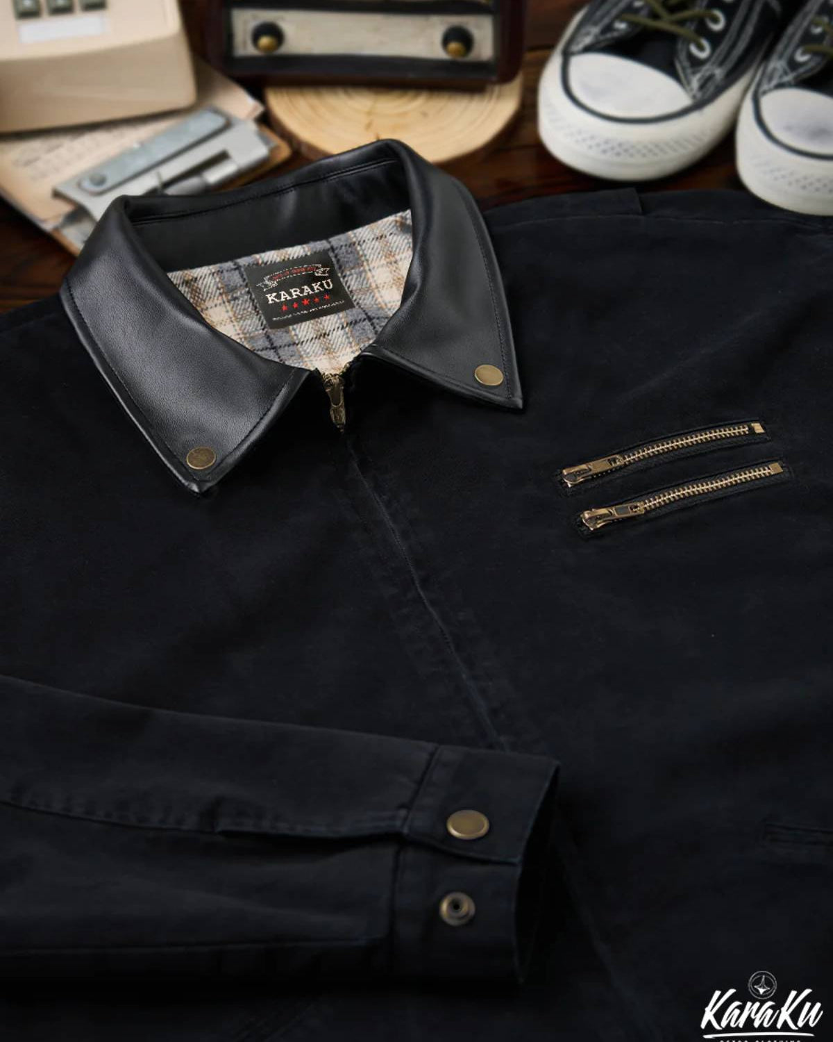 The Karaku Detroit Jacket represents a timeless blend of rugged utility and understated style. With its origins in American workwear, this jacket style became an iconic staple in the mid-20th century, favored by workers and outdoor enthusiasts for its durability, warmth, and practical design.