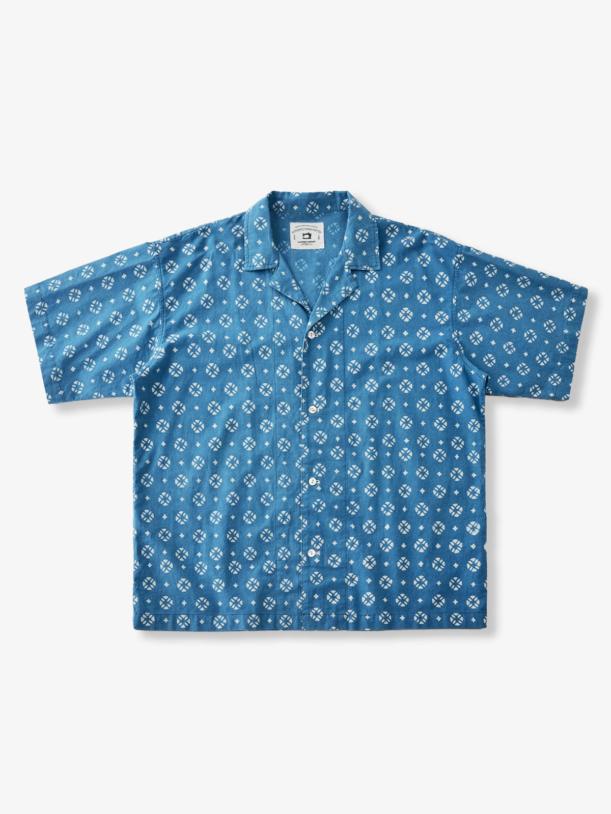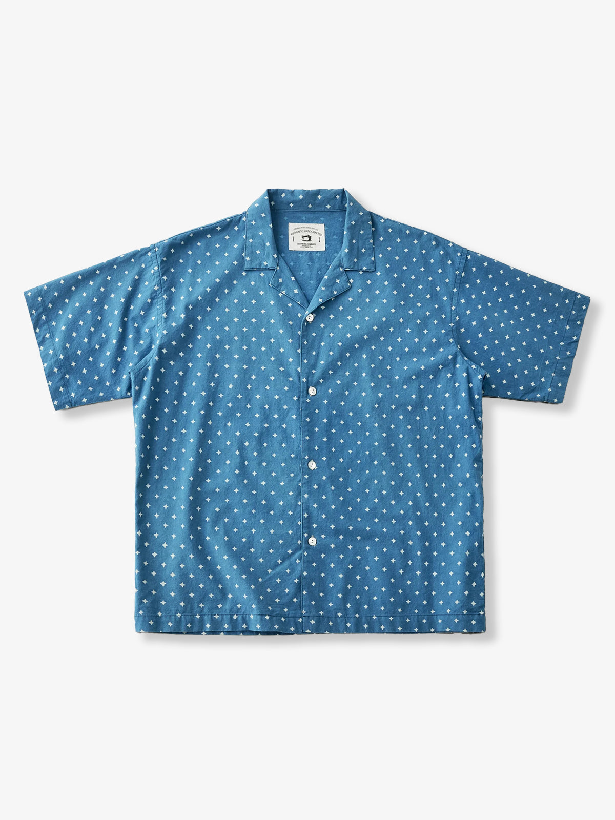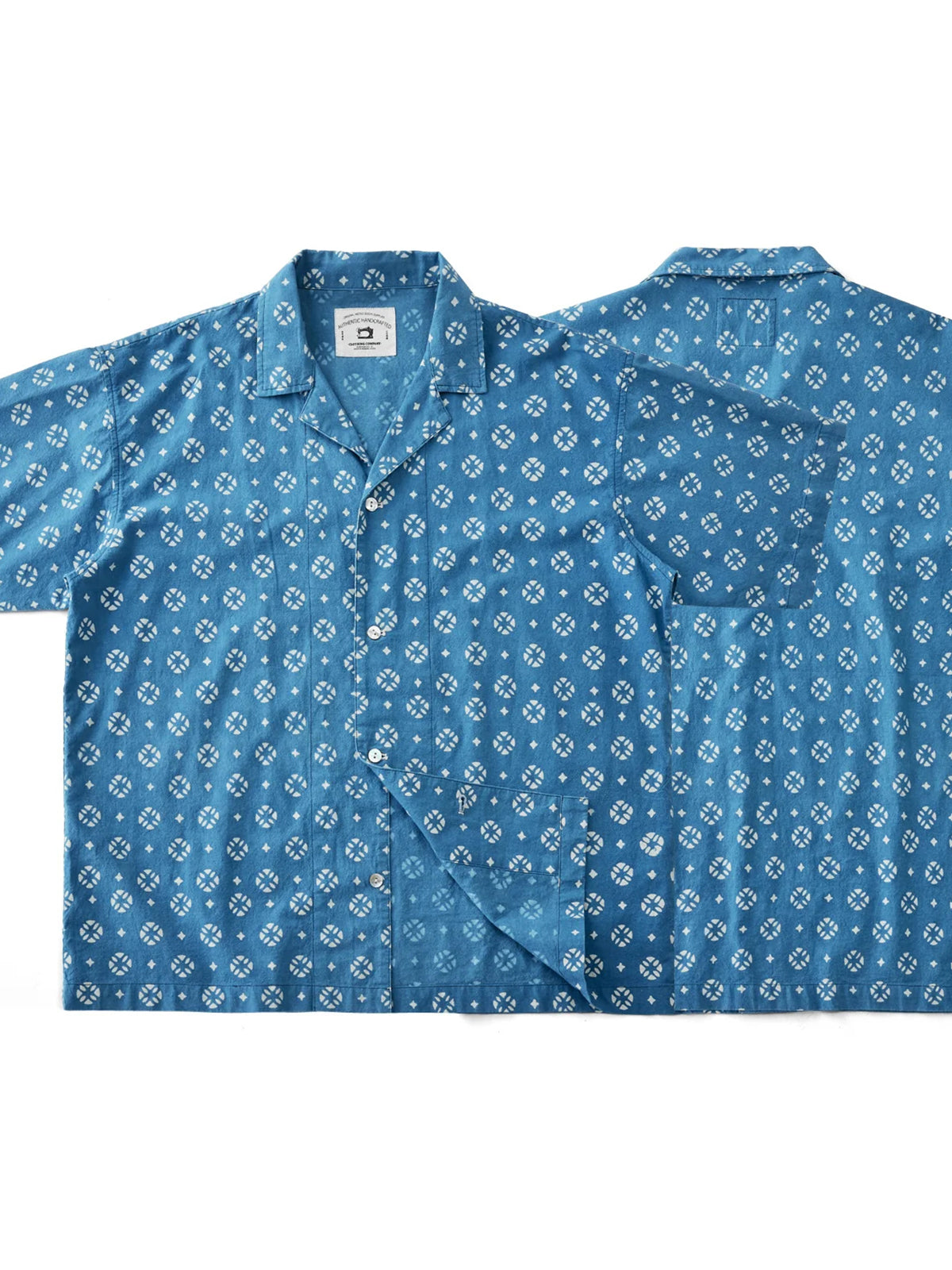 Indigo Graphic Dyed Star Sand and Galaxy Aloha Shirt