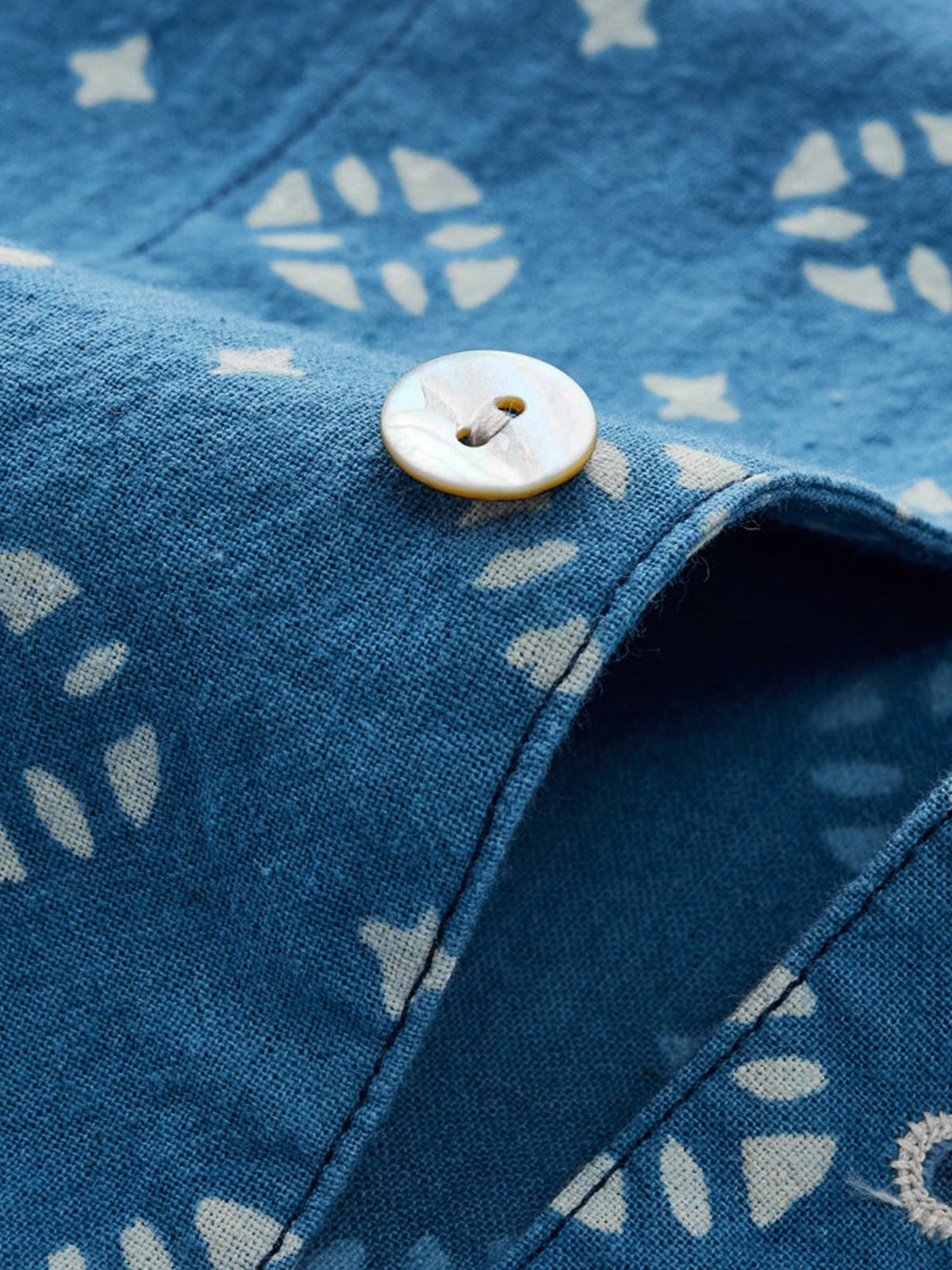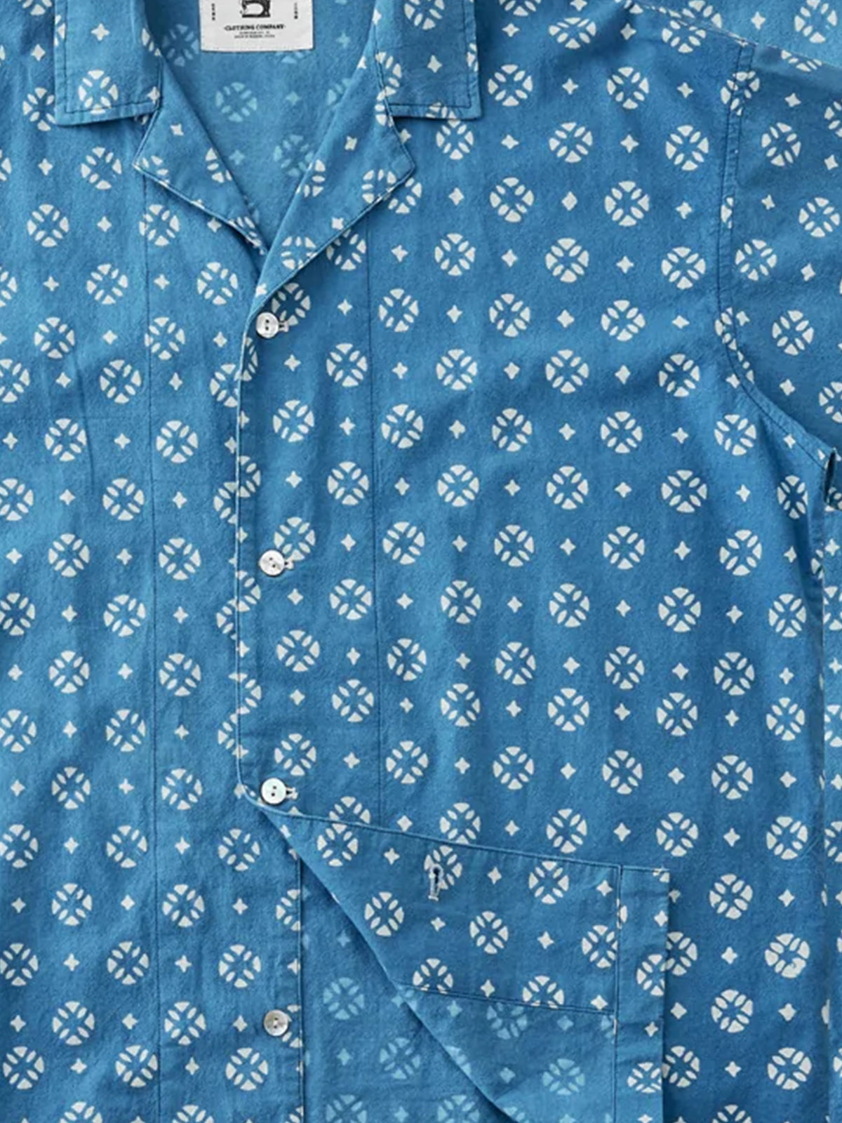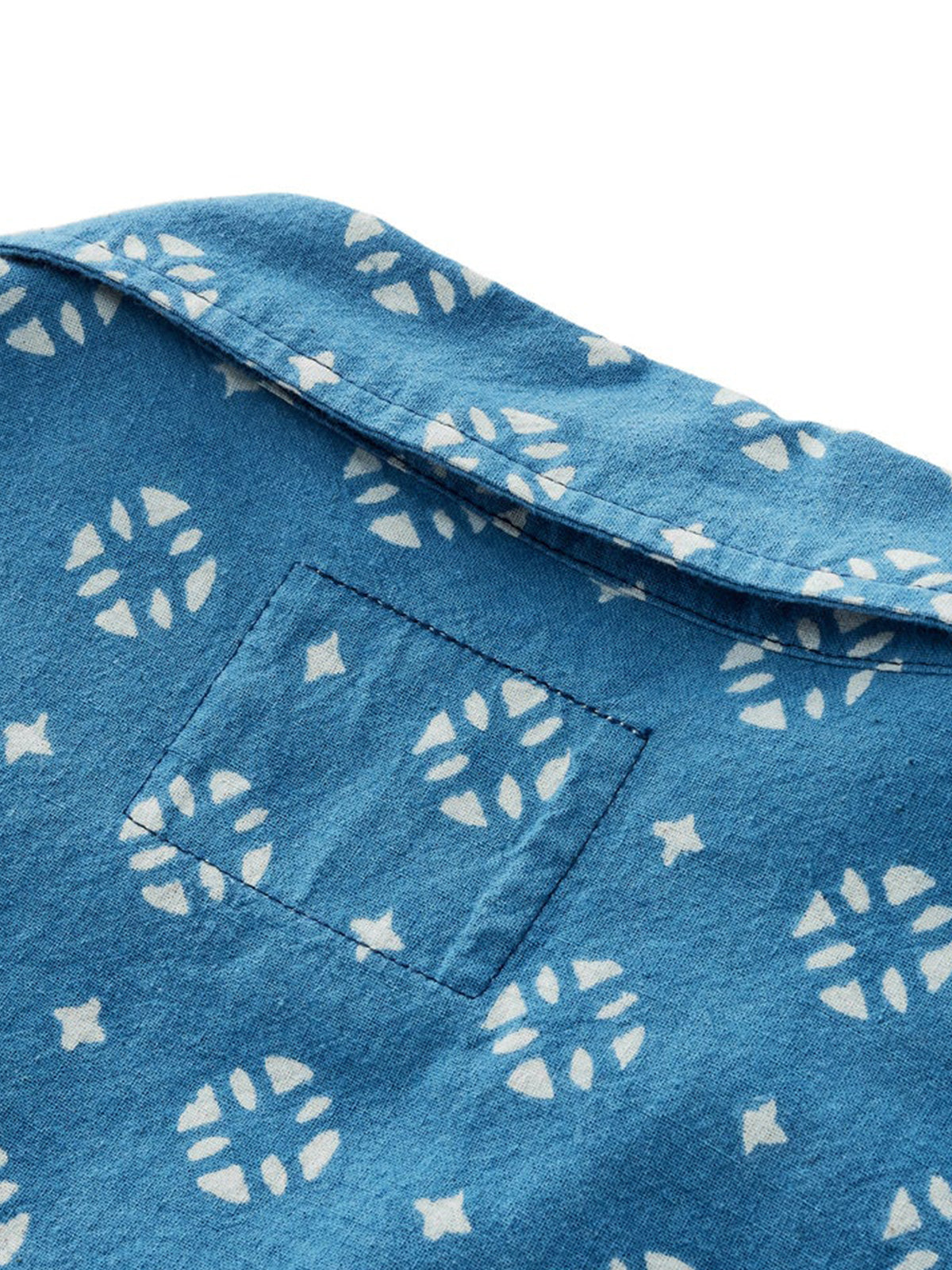 Indigo Graphic Dyed Star Sand and Galaxy Aloha Shirt