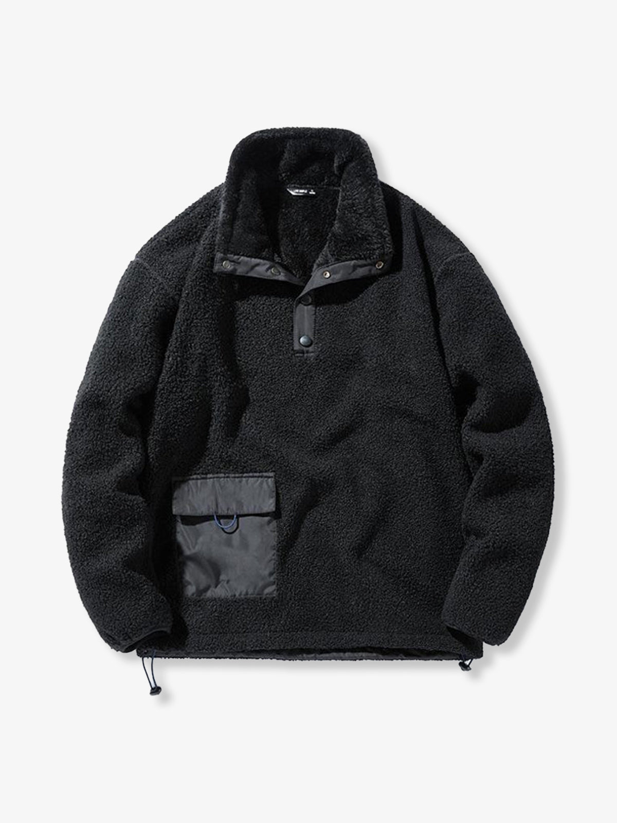 A fluffy, cozy boa fleece sweatshirt has arrived! The half-button design at the front can be closed up to the top, covering the neck and blocking wind from entering. Details such as the contrast-fabric flap pocket, elbow patches, and adjustable drawcord add subtle accents and a stylish touch. The moderately relaxed silhouette creates an effortless, casual look.