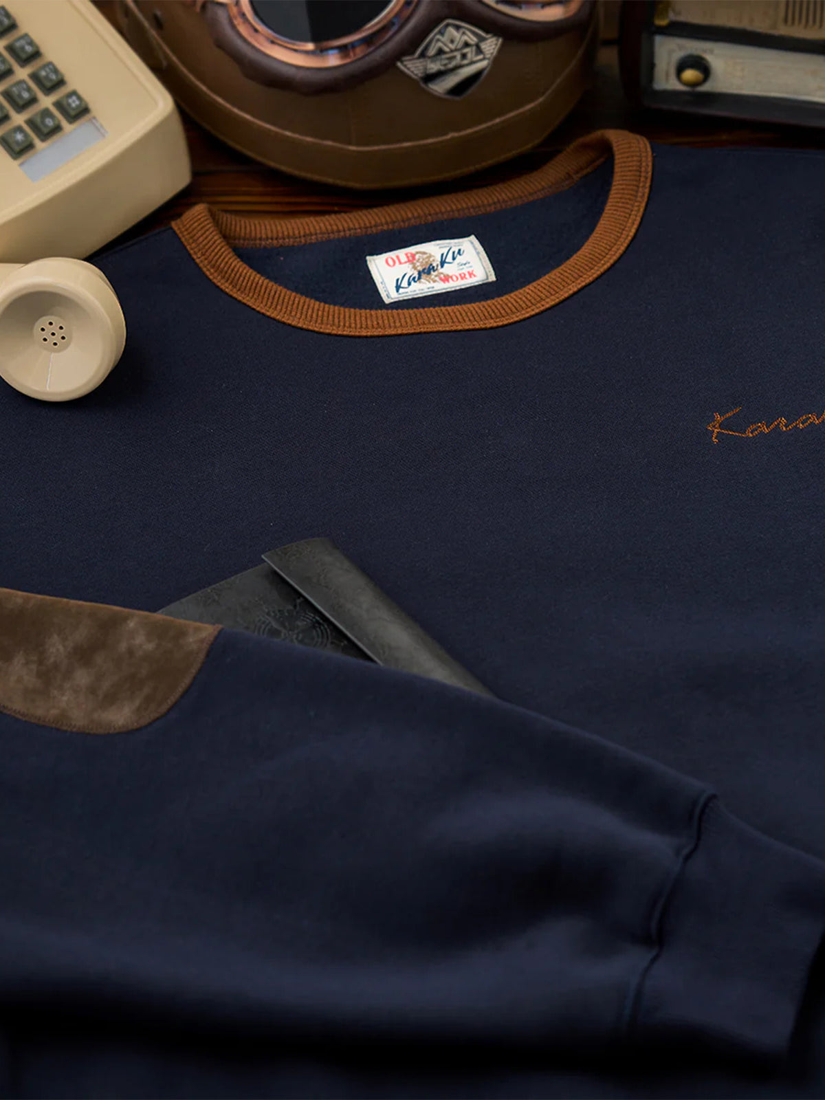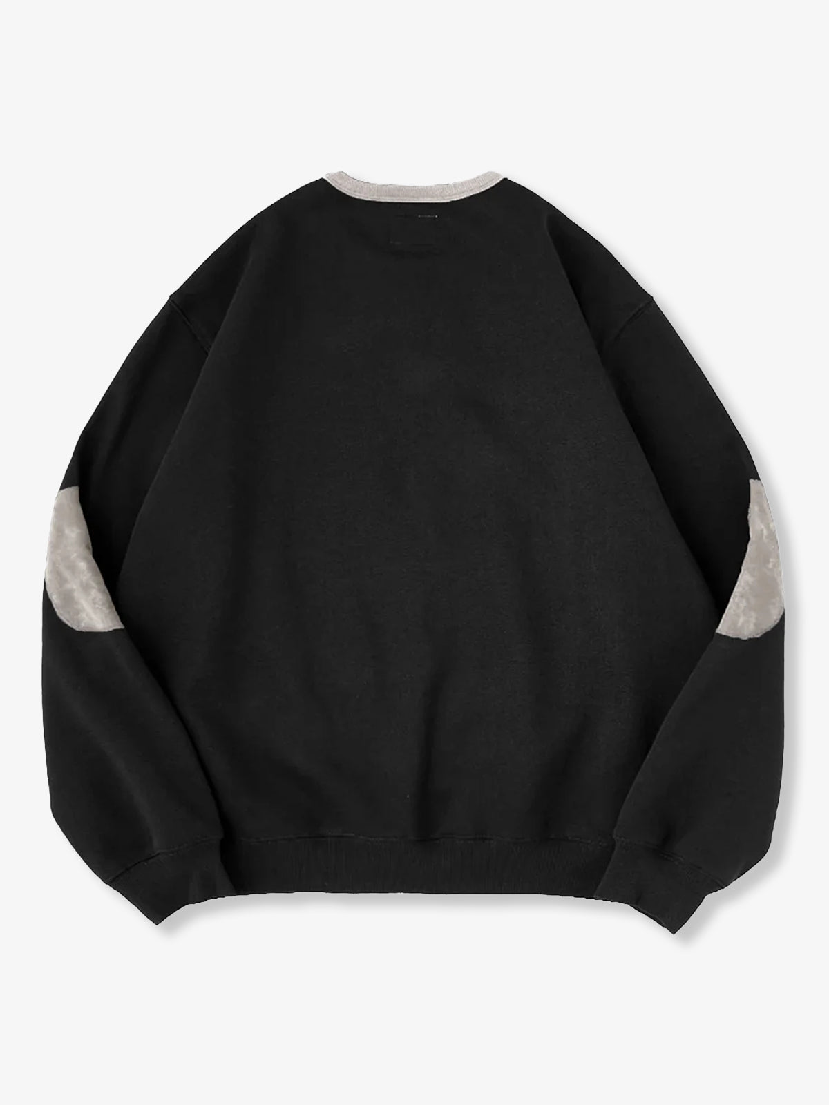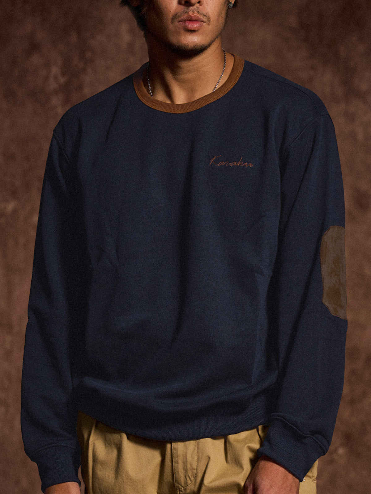 "KaraKu" Embroidery Elbow Suede Patches Brushed Cotton Sweatshirt