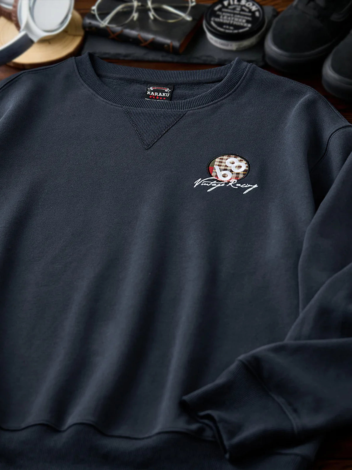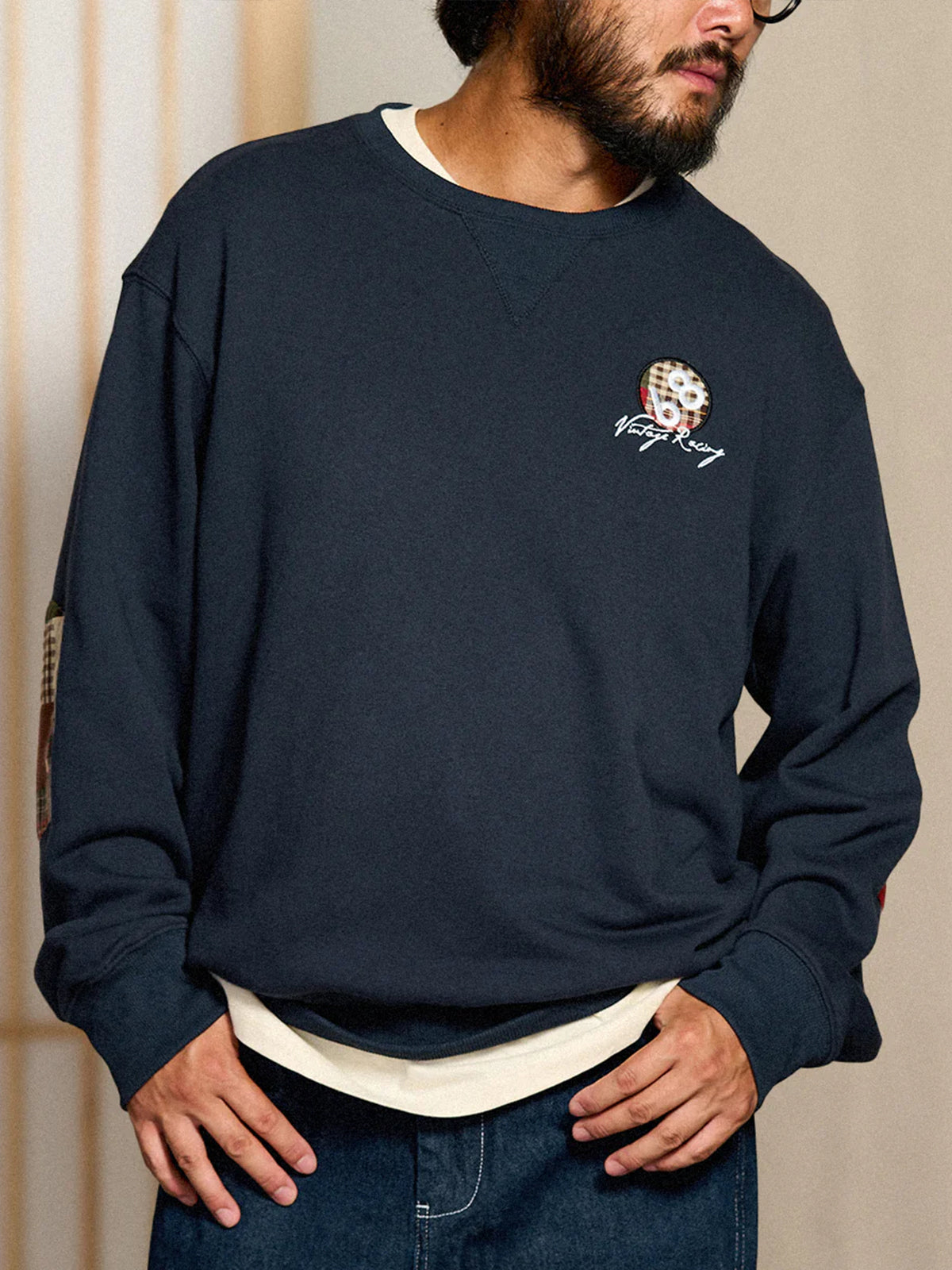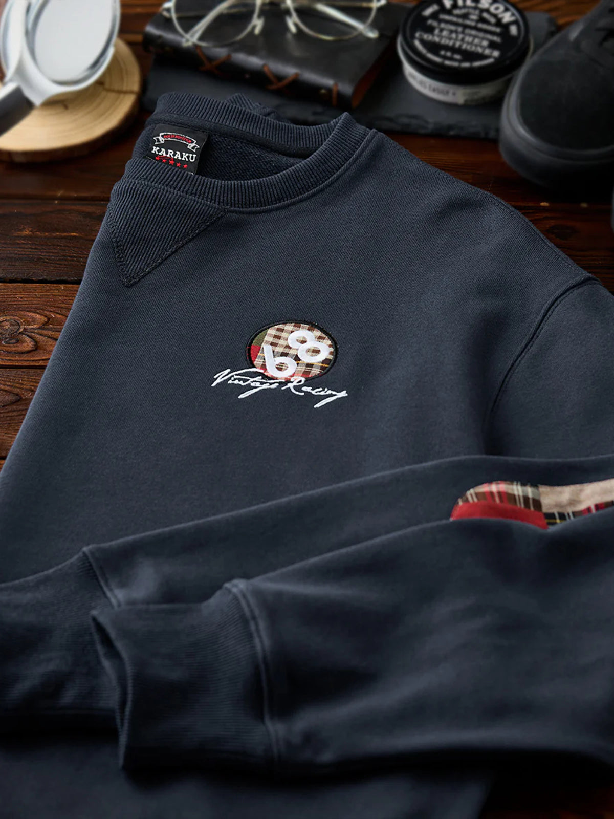 "68 Vintage Racing" Embroidered Sweatshirt with Elbow Check Patches
