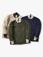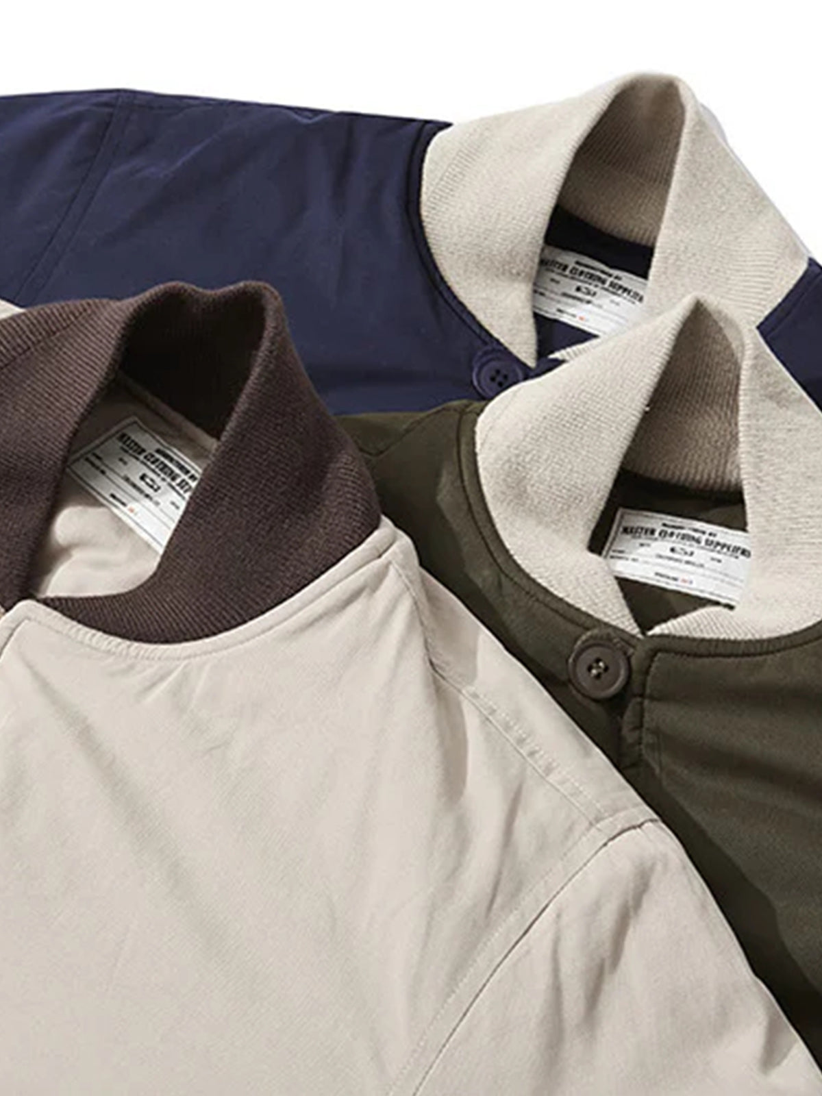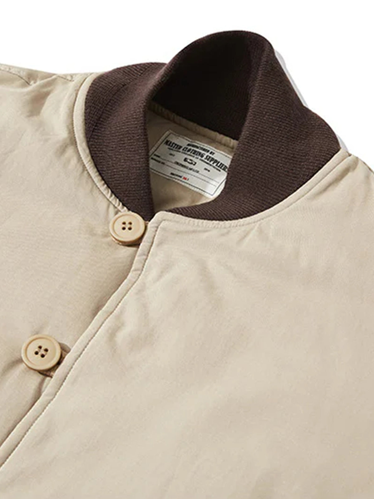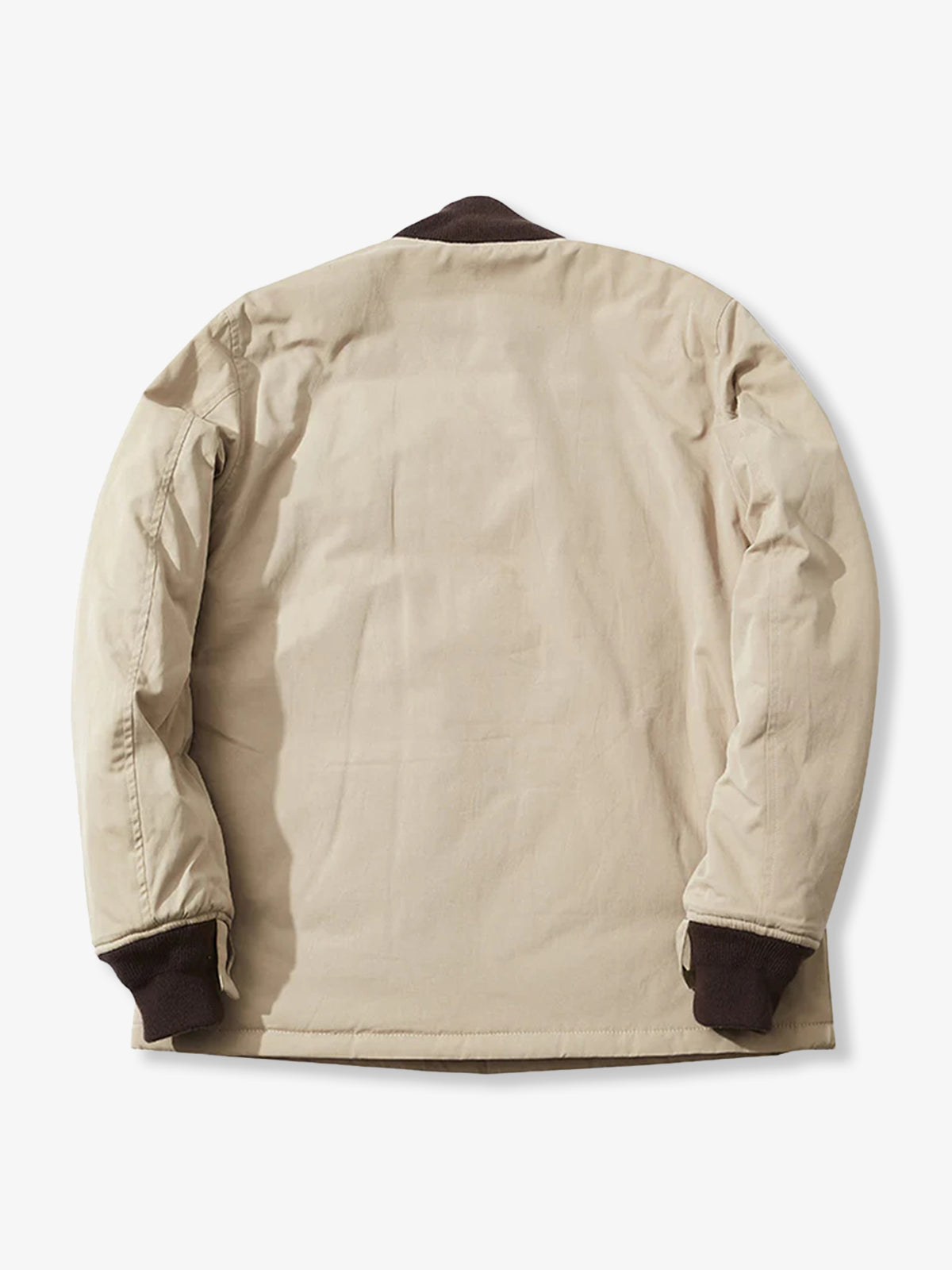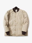 Inspired by the legendary M-43 field jacket—first issued in the 1940s and considered the blueprint of U.S. Army outerwear—this liner jacket combines military heritage with a varsity-style twist. The padded construction makes it versatile as both an inner liner and a standalone jacket. Custom-colored ribbed cuffs and a varsity collar not only add a visual accent but also provide wind protection and warmth. Interior pockets enhance practicality, while the clean, minimal design ensures effortless layering and everyday wear throughout winter.